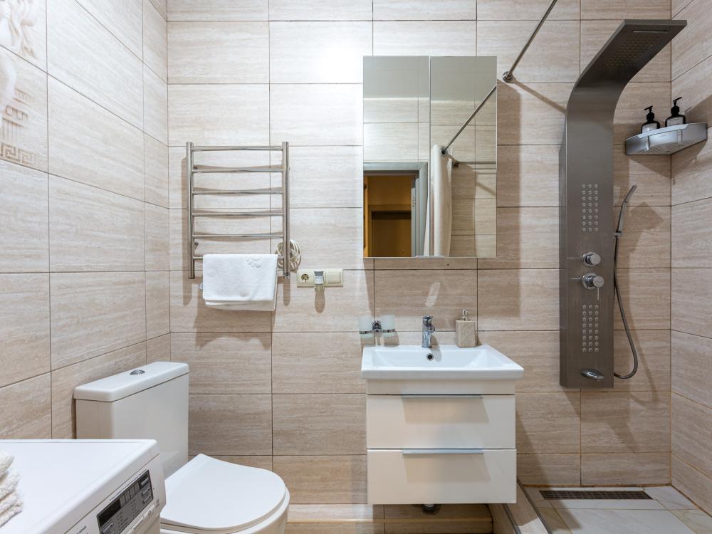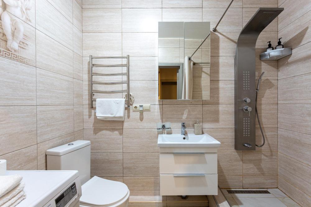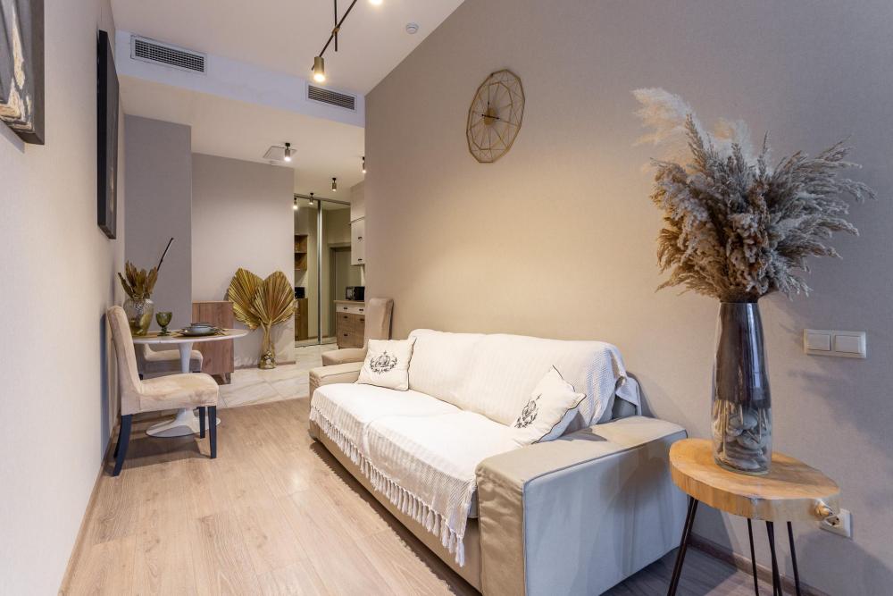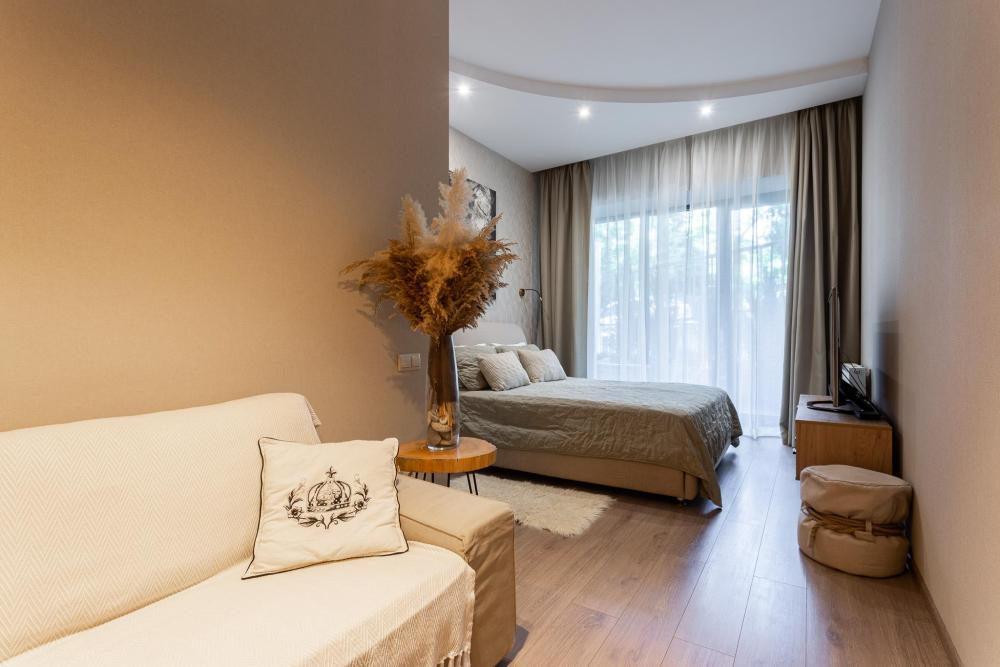 Условия бронирования: • Уборка после выезда оплачивается отдельно - 3 975 ₽ • Бесконтактное заселение 24/7 • Заезд 15:00, выезд 11:00 (ранний заезд/поздний выезд по согласованию). • Цена указана за двоих. Доп. комплект белья - 2268₽. • Залог: 5000₽ (возврат на карту через 1-3 дня). • Оплата: 100% до заселения • Для регистрации необходим паспорт. Апартаменты Flat Inn в ЖК «Актер Гэлакси» на Курортном проспекте Просторные и современные апартаменты площадью 50 м² расположены в престижном жилом комплексе ЖК «Актер Гэлакси» по адресу: Сочи, Курортный проспект, 105. Квартира рассчитана на комфортное размещение до 3 гостей и отлично подойдёт для отдыха, семейных поездок и длительного проживания. Апартаменты выполнены в современном стиле с продуманным зонированием. В спальной зоне — двуспальная кровать с удобным матрасом, в гостиной — раскладной диван, телевизор и уютная зона отдыха. Есть выход на просторную лоджию, где приятно провести время. Кухня полностью оборудована для комфортного проживания: варочная панель, духовой шкаф / микроволновая печь, холодильник, чайник, посуда и кухонные принадлежности. Подходит как для коротких поездок, так и для длительного проживания. Современный санузел оснащён душевой зоной, раковиной, зеркалом и стиральной машиной. Гостям предоставляются полотенца и базовый набор удобств. Для семей с детьми предусмотрена детская кроватка. Обратите внимание: постельное бельё для детской кроватки не предоставляется. Парковка: Парковка на территории жилого комплекса возможна только по предварительному согласованию. Запрос необходимо направить не позднее чем за 7 дней до заезда. Наличие парковочного места не гарантируется. Жилой комплекс расположен на Курортном проспекте — одной из главных улиц Сочи. В пешей доступности пляжи, кафе, рестораны, прогулочные зоны и остановки общественного транспорта. Удобно добираться из аэропорта и с ж/д вокзала. Бесконтактное заселение. Поддержка Flat Inn 24/7.