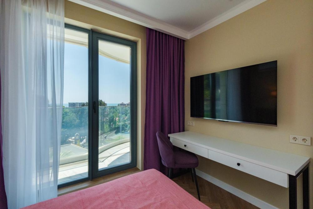Апартаменты находятся в седьмом корпусе гостиничного комплекса Marine Garden. Основные характеристики: - кровать размера 180х200 - душ - вид на горы - балкон. Высокоскоростной доступ к интернету по wi-fi Телефон LED телевизор Современная система контроля климата Фен