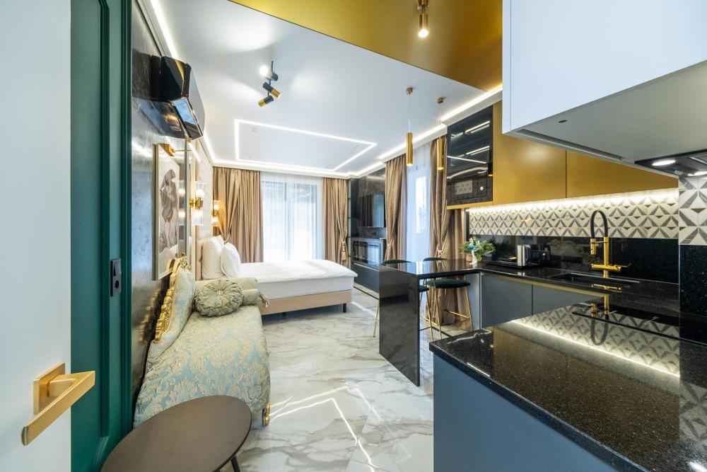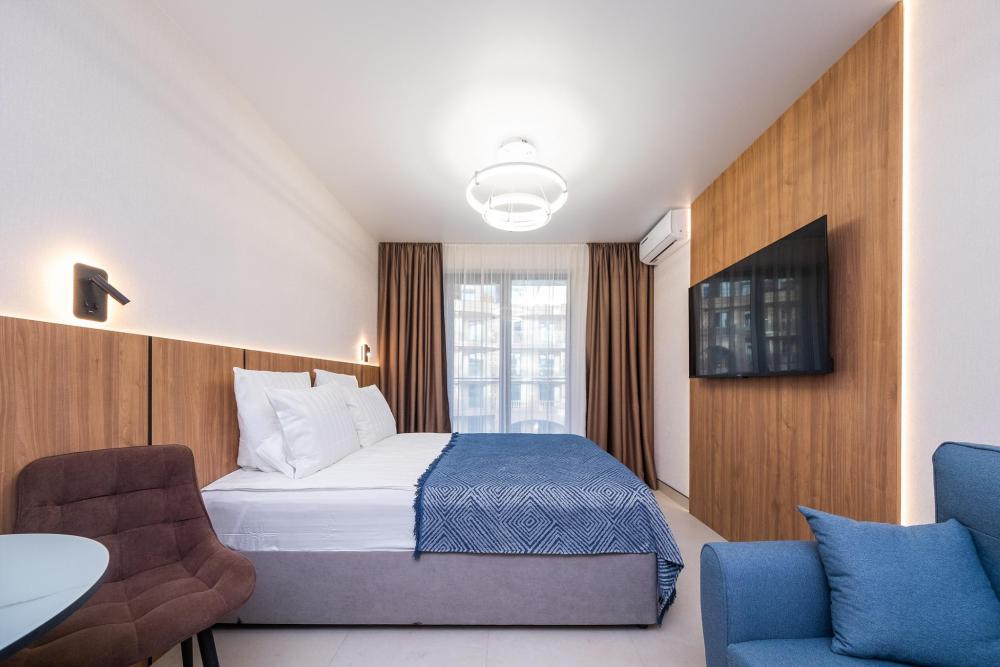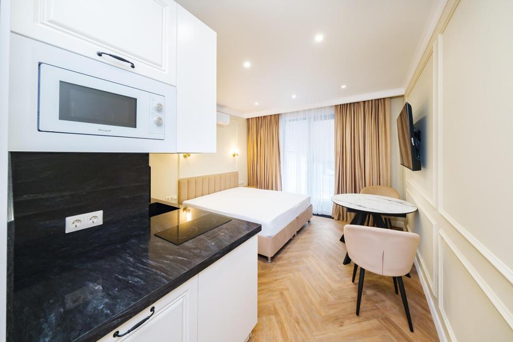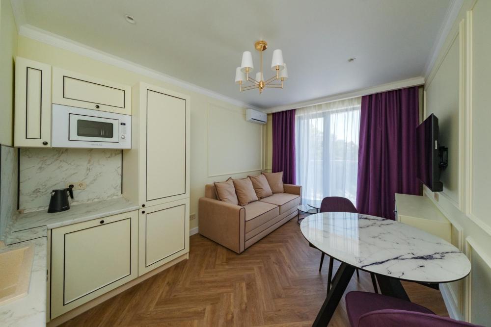 Апартаменты находятся в седьмом корпусе гостиничного комплекса Marine Garden. Основные характеристики: - кровать размера 180х200 - душ - вид во двор - балкон. Высокоскоростной доступ к интернету по wi-fi Телефон LED телевизор Современная система контроля климата Фен