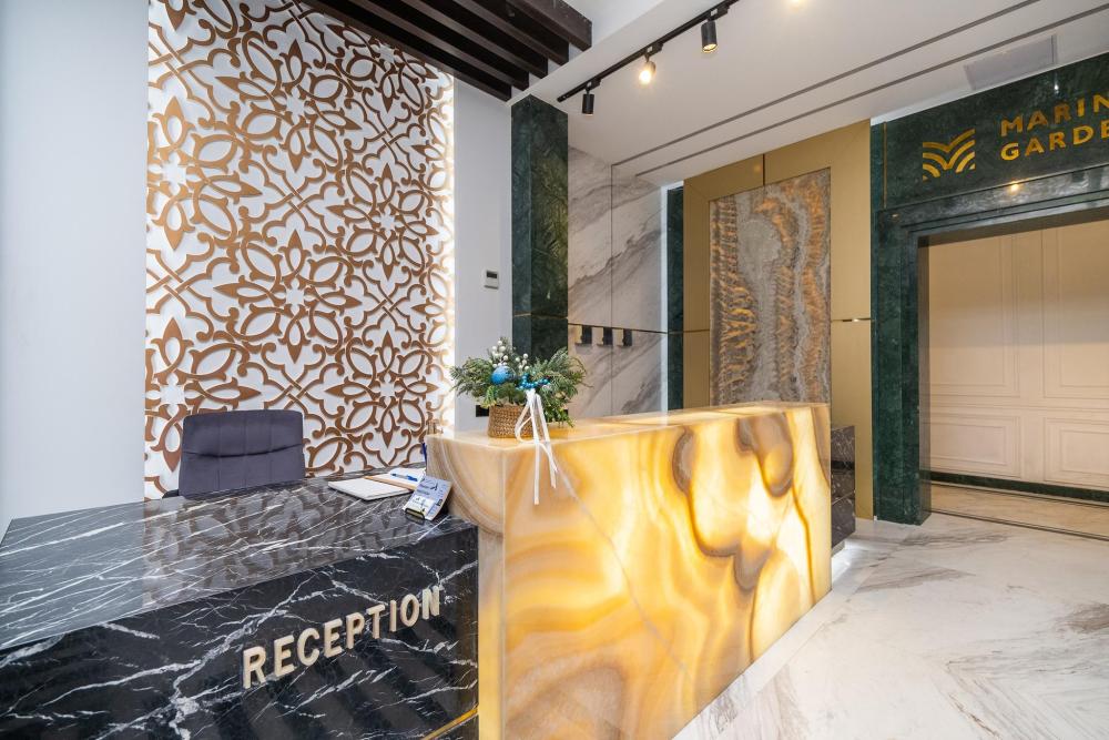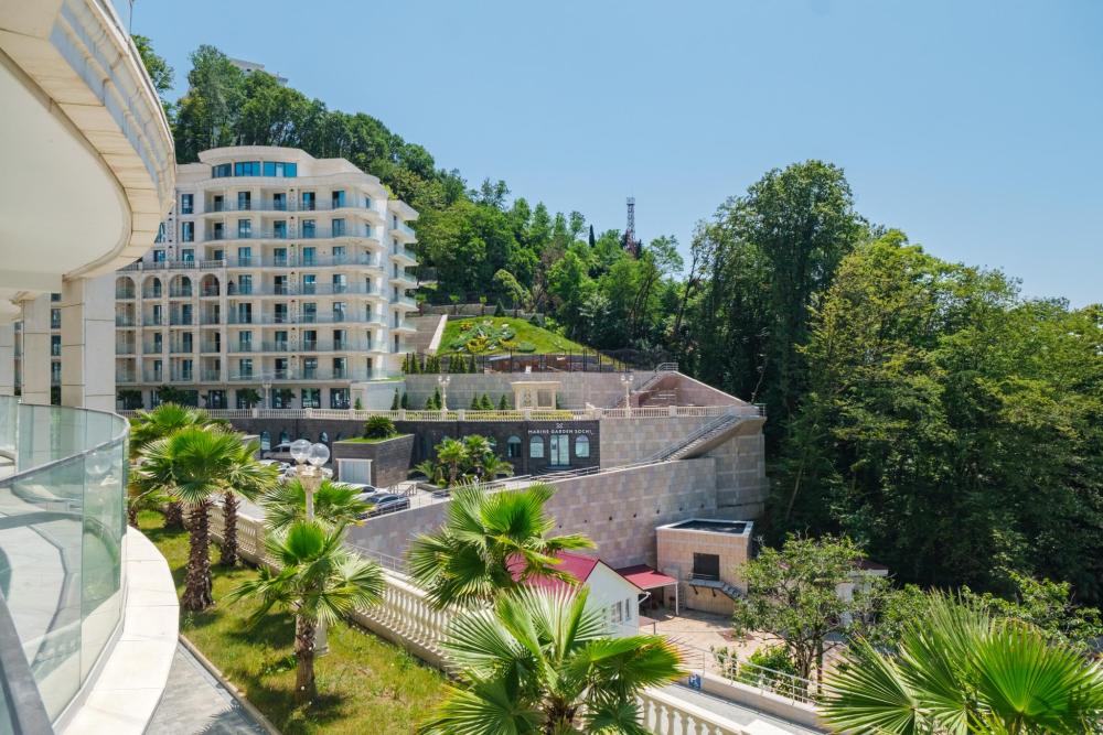 Апартаменты находятся во втором корпусе гостиничного комплекса Marine Garden. Основные характеристики: - кровать размера Super King Size (200х200), из которой можно сделать 2 раздельные кровати; - душ; - вид на горы , во двор; - балкон. Высокоскоростной доступ к интернету по Wi-Fi. Телефон. LED-телевизор. Современная система контроля климата. Фен.