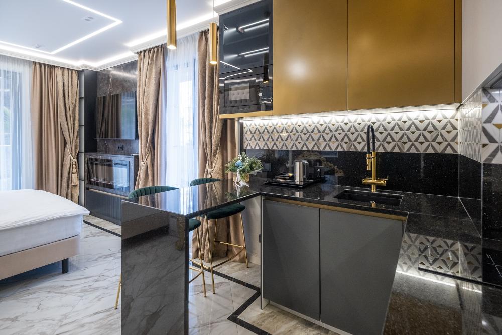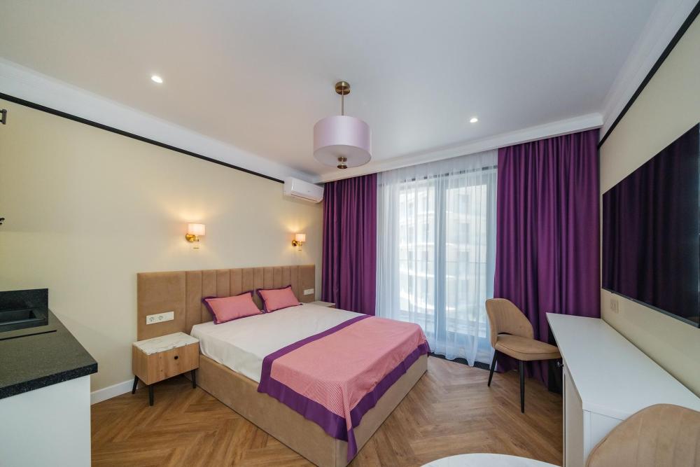 Апартаменты находятся в третьем корпусе гостиничного комплекса Marine Garden. Основные характеристики: - кровать размера 180х200 - душ - вид на горы - балкон. Высокоскоростной доступ к интернету по wi-fi Телефон LED телевизор Современная система контроля климата Фен