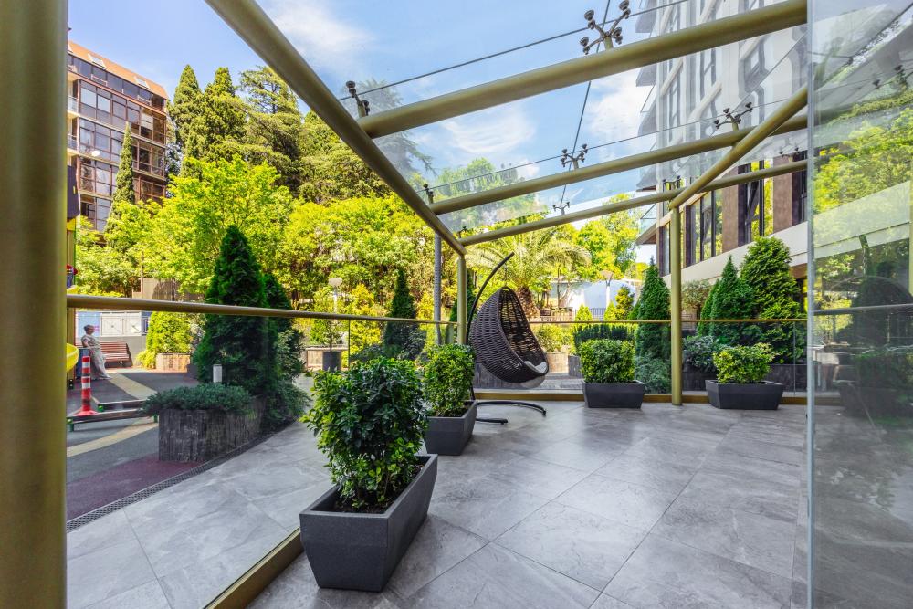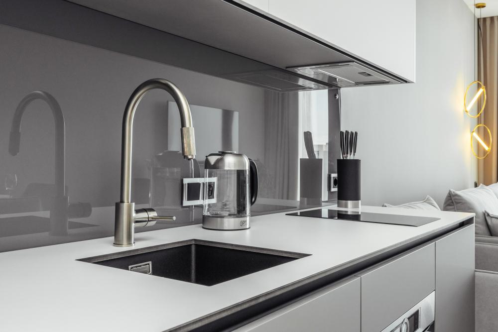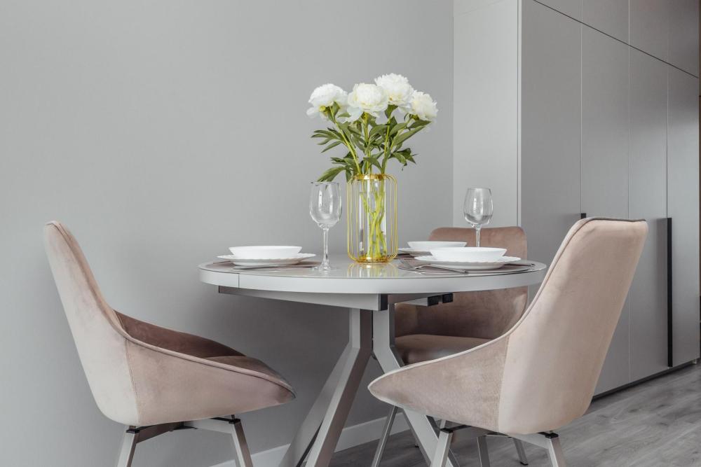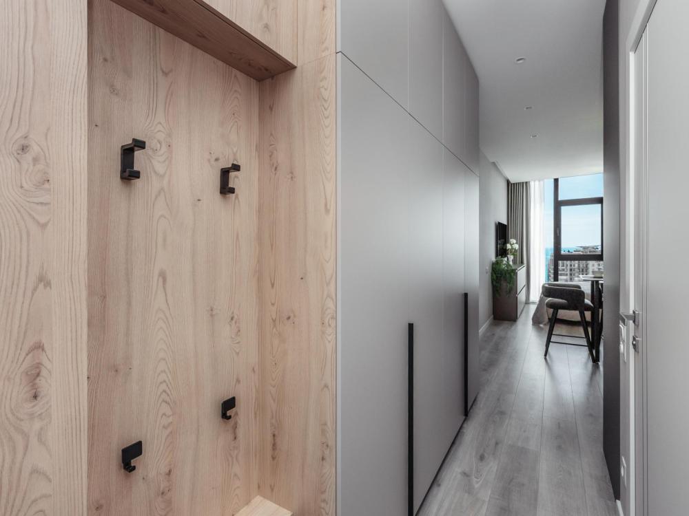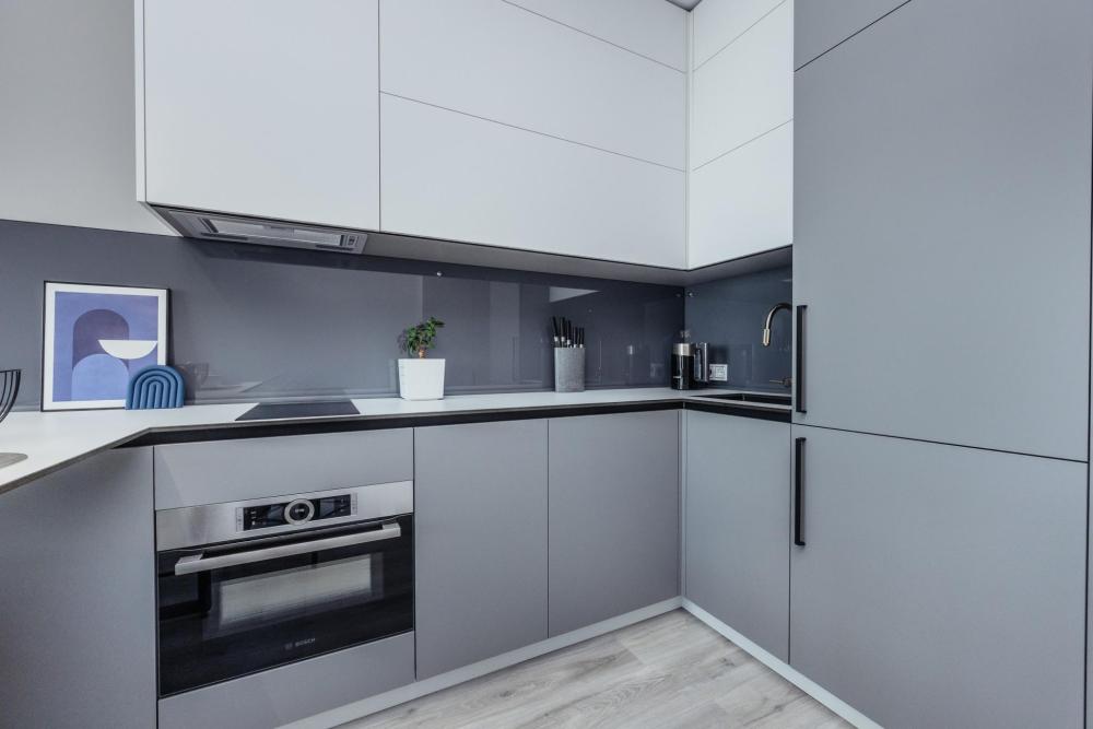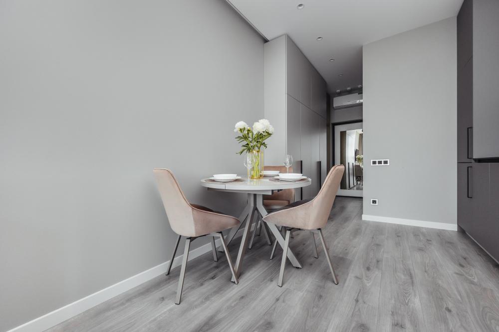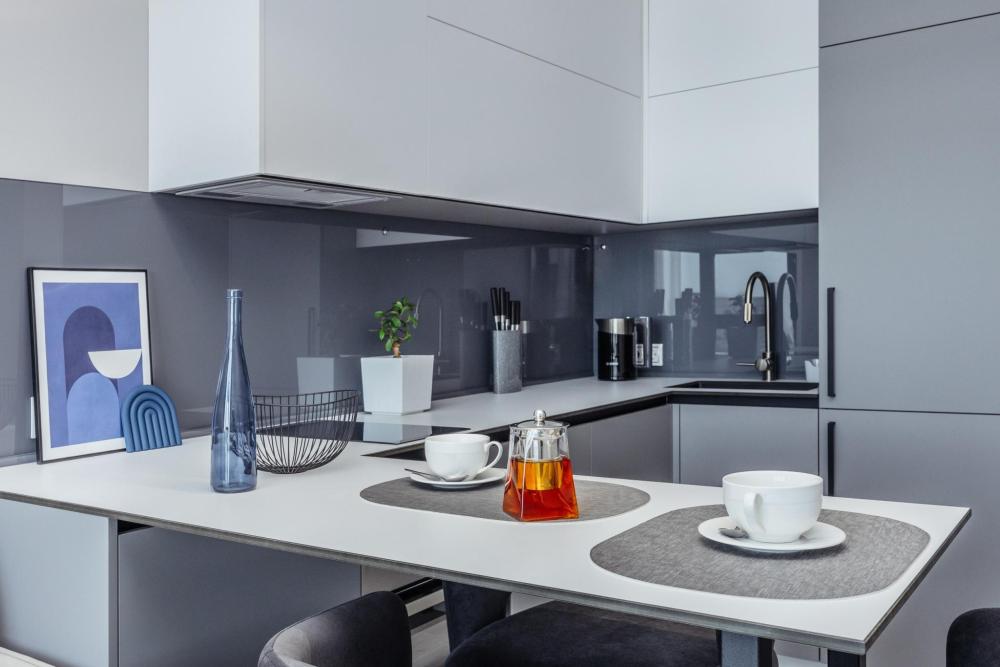 В апартаментах каждый элемент продуман для комфорта гостей: современная стильная мебель и отделка класса люкс; полностью оборудованная кухня с варочной поверхностью, вместительным холодильником, духовым шкафом с функцией микроволновки, посудомоечной машиной и всей необходимой кухонной утварью; уютная спальная зона с удобным диваном-кроватью и белоснежным бельём для сладкого сна; дополнительное комфортное спальное место для третьего гостя; беспроводной интернет для работы и развлечений, телевизор со смарт-ТВ; кондиционер, теплые полы в ванной; в ванной комнате душевая система, свежие полотенца, гигиенические средства, фен, гладильная доска, стиральная машина, средства для стирки, сейф.