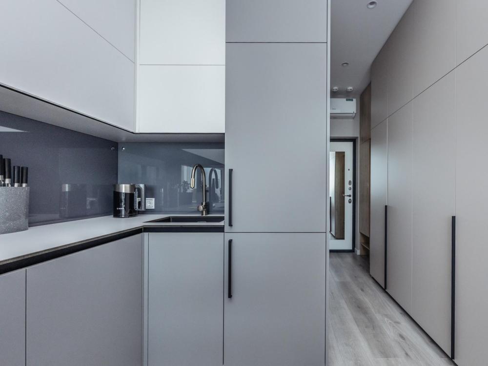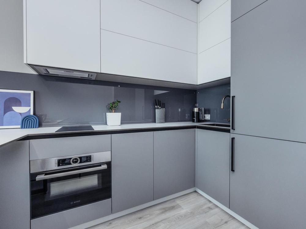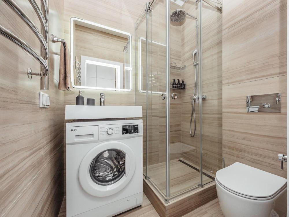 В апартаментах каждый элемент продуман для комфорта: современная стильная мебель и отделка класса люкс; полностью оборудованная кухня с варочной поверхностью, вместительным холодильником, духовым шкафом с функцией микроволновки, посудомоечной машиной и всей необходимой кухонной утварью; уютная спальная зона с удобным диваном-кроватью и белоснежным бельём для сладкого сна; дополнительное комфортное спальное место для третьего гостя; беспроводной интернет для работы и развлечений, телевизор со смарт-ТВ; кондиционер, теплые полы в ванной. В ванной комнате душевая система, свежие полотенца, гигиенические средства, фен. Гладильная доска, стиральная машина, средства для стирки, сейф.