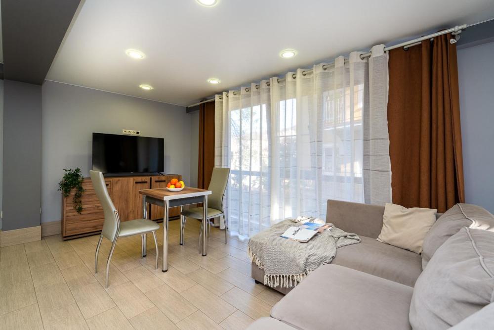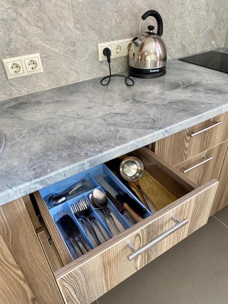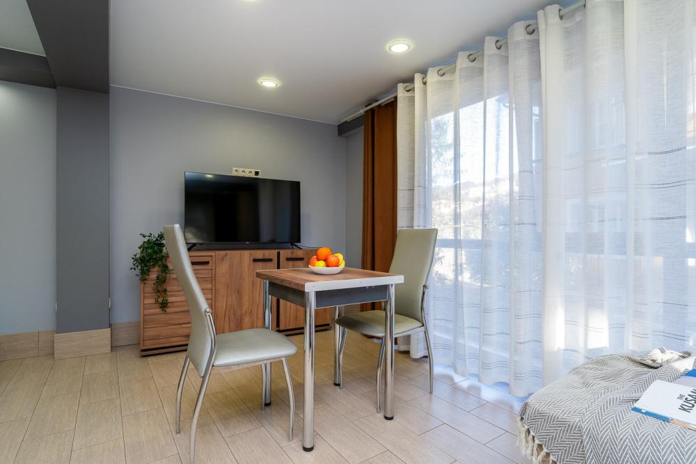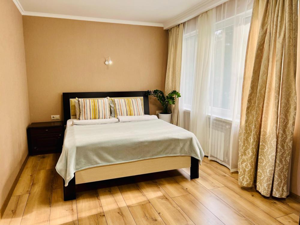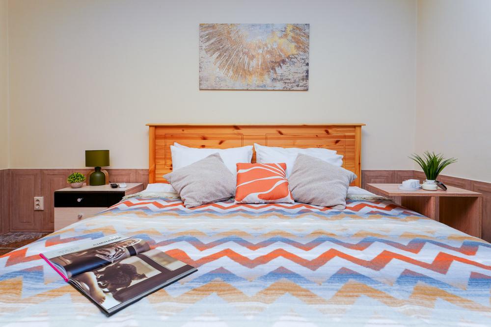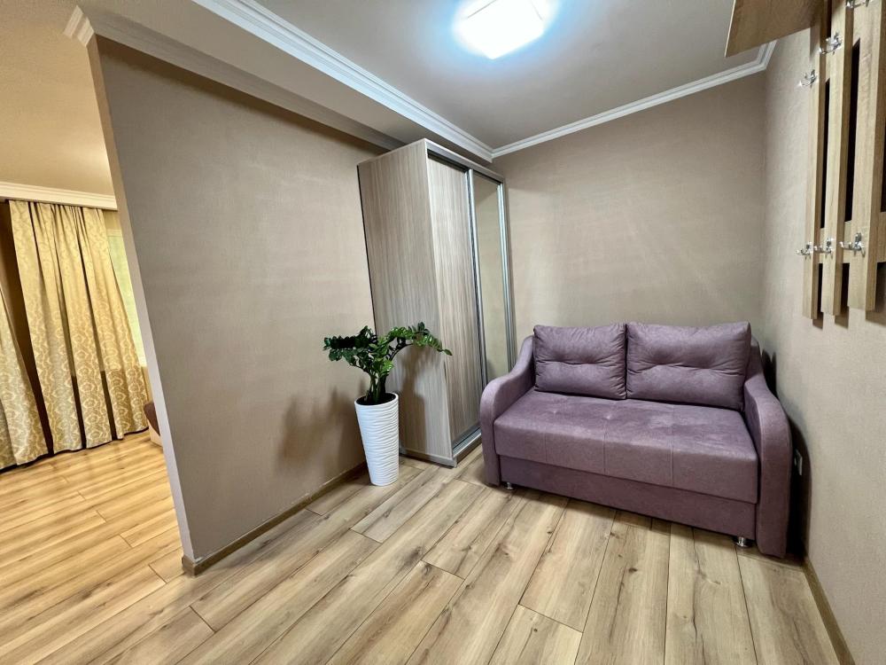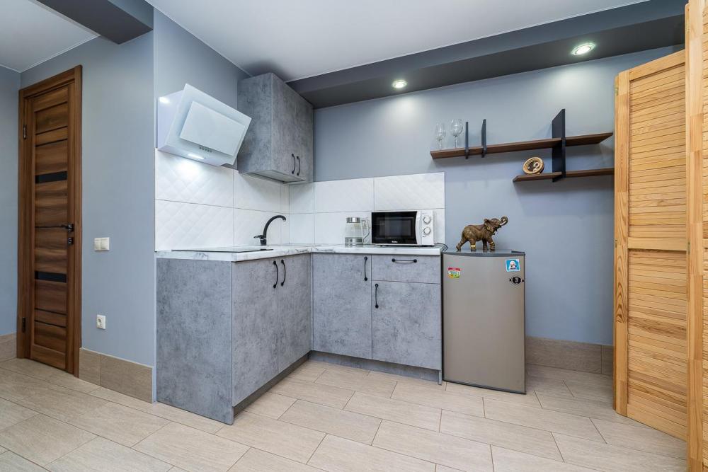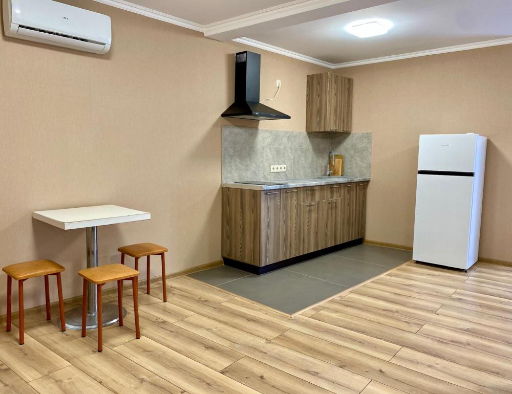 Апартаменты студия Квартира полностью укомплектована всем необходимым для комфортного пребывания: двуспальная кровать, двуспальный раскладной диван, шкаф для одежды. Выделенная обеденная зона и оборудованная кухня: холодильник, встраиваемая варочная панель, вытяжка, микроволновая печь, чайник, посуда, столовые приборы. Электроника и оборудование: смарт-телевизор (275 бесплатных тв-каналов), быстрый стабильный WI-FI, сплит-система, стиральная машина, фен, утюг, гладильная доска, сушилка для белья. Совмещенный сан-узел: душ, туалет, гигиенический душ.