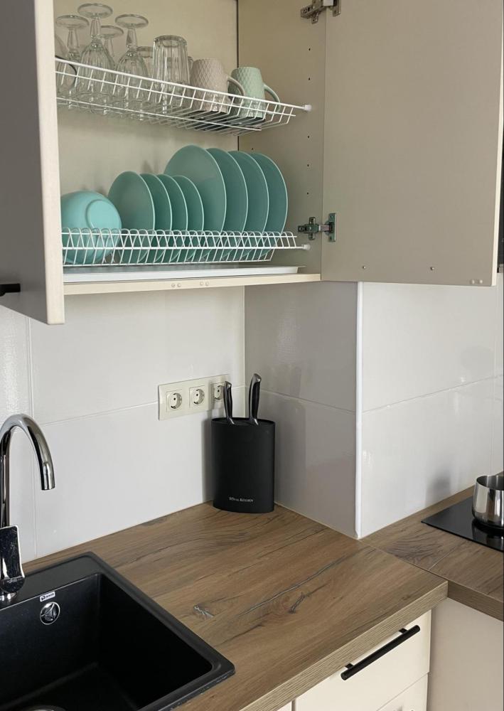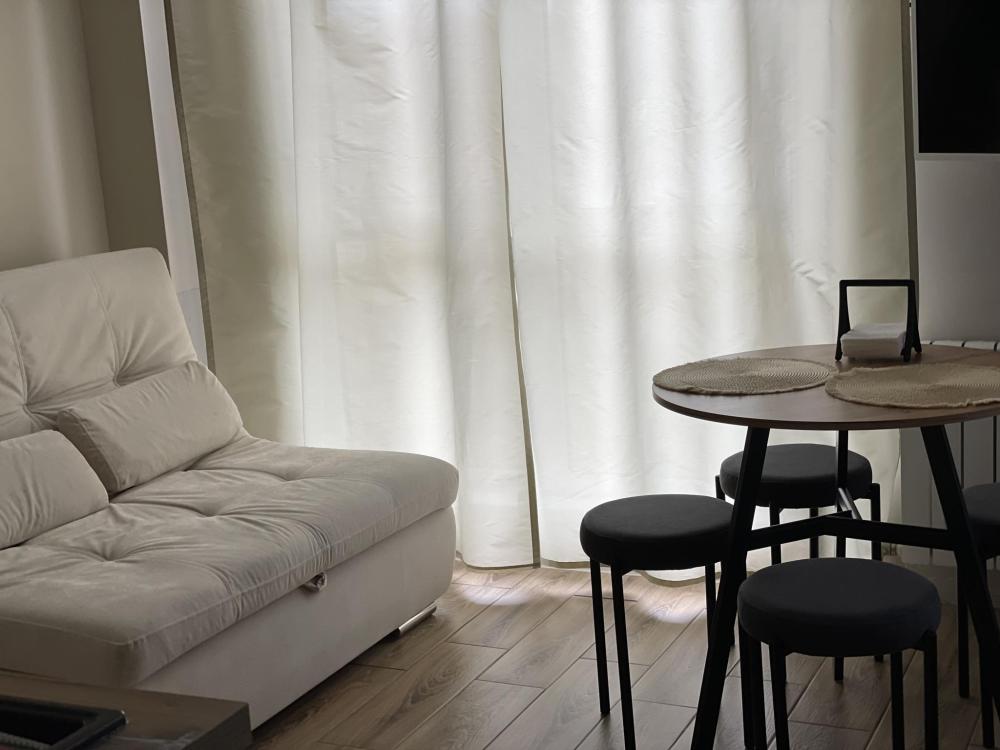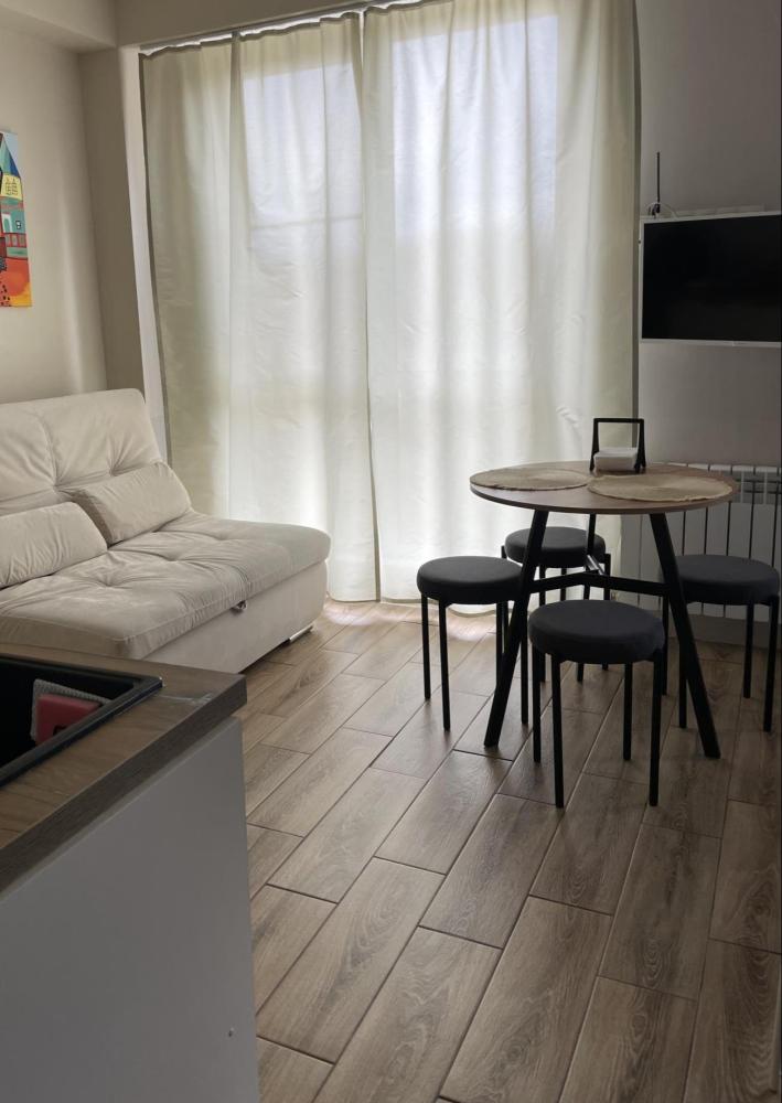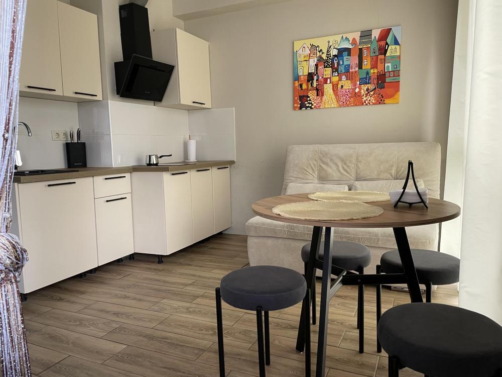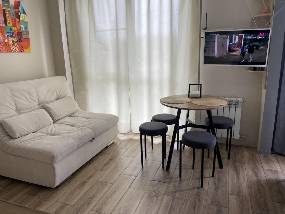 1-комнатные апартаменты стандарт Квартира оборудована всем необходимым для комфортного проживания: диван, двуспальная кровать, бытовая техника, собственная ванная комната и туалет.