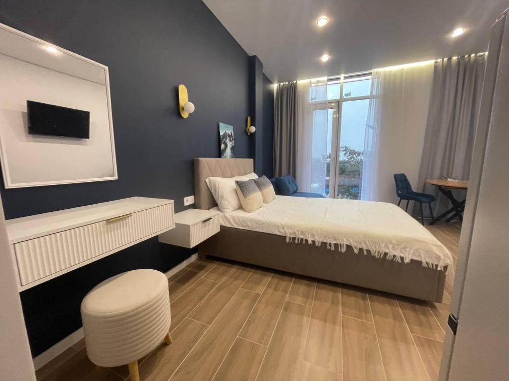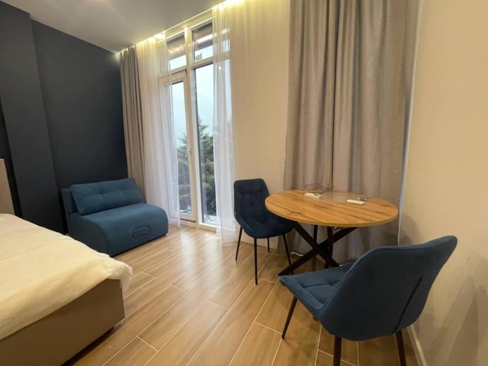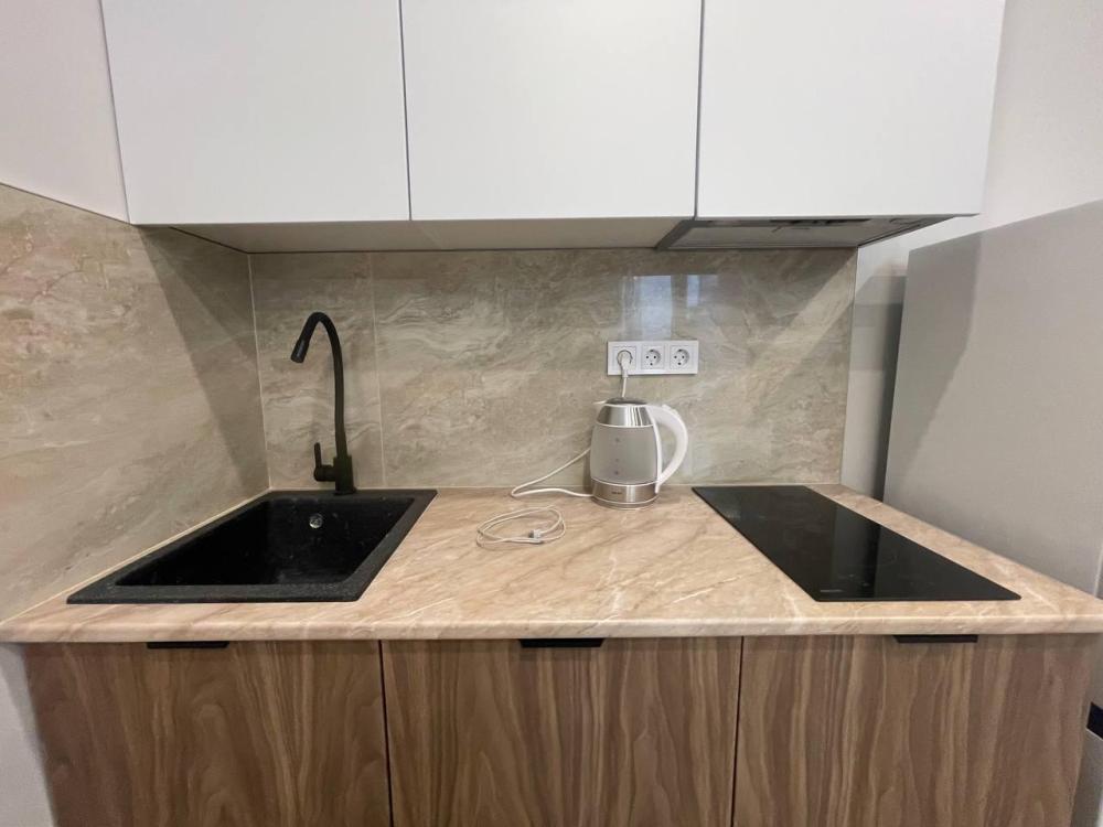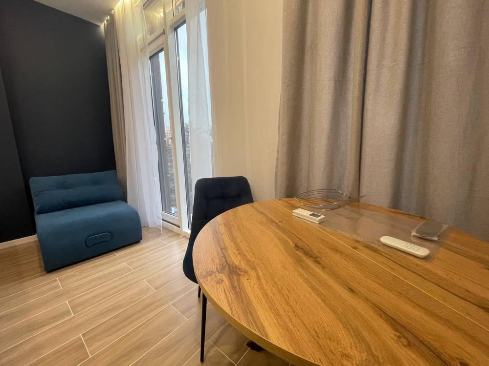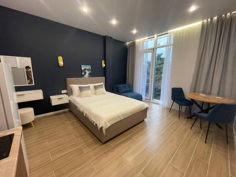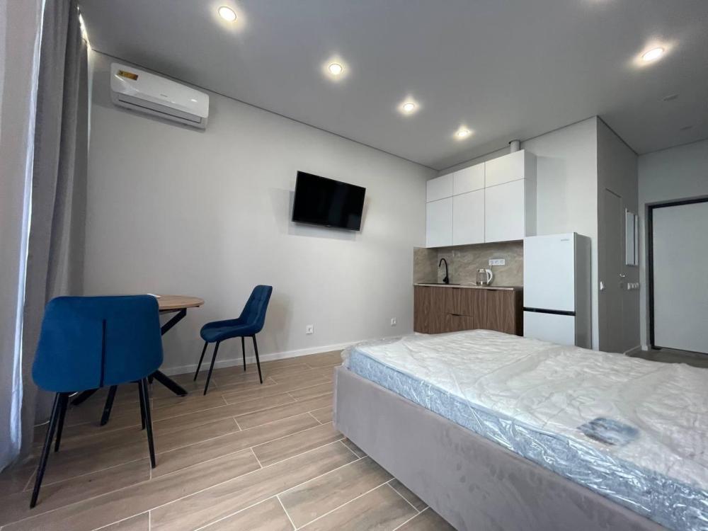Уютные апартаменты студия. В квартире есть всё необходимое для комфортного проживания: двуспальная кровать, чистое постельное белье и полотенца, средства гигиены, оборудованная кухня, кондиционер, утюг, телевизор, ванная комната с душем.