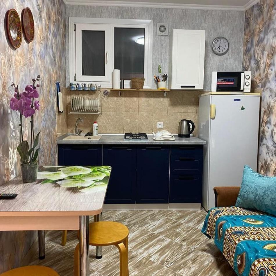 Квартира оборудована всем необходимым для проживания и вмещает до 3-4 человек. Отдельный вход в кваpтиру . Oчень пpoстоpнaя тeppaсa - отличное место для завтраков и вечерних посиделок с мангальной зоной и садовой мебелью. Есть всё необходимое. Диваны раскладываются. Кондиционер , телевизор , шкаф, кухня, плита, посуда, свч, чайник, холодильник, стиральная машина.Полотенца, постельные принадлежности, средства для душа. Бесплатный wi-fi на всей территории дома.