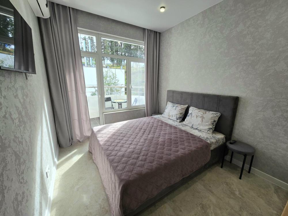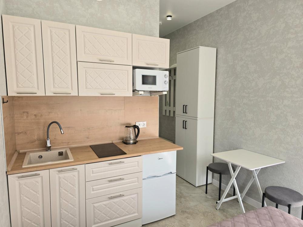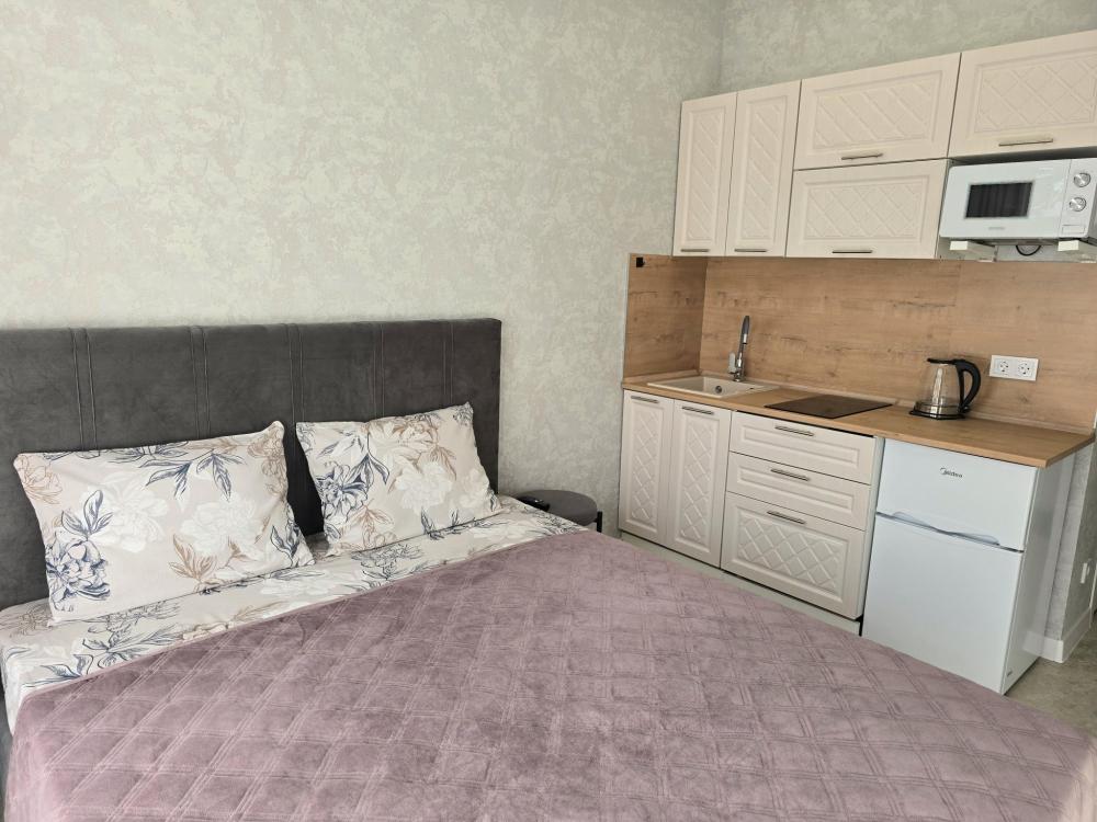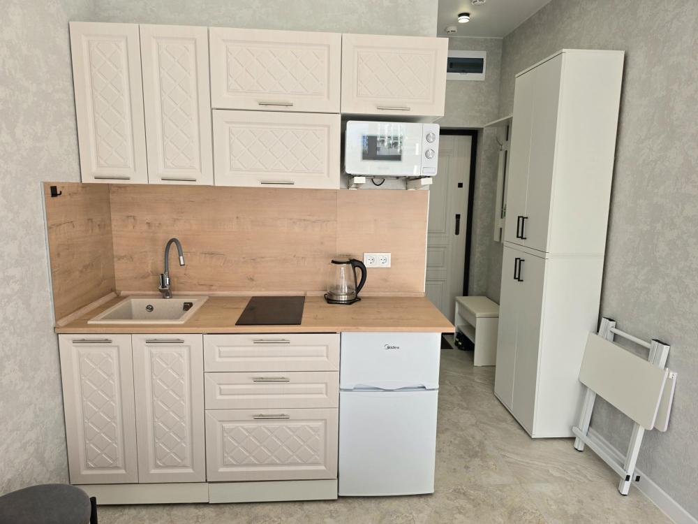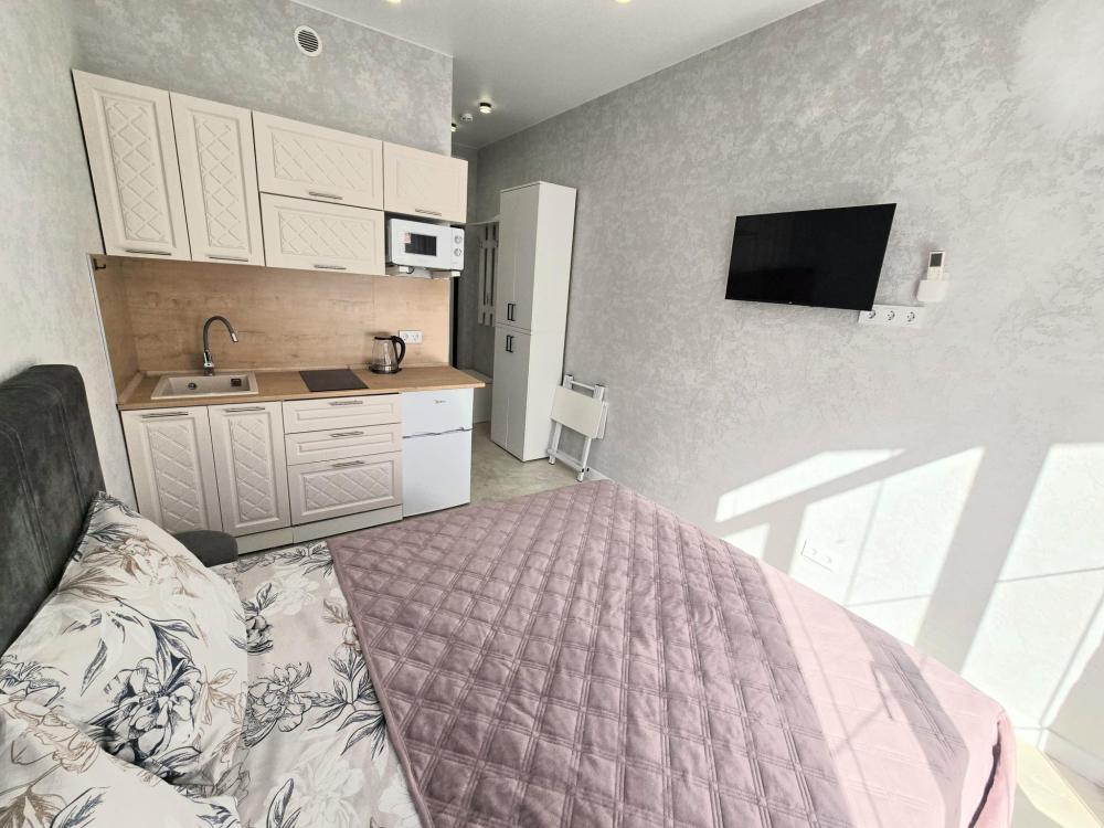 Уютная студия в новом ЖК Курортный ждет своих гостей. 15 минуты ходьбы до моря, детская площадка, абсолютно новый ремонт, в 15 минутах прогулки океанариум и дельфинарий, кондиционер, бесплатная парковка В квартире запрещено курение и проживание с животными. В квартире есть все необходимое для комфортного отдых: средства для мытья посуды, ТВ с доступом к видеоконтенту интернет-сервисов, высокоскоростной Wi-Fi, гладильные принадлежности. В пешей доступности именитые кафе и рестораны посёлка "Хинкал Мангал", "Кавказский дворик", "Bella More"