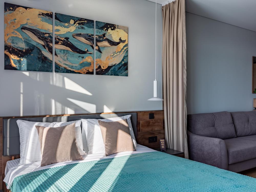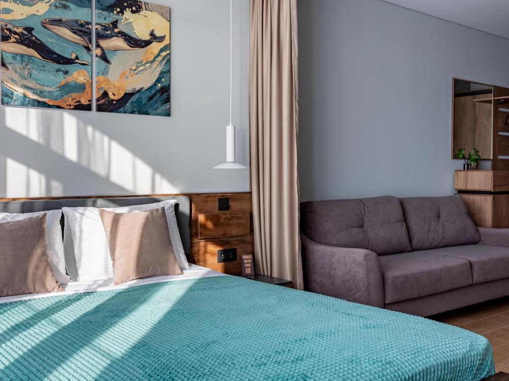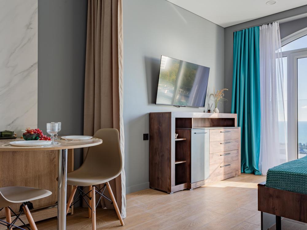 Друзья! Рады видеть вас в Сочи! Самые красивые закаты из окон вашей квартиры! Студия с дизайнерским ремонтом рассчитана на 4 гостей. В квартире есть: - Кухонная зона: СВЧ, холодильник, чайник, плита, посудомоечная машина - Посуда для сервировки, столовые приборы, бокалы - Двуспальная кровать, диван - Постельное бельё, полотенца - Собственный санузел с душевой кабиной - Кондиционер, телевизор, Wi-Fi Местоположение: Вид на море Рядом — океанариум, набережная, Адлер-курорт, рядом много кафе, магазинов, экскурсионных бюро, остановки общественного транспорта — удобно добираться до Сочи, ж/д, Скайпарка, Сочипарка и пр. До пляжа Чкаловский 500 м, рядом остановка общественного транспорта «Знание», в 20 минутах станция «Известия» — удобно добираться на «Ласточке» до Розы Хутор и Сочи. В квартире запрещается: - Курение любых форм курительных средств, жидкостей и пр. - Шумные вечеринки, это не только требование закона, но и простое уважение к соседям - Проживание гостей младше 18 лет без сопровождения взрослых - Проживание с питомцами только по предварительному согласованию При нарушении этих условий мы можем отказать вам в проживании. Заезд: после 14:00 Выезд: до 11:00 Ранний заезд и поздний выезд обсуждаются индивидуально. Важно! В апартаментах предусмотрен залог. Залог удерживается полностью или частично при нарушении правил проживания (курение, проживание с питомцами и др.) и/или при ущербе имуществу. При досрочном выезде до окончания срока бронирования оплата за оставшиеся дни не возвращается. - Прeдocтaвляeм oтчeтные документы (по запросу) - Круглосуточное заселение - Убopкa входит в cтoимость - Оплaтa онлайн - Paботaeм с oргaнизaциями