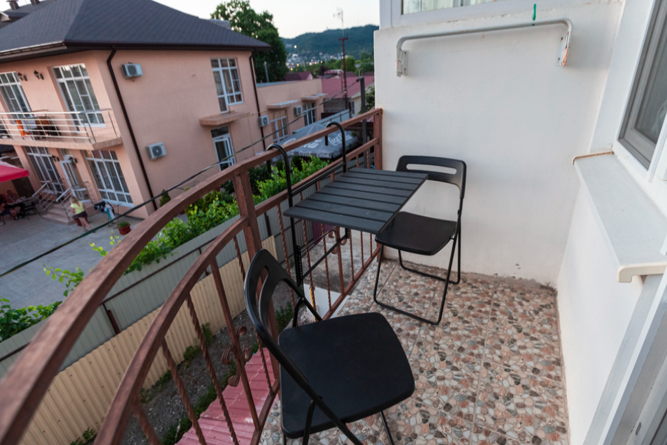 Этаж 2, балкон 6 спальных мест: ?Два просторных дивана (160×200 см) и двухъярусная кровать (1 ярус - 160*200см, 2 ярус - 90*200см) обеспечат комфортный отдых до 6 гостей.