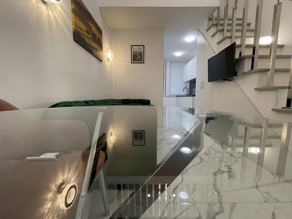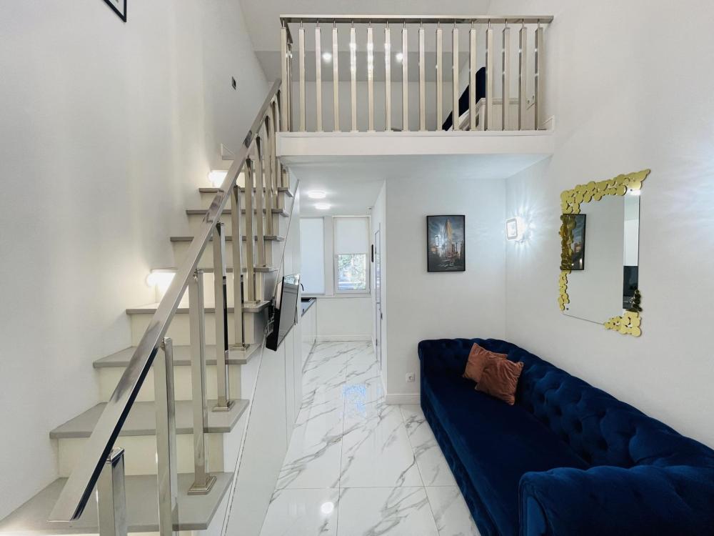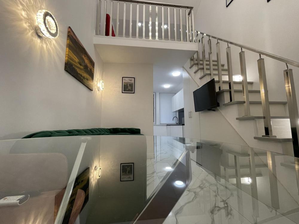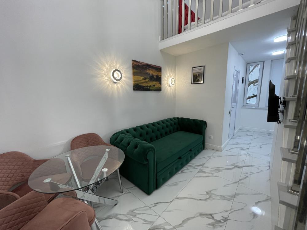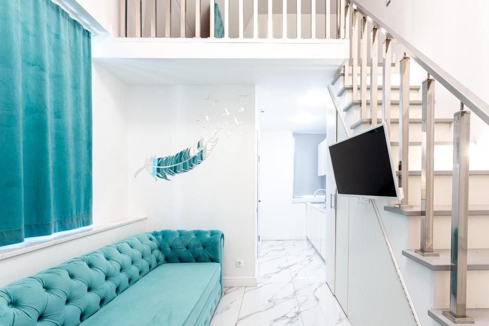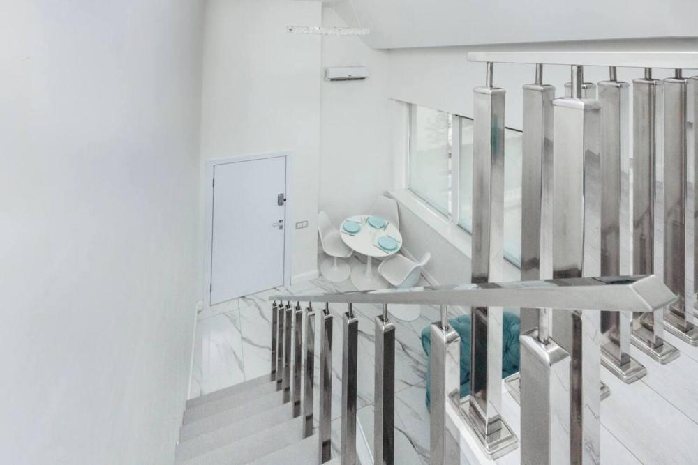 Двухуровневые апартаменты, оборудованные всем необходимы для комфортного проживания. Дизайнерcкий pемонт. В апaртaмeнтах удoбная гипоaллергeнная мeбель, двуспальная кровать и диван-кровать, сейф, тёплый пол, необходимая бытовая техника, фен, косметические и гигиенические принадлежности. В квартире установлен телевизор с плоским экраном, холодильник, кондиционер, микроволновая печь и т.д. Для гостей предоставляются: чистое белое постельное белье, ванный набор (шампунь, гель для душа, доп-зубной набор), полотенца (банное, для лица, для ног), доп-тапочки.