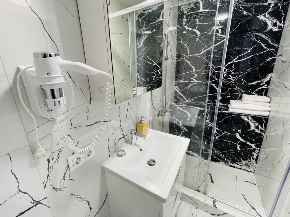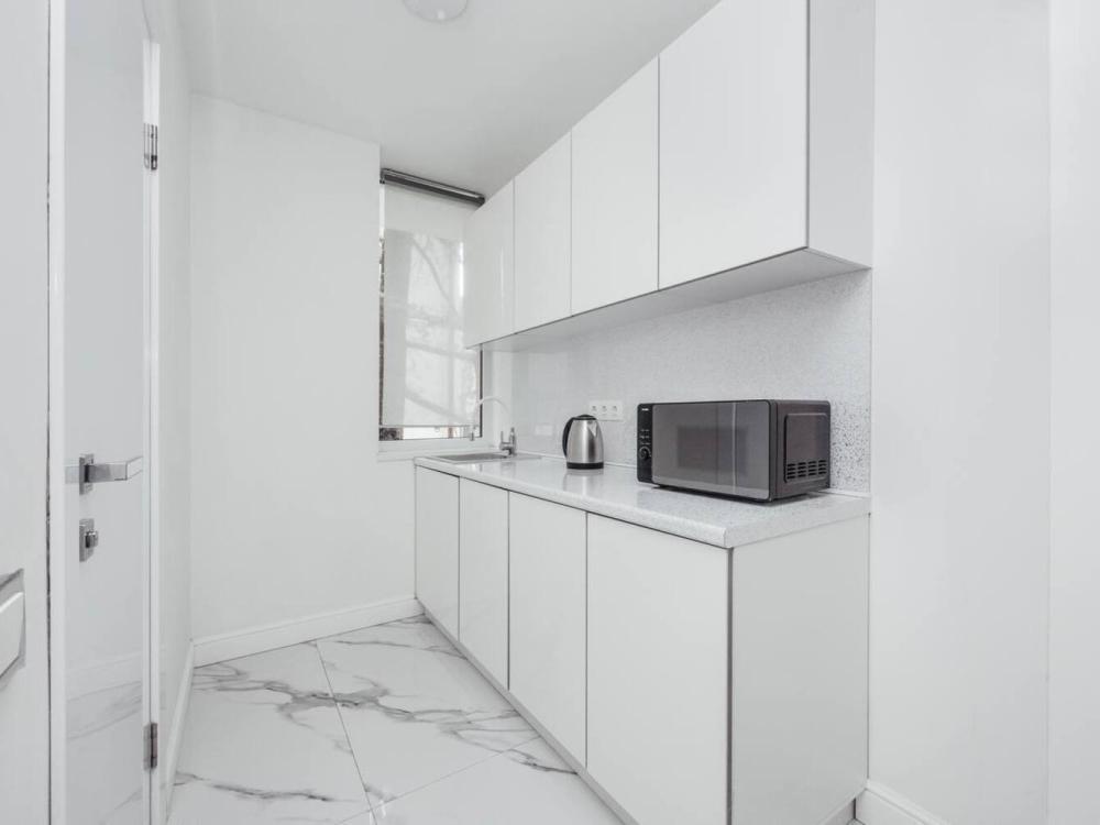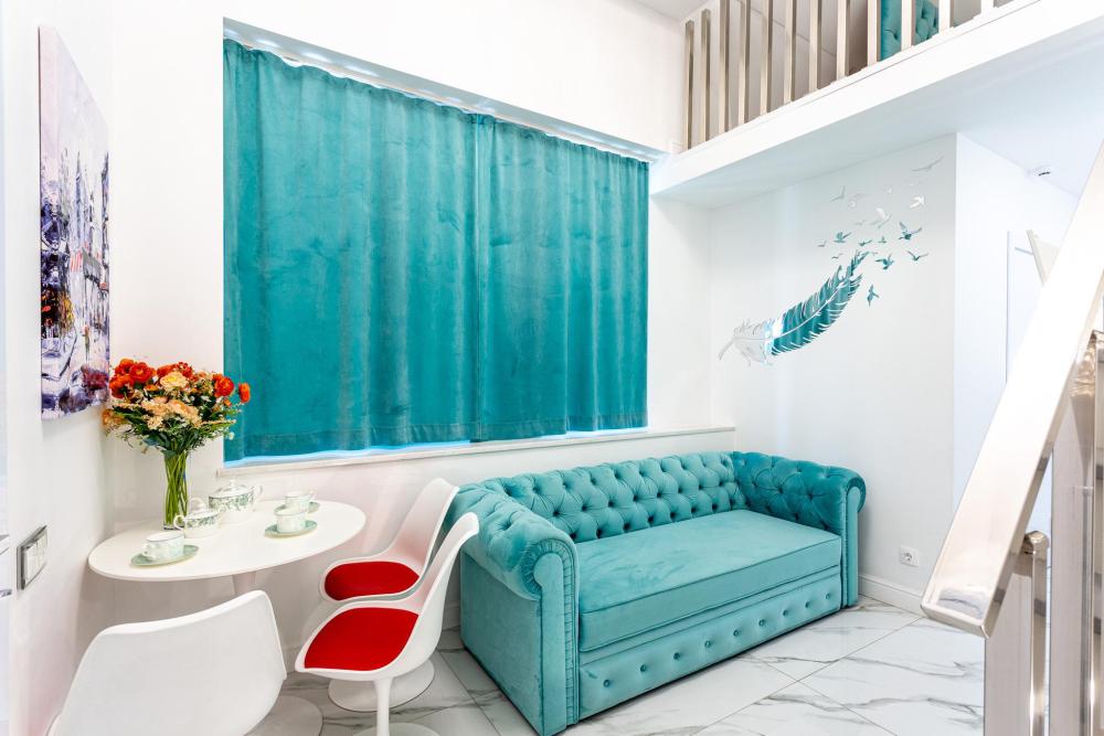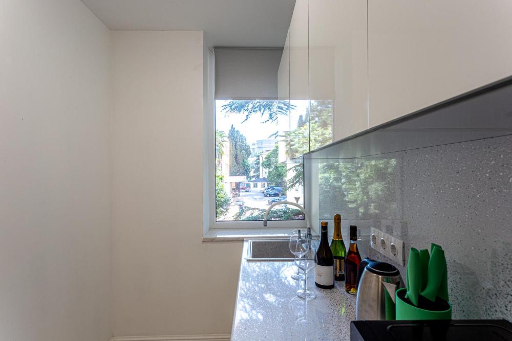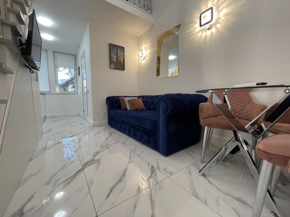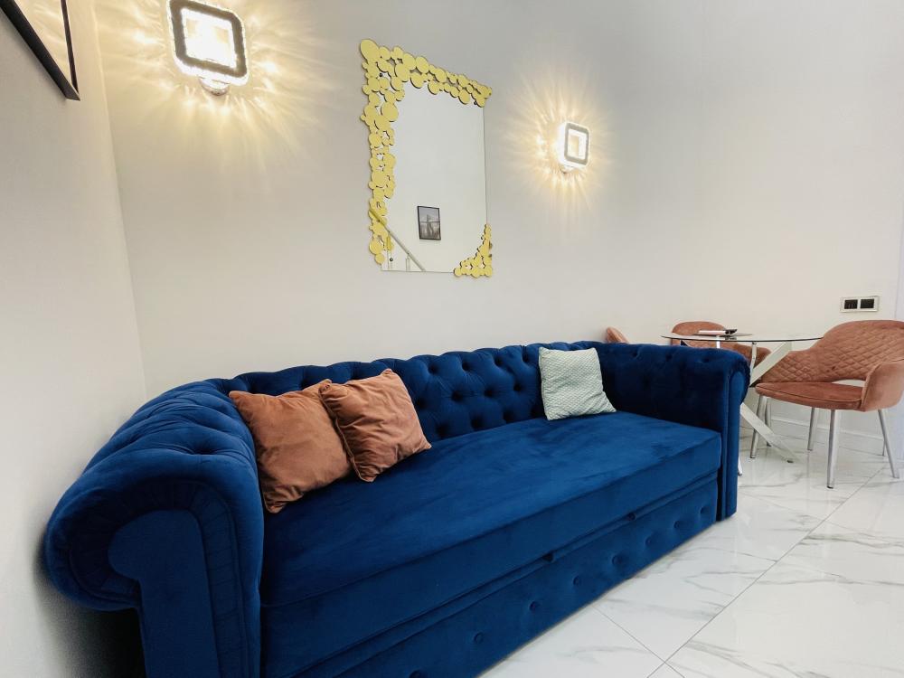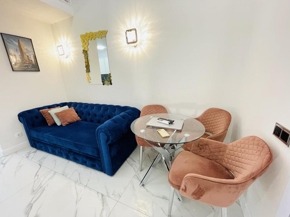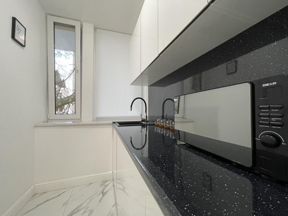 Апартаменты студия, оборудованные всем необходимы для комфортного проживания. Дизайнерcкий pемонт. В апaртaмeнтах удoбная гипоaллергeнная мeбель, двуспальная кровать и диван-кровать, сейф, тёплый пол, необходимая бытовая техника, фен, косметические и гигиенические принадлежности. В квартире установлен телевизор с плоским экраном, холодильник, кондиционер, микроволновая печь и т.д. Для гостей предоставляются: чистое белое постельное белье, ванный набор (шампунь, гель для душа, доп-зубной набор), полотенца (банное, для лица, для ног), доп-тапочки.
