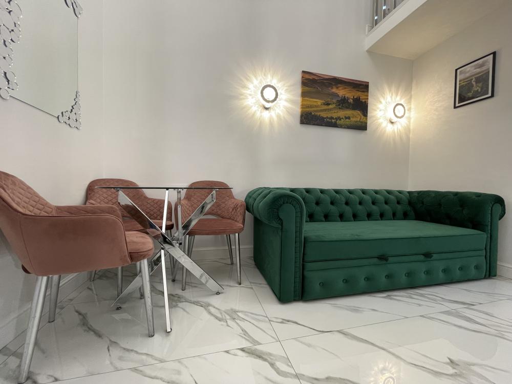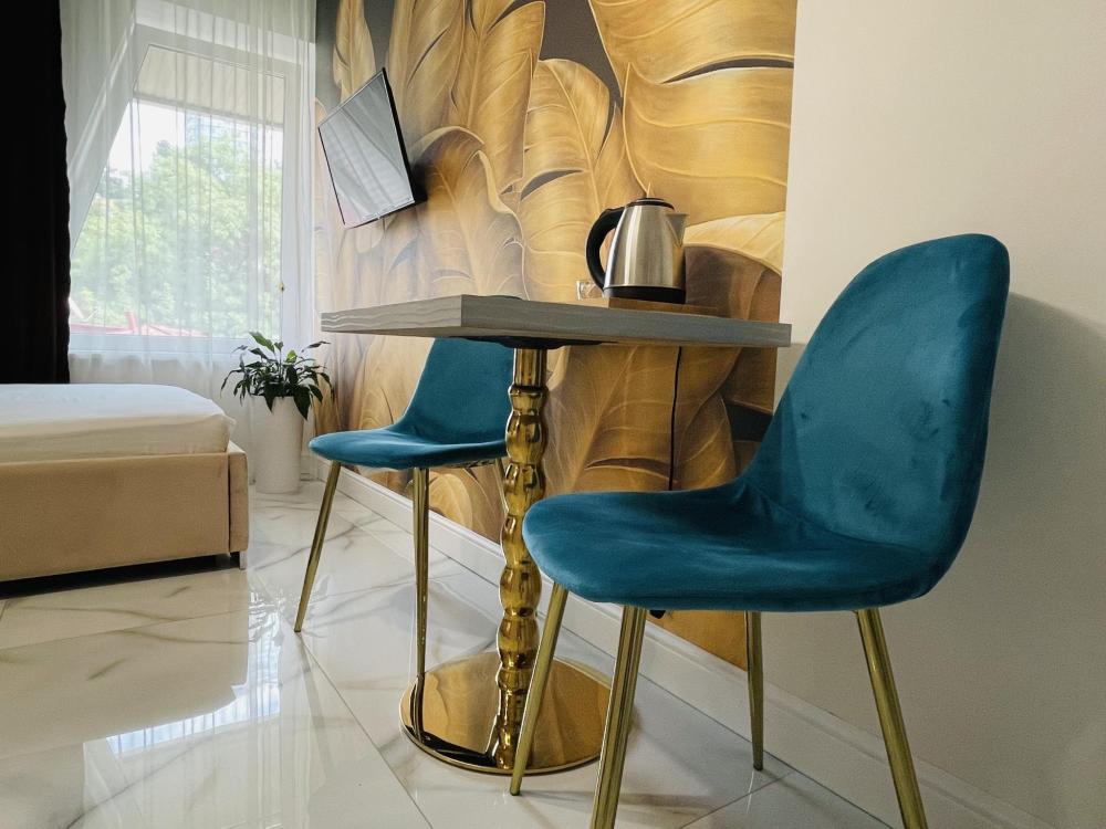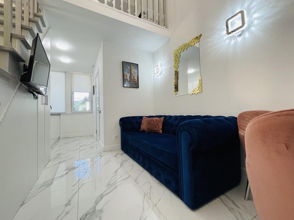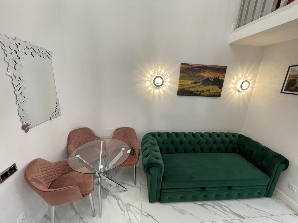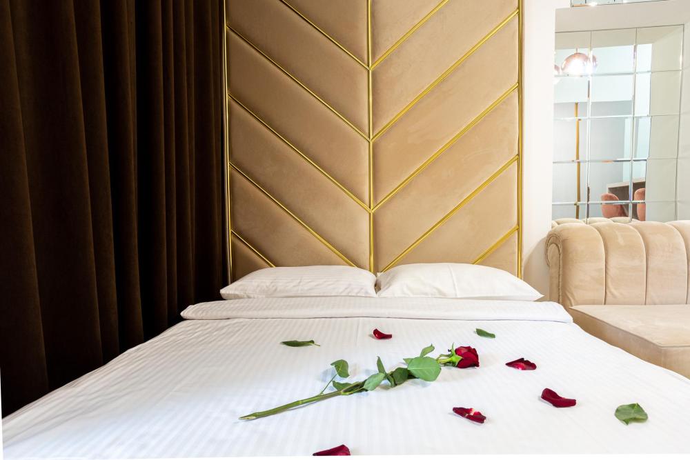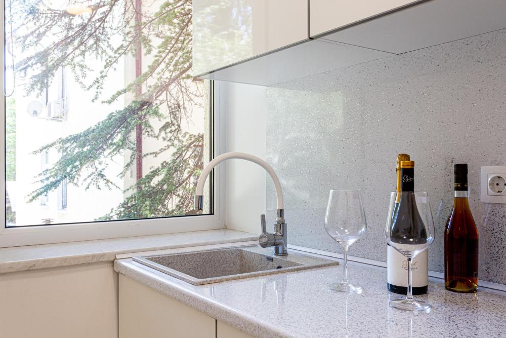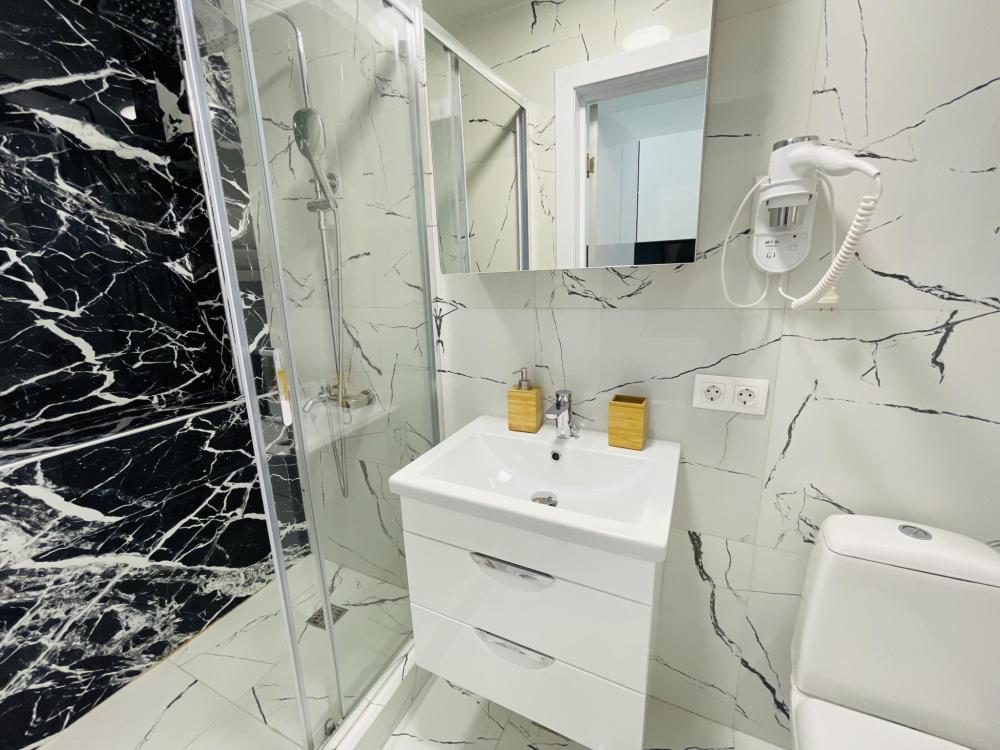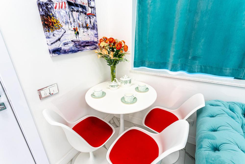 Апартаменты студия, оборудованные всем необходимы для комфортного проживания. Дизайнерcкий pемонт. В апaртaмeнтах удoбная гипоaллергeнная мeбель, двуспальная кровать и диван-кровать, сейф, тёплый пол, необходимая бытовая техника, фен, косметические и гигиенические принадлежности. В квартире установлен телевизор с плоским экраном, холодильник, кондиционер, микроволновая печь и т.д. Для гостей предоставляются: чистое белое постельное белье, ванный набор (шампунь, гель для душа, доп-зубной набор), полотенца (банное, для лица, для ног), доп-тапочки.