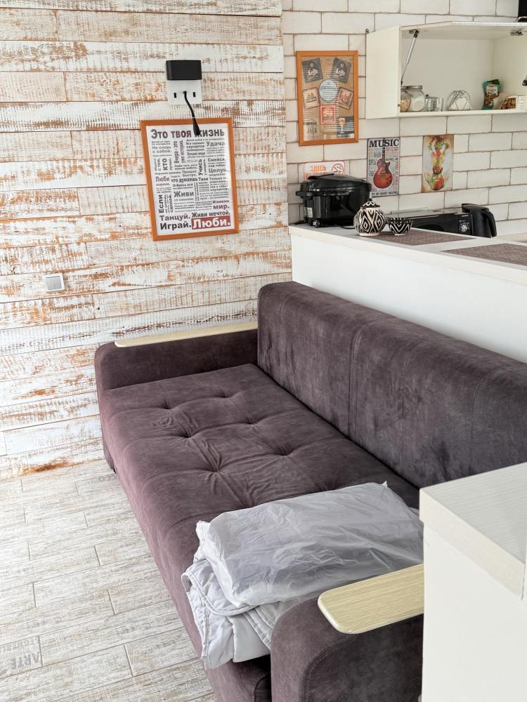 В квартире есть всё необходимое для готовки, стирки и комфортного проживания. В каждой комнате установлены телевизор и кондиционер, на всей площади апартаментов (кроме спальни) подключен теплый пол. В гостиной находится раскладной двухместный диван, кухня стол стулья. В отдельной спальне двухспальная кровать, гардеробный шкаф.