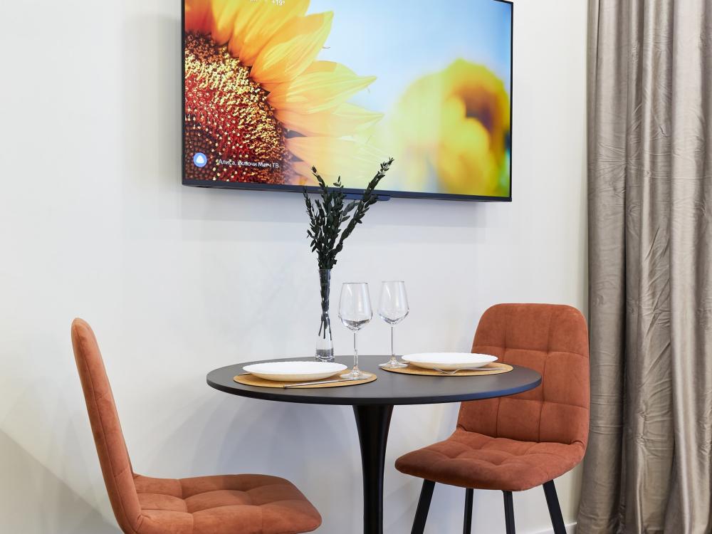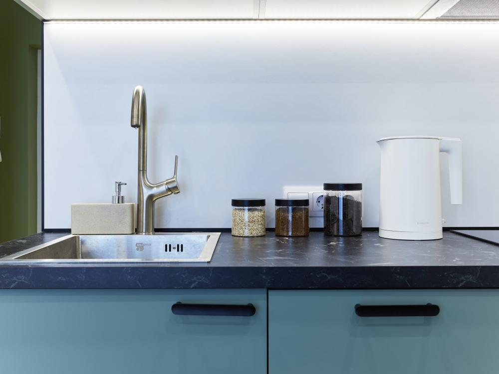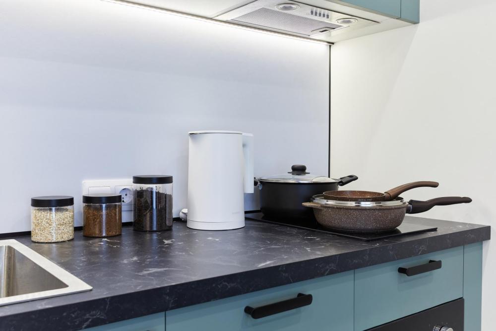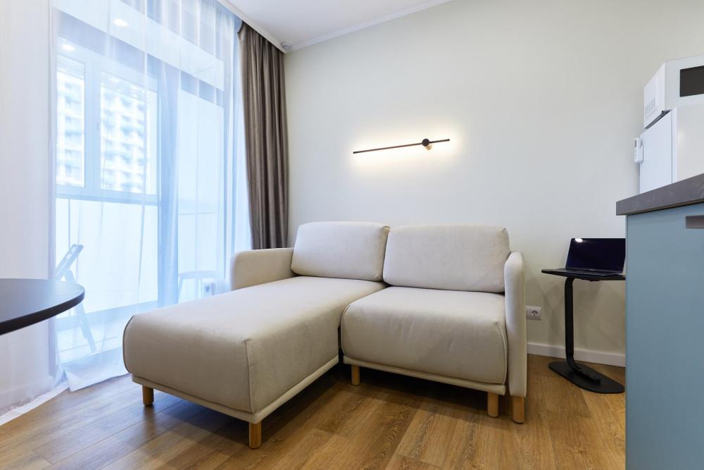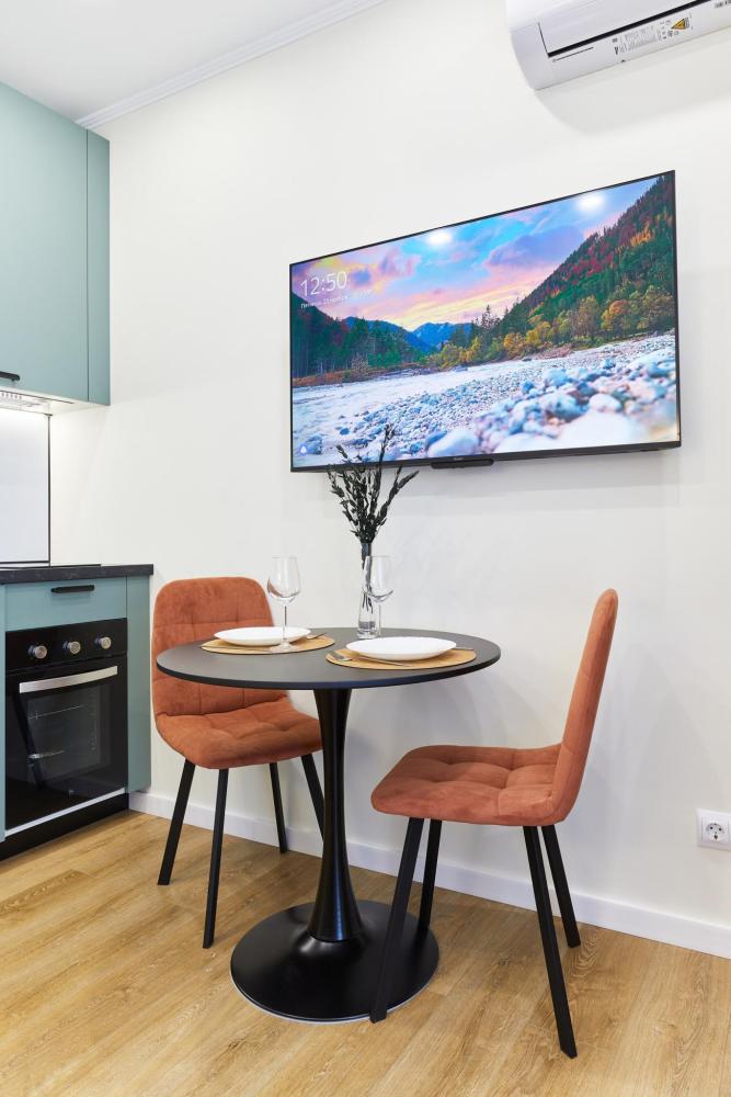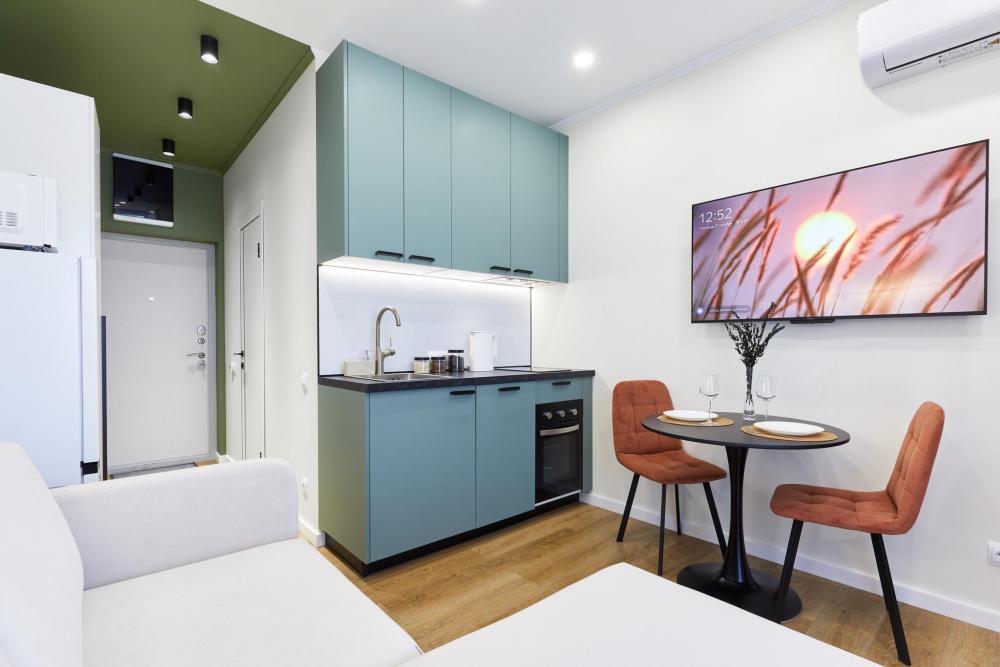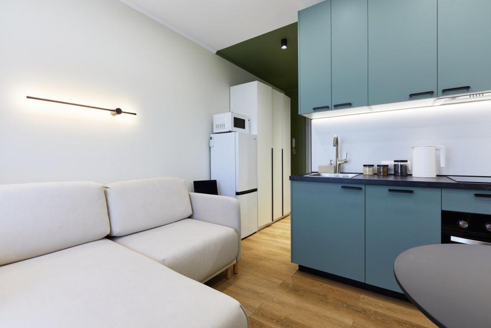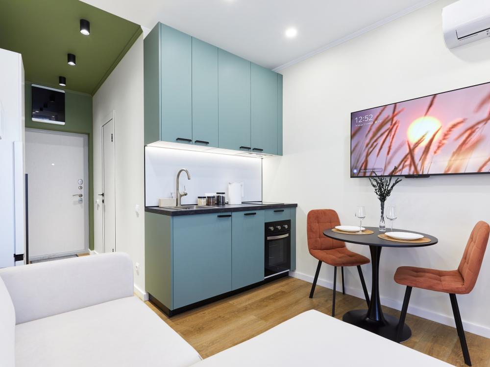 Новая студии с дизайнерским ремонтом оснащена помимо стандартного набора: двуспальной кроватью, посудомоечной машиной и капсулами, духовой печью, TV с Алисой, стирально-сушильной машиной, кроваткой для ребенка до 3 лет, премиальной косметикой и гигиеническими наборами, Wi-Fi, кондиционер, кофе, чай, вода при заезде.