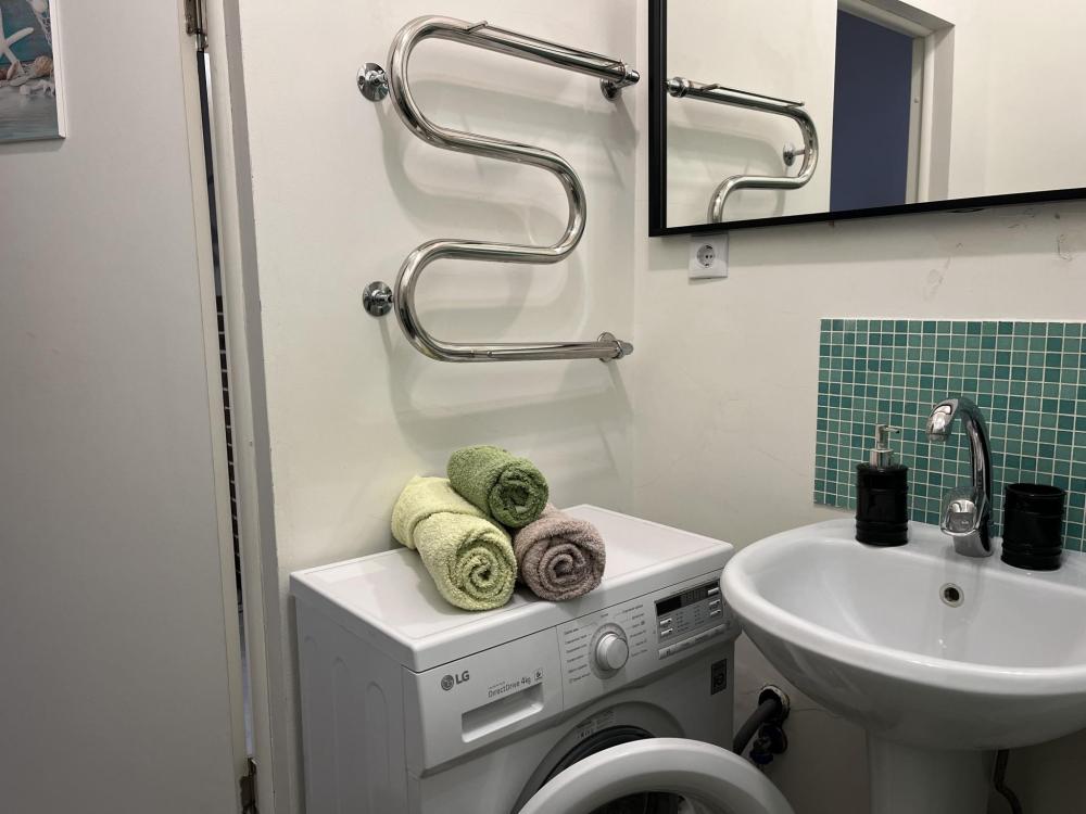 В квартире есть все необходимое для проживания и отдыха. Постельное белье из прачечной (мы следим за чистотой), пушистые полотенца, фен - все на своих местах). Холодильник, чайник, микроволновка.
