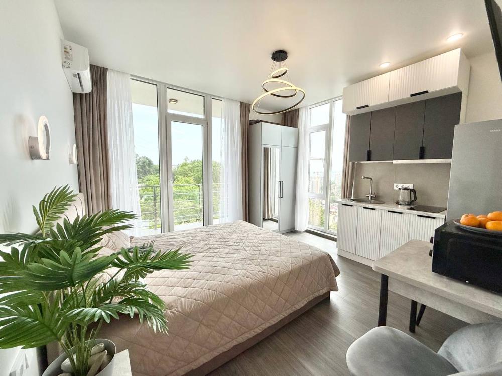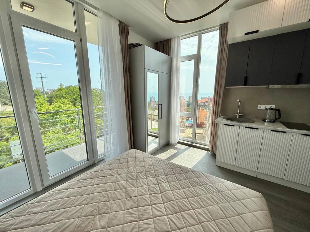 Сдаём в посуточную аренду квартиру с видом на море в Адлере! Размещение до 2-х человек (двуспальная кровать). В квартире есть абсолютно все для комфортного отдыха, а так же кондиционер, теплый пол и балкон, на территории дома бесплатная парковка и зона отдыха с тренажерами. Микрорайон Курортный городок всегда был востребован у отдыхающих, так как здесь есть абсолютно все для незабываемого отдыха: от бесплатных муниципальных пляжей до прогулочных парков с реликтовыми вековыми деревьями. Дом находится на пригорке, в пешей доступности море и современные оборудованные пляжи, а так же дельфинарий, океанариум, детские аттракционы, кафе и рестораны, сувенирные лавки и вся развлекательная инфраструктура для взрослых и детей. До центра Сочи, главной достопримечательности Морского порта, ЖД Вокзала Сочи без пробок на машине 20-30 мин. До аэропорта, ЖД Адлер, Олимпийского парка 15-20 мин. До Красной поляны – 30-40 мин. Хорошая транспортная доступность и есть станция ЖД, от которой на "Ласточке" вы сможете добраться быстро в Красную поляну, Олимпийский парк или в сторону центрального Сочи. УСЛОВИЯ: - Размещение до 2 человек - Без животных - Запрещается курить (возможно только на балконе) - Цены в календаре бронирования - Депозит 5000 р. (возврат при сдаче квартиры) ⏰ ЗАЕЗД: 14:00 ⏰ ВЫЕЗД: 12:00 ?Ранний заезд или поздний выезд-бесплатно, если есть свободные часы Забронируйте ваше идеальное место для отдыха уже сегодня, а мы с радостью разместим вас у нас!