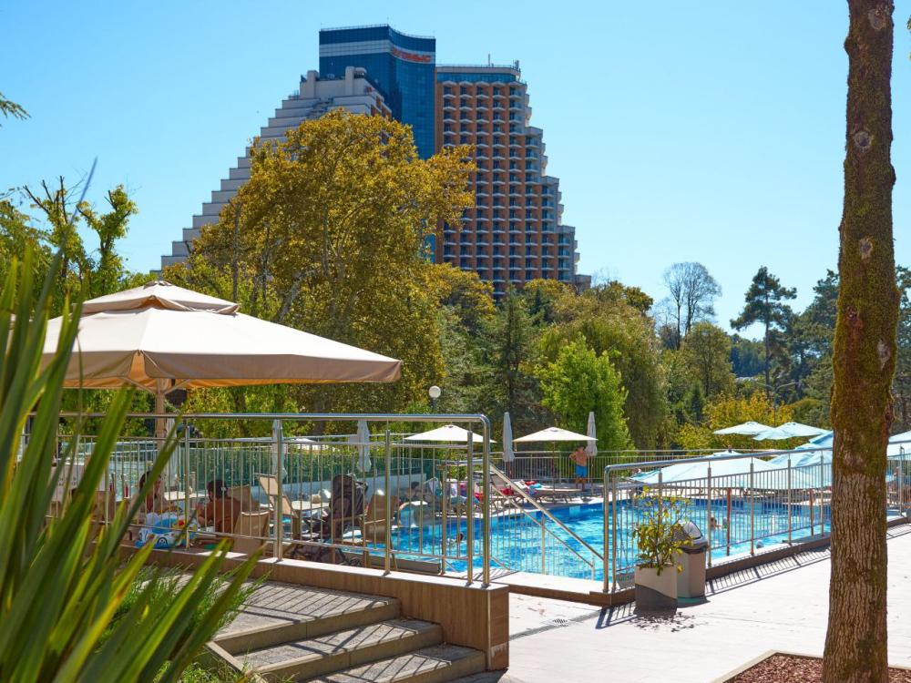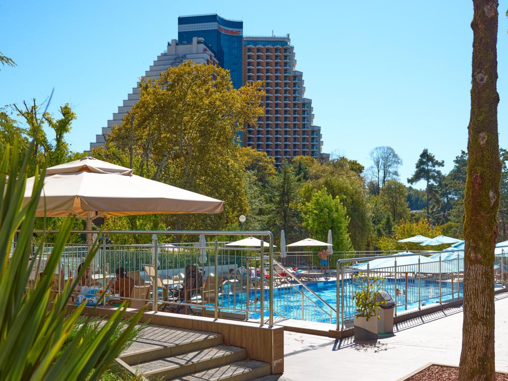 На территории отеля: Открытый и закрытый бассейны, тренажерный зал, сауна, хаммам и СПА, посетить которые возможно за ОТДЕЛЬНУЮ ПЛАТУ