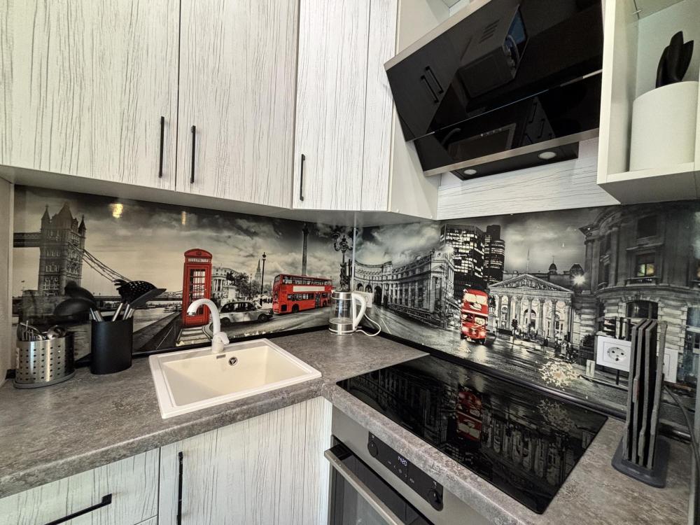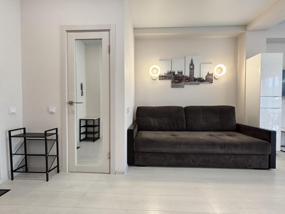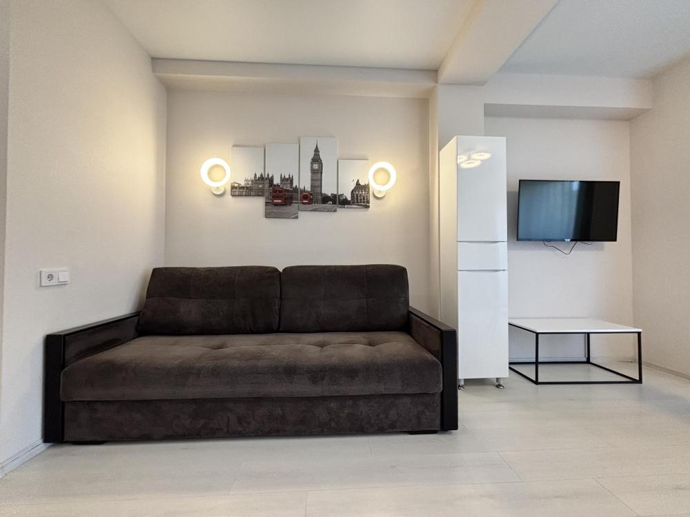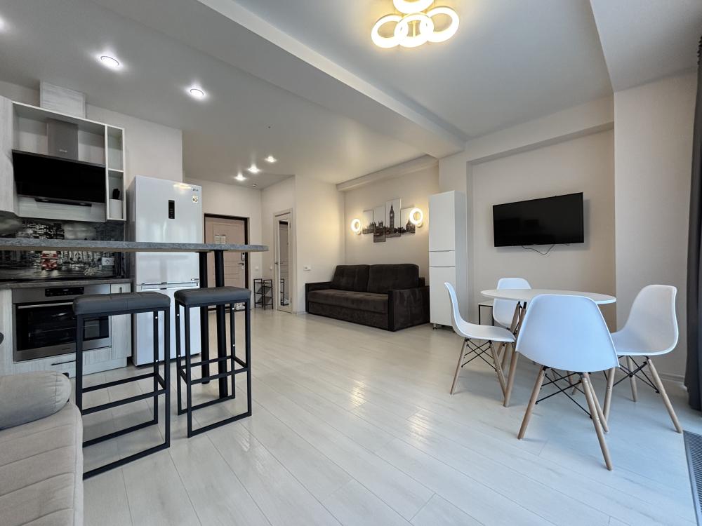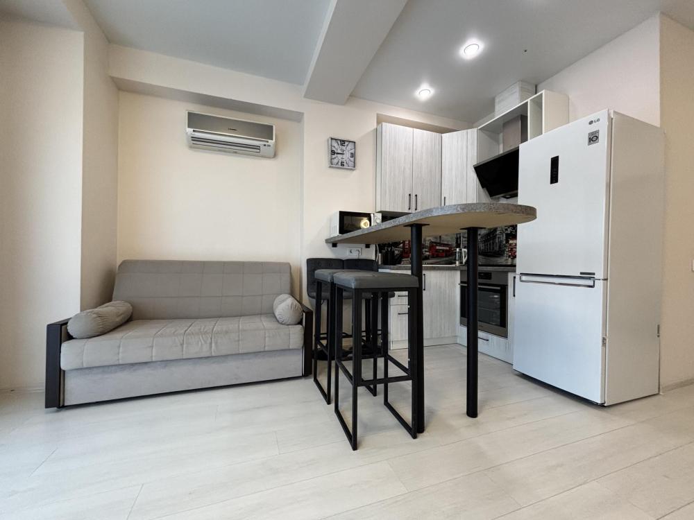 Симпатичная небольшая студия с современным ремонтом. Квартира оснащена всем необходимым для комфортного проживания и отдыха. Барная стойка. Кухня оснащена всей необходимой техникой для приготовления пищи. Установлен качественный кондиционер.