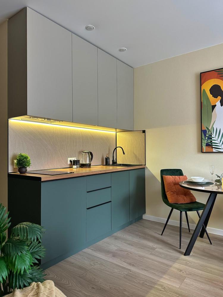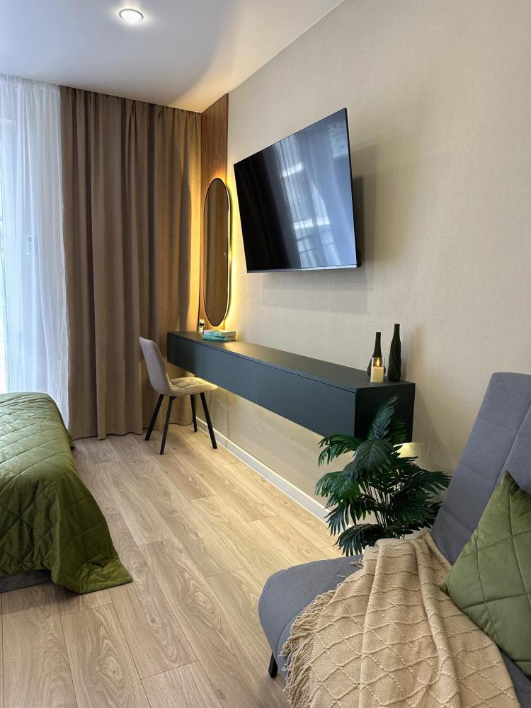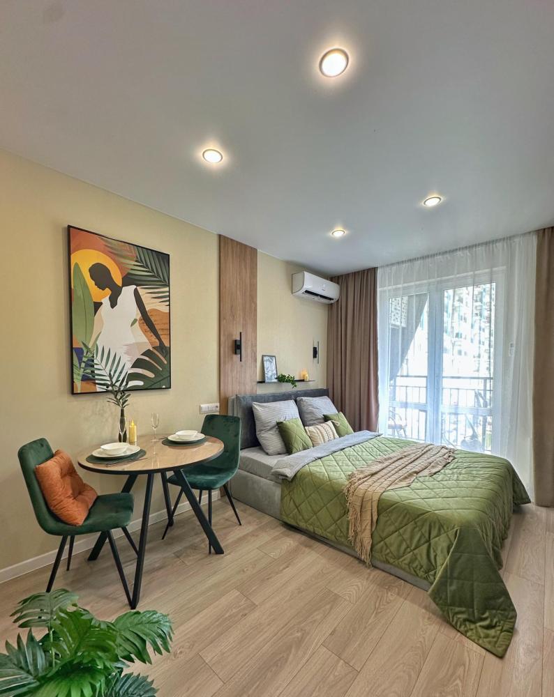 Современная и уютная студия в Кудепсте. Студия рассчитана на 3-х человек максимум (кровать + кресло-кровать). Большая кровать 160*200 с ортопедическим матрасом. Гигиенические принадлежности, фен, кондиционер. Телевизор со smart-tv, wi-fi.