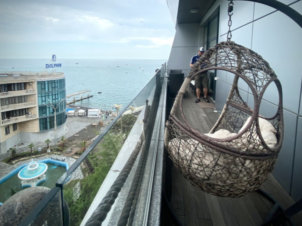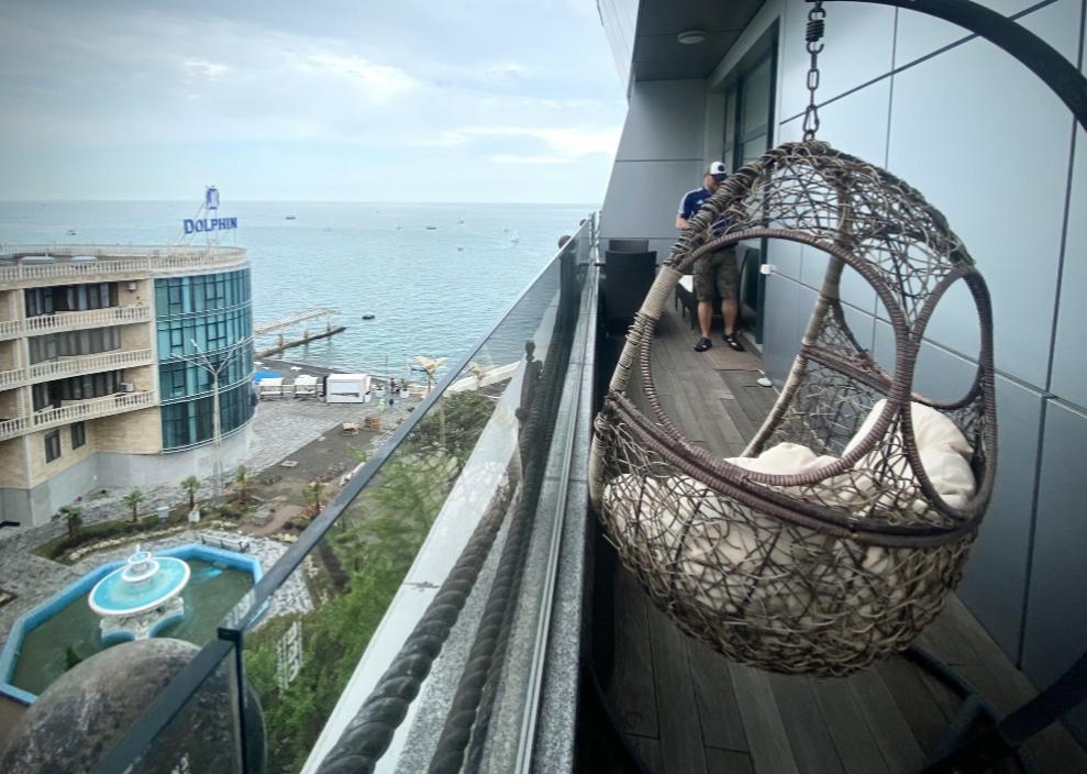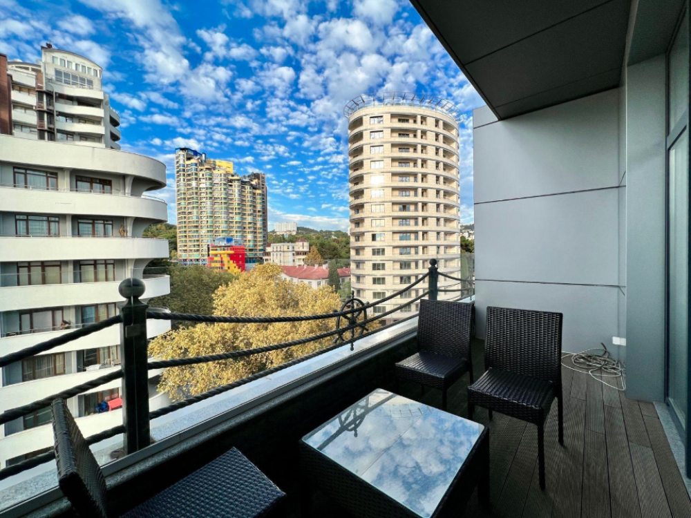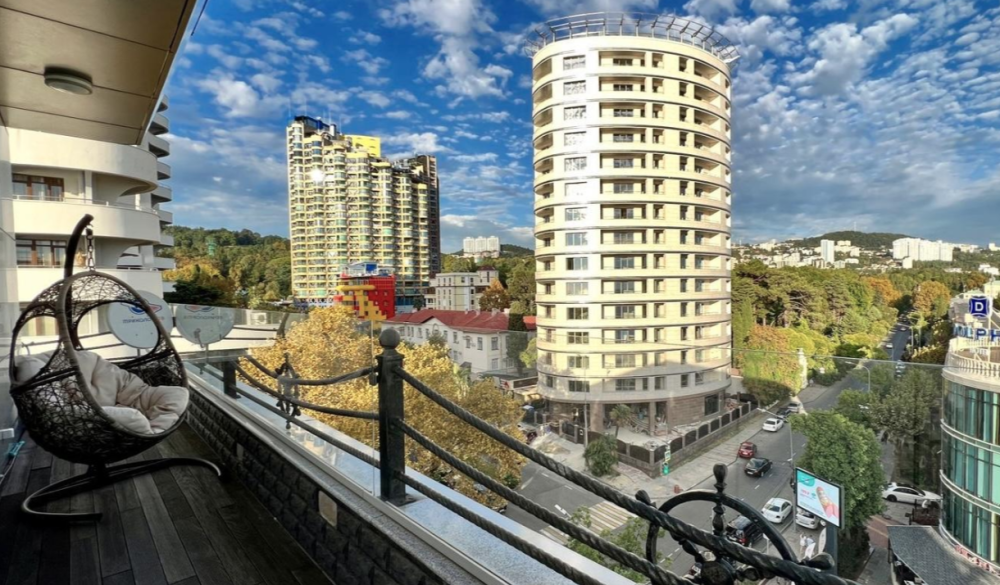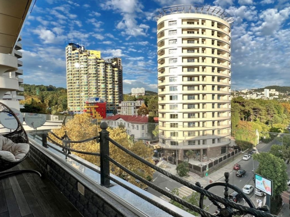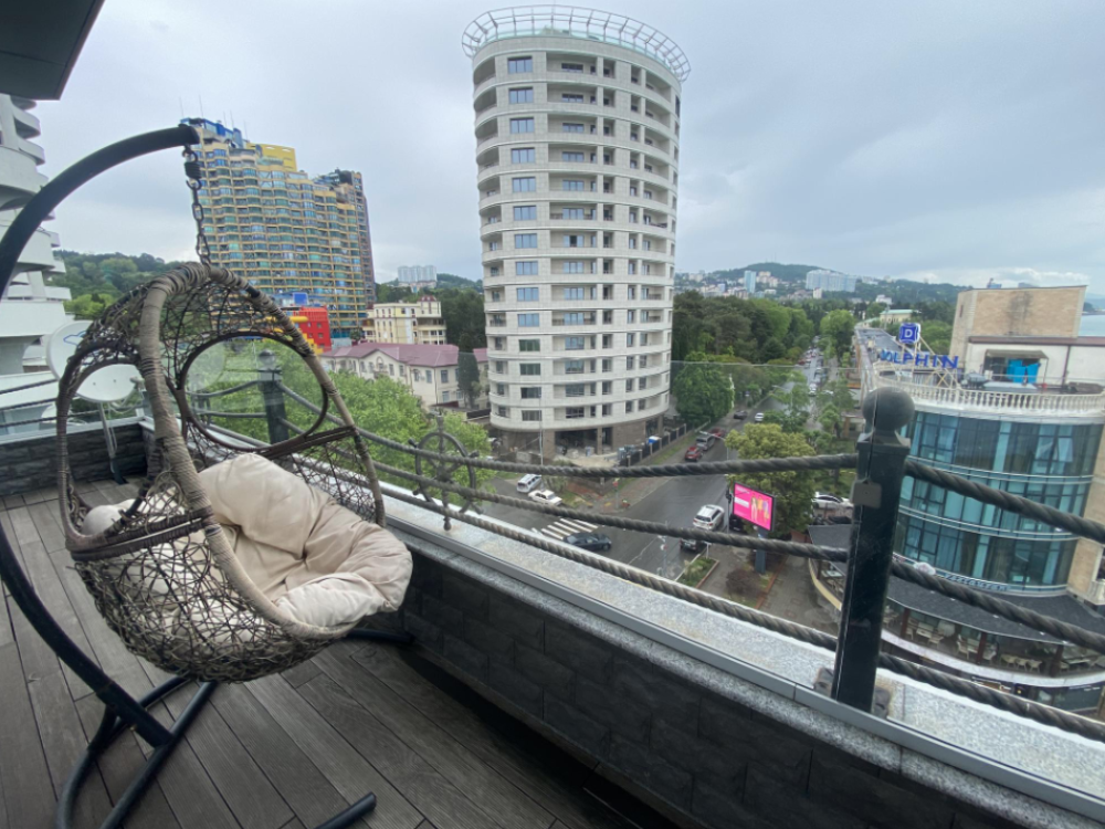 Апартаменты на Набережной» на самом берегу моря, рядом Пляж Цирк, Приморский пляж и Сочинский дендрарий На территории работает бесплатный Wi-Fi. Номер аппартаментов площадью 90 м2 уютно обставлен и оснащён необходимым. Фишка - с видом на море на огромных террасах можно отлично отдохнуть, есть кресло кокон диван, есть интернет К услугам трансфер