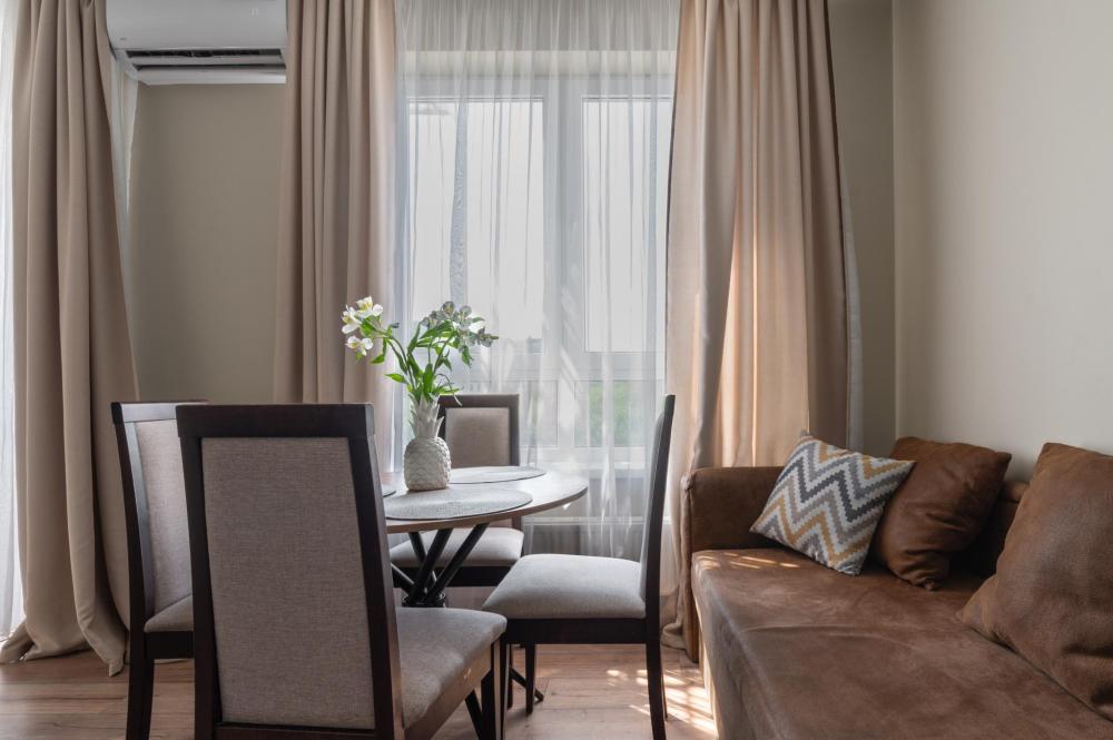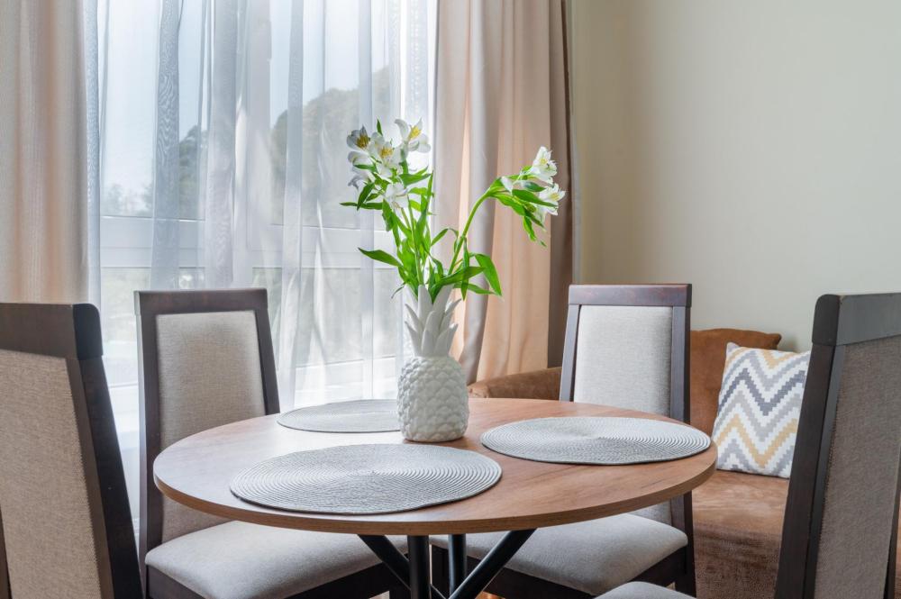 Квартира "Крем-брюле" — панорама моря и гор из окна вашей новой квартиры Представьте: вы открываете шторы — и перед вами одновременно раскинулось Чёрное море и кавказские склоны. В квартире свежо, светло, на кровати — белоснежное бельё и мягкие халаты, а на кухне уже ждёт всё для утреннего кофе. Это не отель. Это ваш личный уголок в самом живописном месте Сочи, где отдых начинается с первого взгляда из окна. Основные особенности: Размещение до 4 человек: удобная двуспальная кровать + диван-кровать Абсолютно новая квартира — без посторонних запахов и следов предыдущих гостей Панорамный вид на море и горы — из окон и балкона Халаты, свежее постельное бельё и мягкие полотенца — для ощущения заботы и уюта Бесконтактное заселение 24/7 — приезжайте в любое время суток Внутри — всё для комфорта большой компании: Полностью оборудованная кухня: холодильник, варочная панель, чайник, вся необходимая посуда и столовые приборы Ванная с душевой кабиной, гель, шампунь, ароматное мыло Стиральная машина, кондиционер, фен, утюг, сушилка для белья Smart TV с доступом к онлайн-кинотеатрам Высокоскоростной Wi-Fi В комплекте «Комфорт»: — чай, кофе, сахар — средства для стирки и мытья посуды — средства гигиены Всё необходимое — с первого часа, без походов в магазин. О районе: Квартира расположена в ЖК «Летний» — в экологически чистом районе Сочи, в живописной долине реки Кудепста, вдали от шумных улиц. Собственная набережная комплекса — прогулки у воды без толп туристов Зелёный массив вокруг — чистый воздух и утренняя тишина Современные детские и спортивные площадки — во дворе Магазины, кафе, аптеки — в шаговой доступности До ключевых точек — быстро и удобно: Железнодорожный вокзал — 15 минут на автомобиле Аэропорт и Олимпийский парк — 20 минут Курорт «Роза Хутор» — 60 минут на авто или электричке Обращаем внимание: мы не оказываем гостиничные услуги. Заселение — с 14:00, выселение — до 12:00. Раннее заселение или позднее выселение возможно при наличии технической возможности и предварительном согласовании. Размер задатка за всё время проживания — 3000 рублей. Курение и размещение с животными в квартире запрещены. При заселении необходимо согласиться с договором-офертой и предоставить фотографию паспорта. Квартира идеально подходит для семей, пар или компаний до 4 человек, ценящих панорамные виды, чистоту и возможность жить в своём ритме — с морем, горами и тишиной за окном.