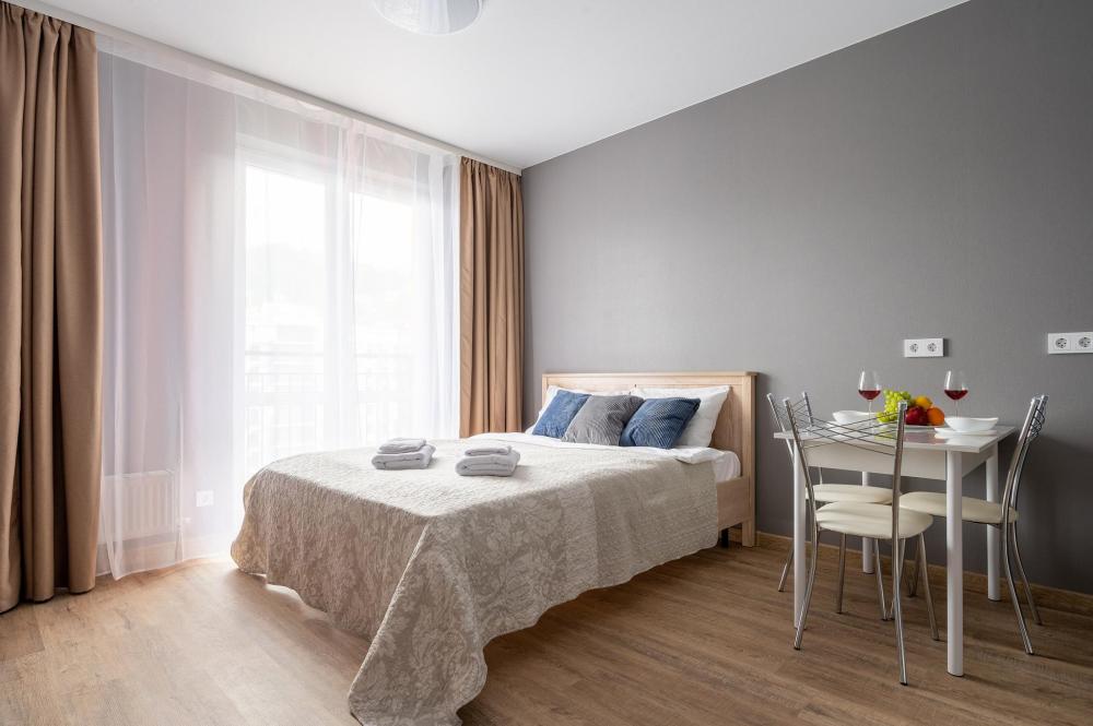 Квартира «Латте» — уют для троих с настоящей ванной и балконом в экологичной зоне Сочи Представьте: вы приезжаете в Сочи и оказываетесь в светлой, только отремонтированной квартире, где вас ждёт не душ, а настоящая ванна — идеальное место, чтобы снять усталость после дороги или прогулки. На кухне уже ждёт чай и кофе, за балконной дверью — тишина долины Кудепсты и свежий воздух. Всё продумано для спокойного, домашнего отдыха без суеты. Основные особенности: Размещение до 3 человек: удобная двуспальная кровать + кресло-кровать Абсолютно новая квартира — без посторонних запахов и следов предыдущих гостей Настоящая ванна — редкое преимущество для полноценного релакса Открытый балкон — место для утреннего кофе или вечернего чтения на свежем воздухе Бесконтактное заселение 24/7 — приезжайте в любое время суток Внутри — всё для повседневного комфорта: Свежее белоснежное постельное бельё и мягкие полотенца Полностью оборудованная кухня: холодильник, варочная панель, чайник, вся необходимая посуда и столовые приборы Ванная комната с ванной, гель, шампунь, ароматное мыло Кондиционер, стиральная машина, фен, утюг, сушилка для белья Smart TV с доступом к онлайн-кинотеатрам Высокоскоростной Wi-Fi В комплекте «Комфорт»: — чай, кофе, сахар — средства для стирки и мытья посуды — средства гигиены Всё необходимое — с первого часа, без походов в магазин. О районе: Квартира расположена в ЖК «Летний» — в живописной долине реки Кудепста, в экологически чистом районе Сочи, вдали от шумных улиц. Собственная набережная комплекса — прогулки у воды без толп туристов Зелёный массив вокруг — чистый воздух и утренняя тишина Современные детские и спортивные площадки — во дворе Магазины, кафе, аптеки — в шаговой доступности До ключевых точек — быстро и удобно: Железнодорожный вокзал — 15 минут на автомобиле Аэропорт и Олимпийский парк — 20 минут Курорт «Роза Хутор» — 60 минут на авто или электричке Обращаем внимание: мы не оказываем гостиничные услуги. Заселение — с 14:00, выселение — до 12:00. Раннее заселение или позднее выселение возможно при наличии технической возможности и предварительном согласовании. Размер задатка за всё время проживания — 3000 рублей. Курение и размещение с животными в квартире запрещены. При заселении необходимо согласиться с договором-офертой и предоставить фотографию паспорта. Квартира идеально подходит для пары с ребёнком, небольшой семьи или компании из трёх человек, ценящих чистоту, тишину и возможность отдыхать в своём ритме — с настоящей ванной, балконом и видом на природу.