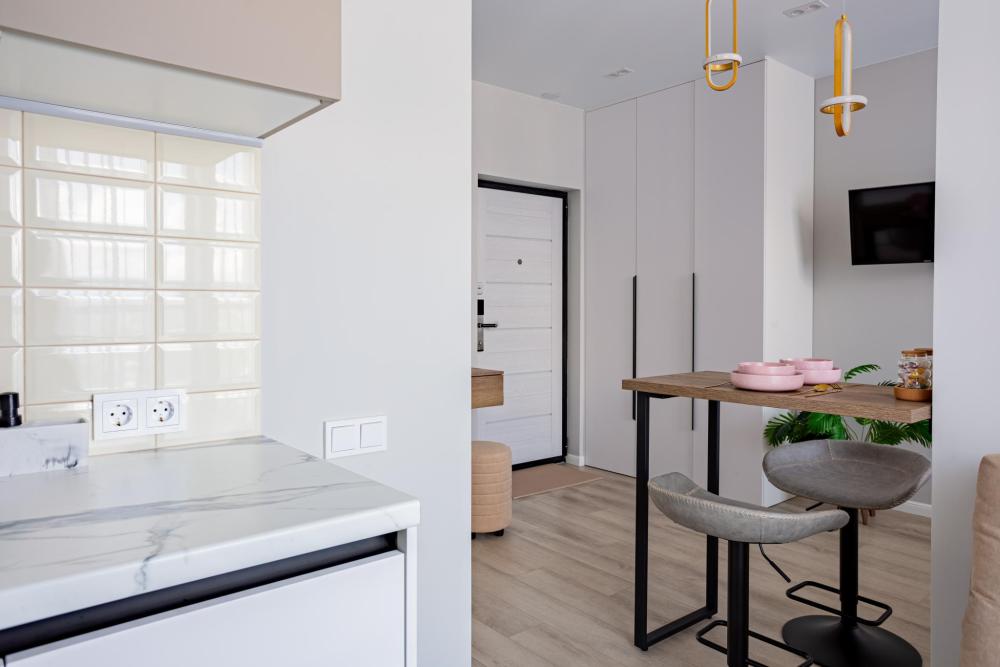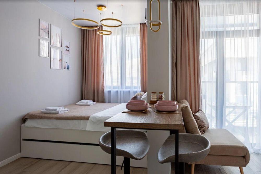 Дизайнерская и просторная студия в ЖК бизнес класса Кислород Для ценителей эстетики и комфорта ?Преимущества - Уютная студия с современным дизайнерским интерьером и чудесным видом на горы - Расположение в зелёной зоне с чистым воздухом и отличной экологией - Парковочные места рядом с домом - Закрытая охраняемая территория с видеонаблюдением - Интересные ландшафтные решения на территории ЖК, десткие площадки, уличная мебель, гамаки и зеленая территория. - В шаговой доступности: магазины, кафе, аптеки, остановки общественного транспорта Удобная транспортная доступность: до центра Сочи — 7 минут на авто, до моря — 10 минут ? В квартире Светлая и стильная студия с двуспальной кроватью , свежим постельным бельем и мягкими полотенцами Кухня с барной стойкой, варочной панелью, холодильником, микроволновкой, посудомойкой , чайником и всей необходимой посудой Ванная с душевой кабиной феном и средствами гигиены Wi-Fi и Smart TV для вашего комфорта Гладильная доска, утюг, сушилка и стиральная машина ? Расположение До моря — 1,4 км (примерно 20 минут пешком) Ближайшая автобусная остановка Ясногорская — 350 м (4 минуты пешком) Железнодорожный вокзал Сочи — 14 минут на автомобиле Кафе Кислород — в здании комплекса, другие кафе и магазины — в радиусе 500 м ?Правила проживания - Курение в квартире и на балконе запрещено - Проведение вечеринок не допускается - Проживание с животными невозможно - При заселении требуется паспорт РФ - Гости старше 23 лет - При бронировании менее, чем на 3 суток уборка оплачивается дополнительно - 2000р. - Залог за весь срок проживания: 5 000 рублей Мы всегда рады гостям и следим за чистотой и уютом в наших апартаментах. Добро пожаловать в Сочи!