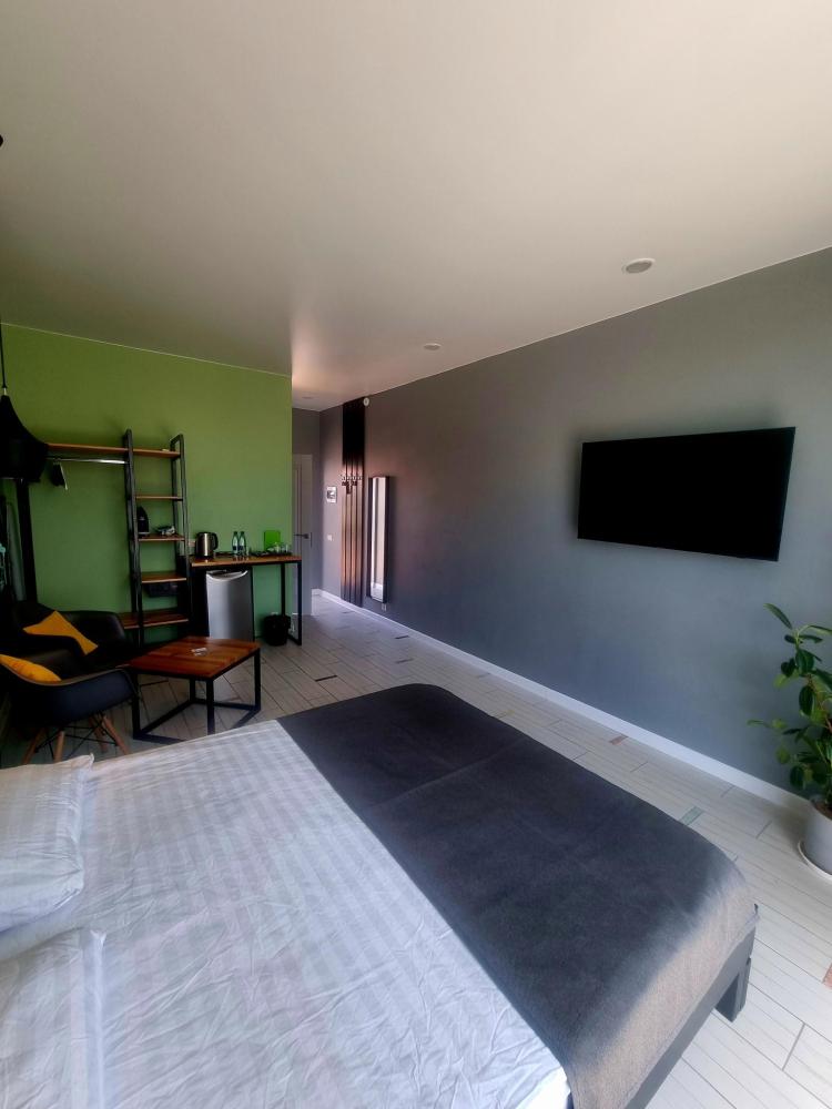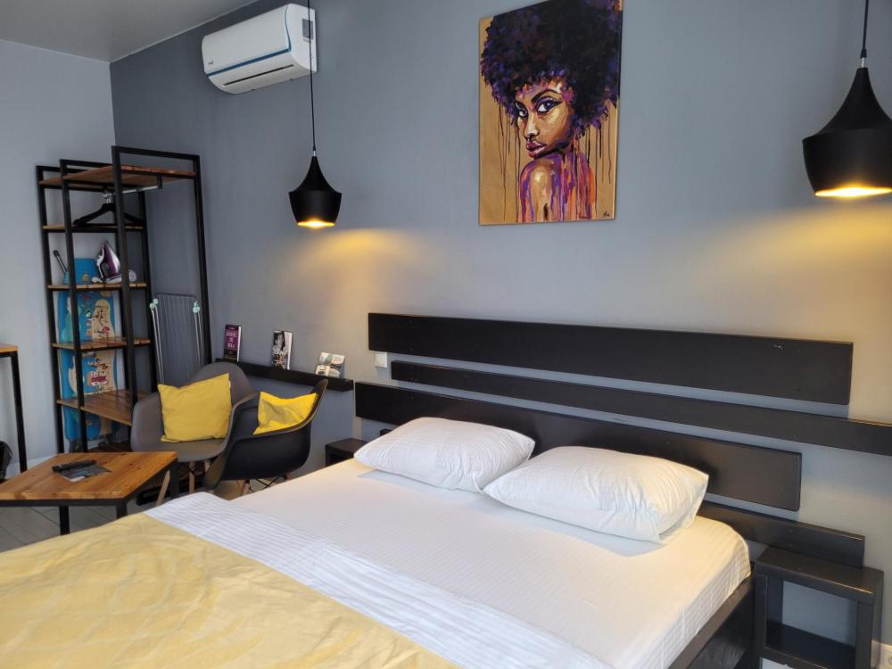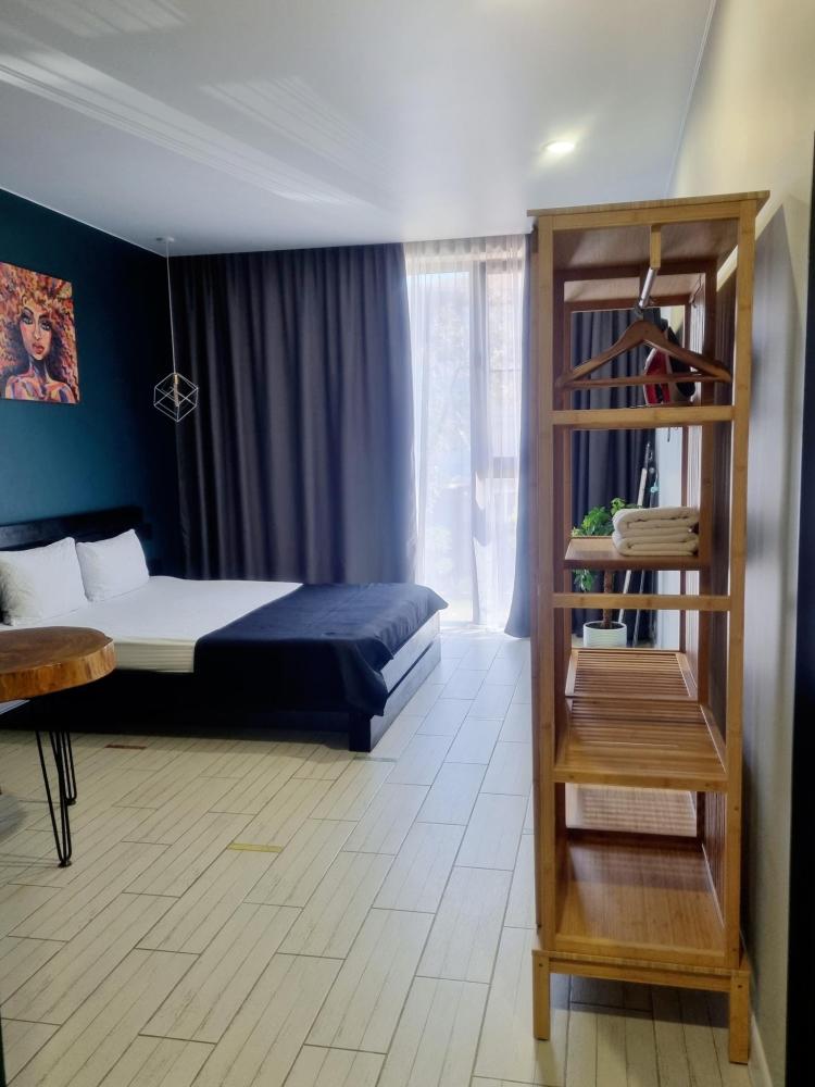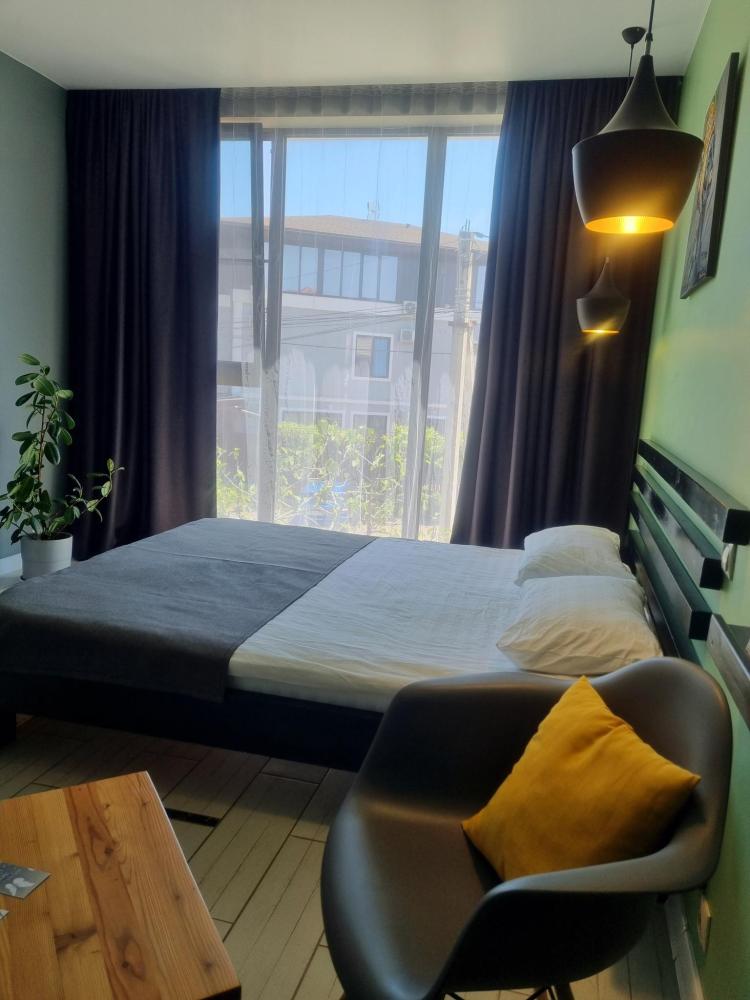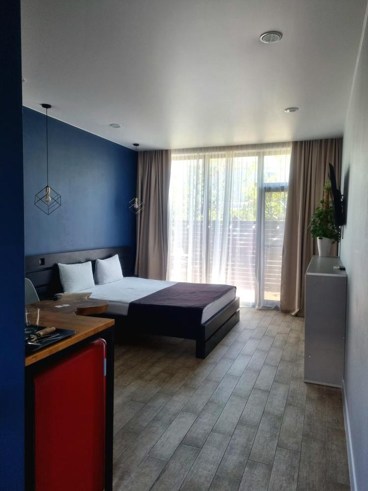 Комфортабельная комната площадью 25 м2 в 20 минутах от моря неспешным шагом. Новый современный ремонт в стиле Hi-tech. Теплые полы (в холодное время), точечное освещение, совмещенный санузел с душевой кабиной. Шторы блэкаут, двуспальная кровать ручной работы с ортопедическим матрасом, шкаф. Индивидуальный вход в студию! В студии есть всё для комфортного проживания: Холодильник, кондиционер, чайник, набор посуды, стол, приветственный чайный набор. Набор полотенец, индивидуальный душевой набор (мыло, зубной набор, шампунь, гель для душа). В студии фен, утюг, сушилка для белья, гладильная доска, ЖК-телевизор с функцией смарт ТВ. Высокоскоростной Wi-fi
