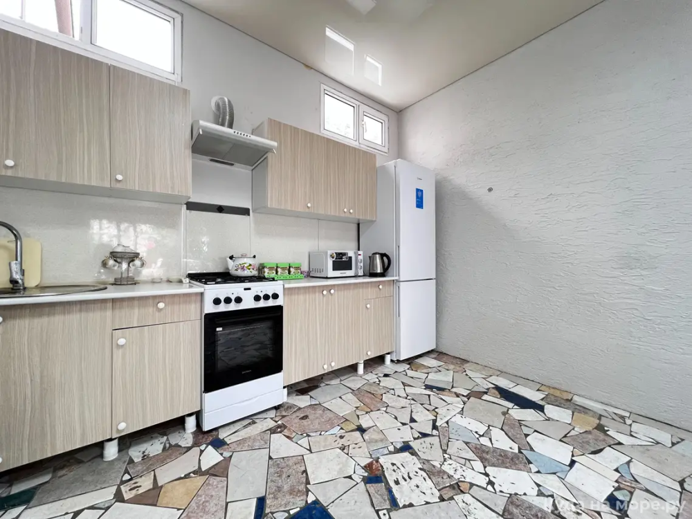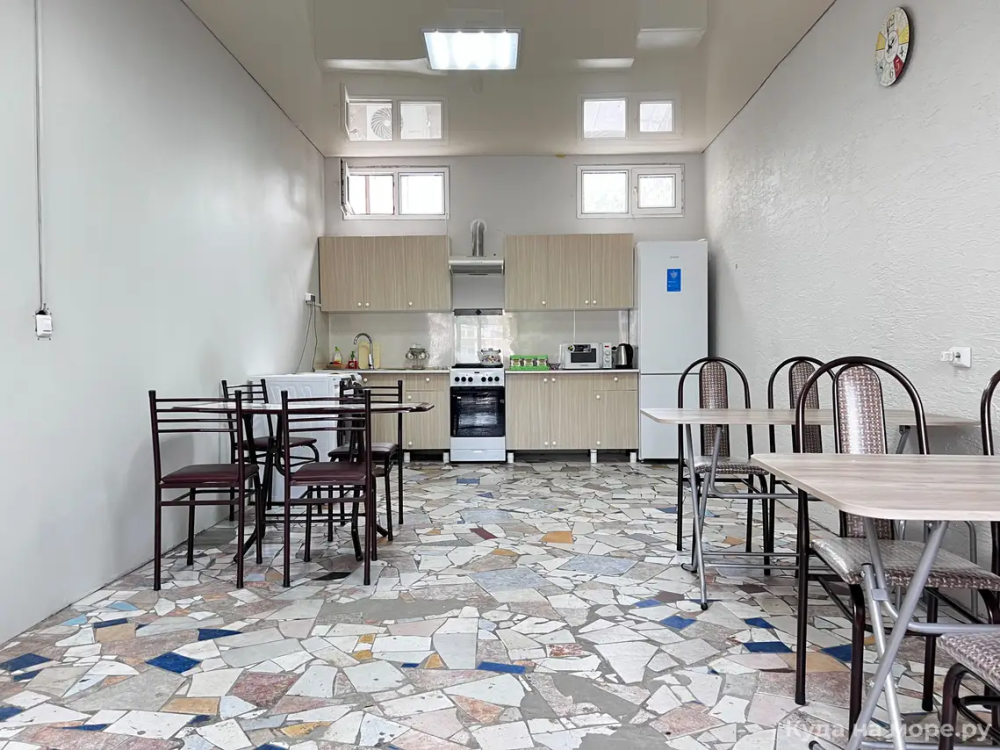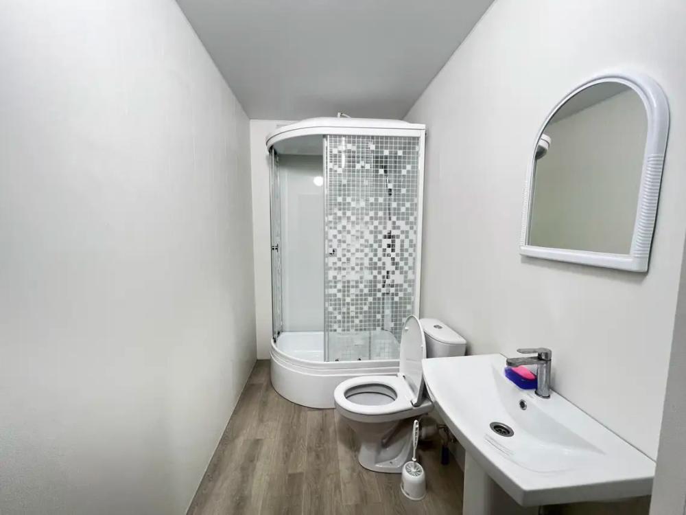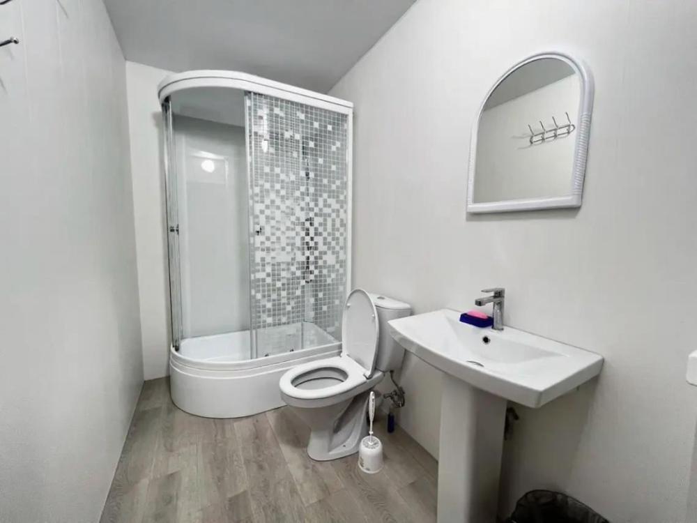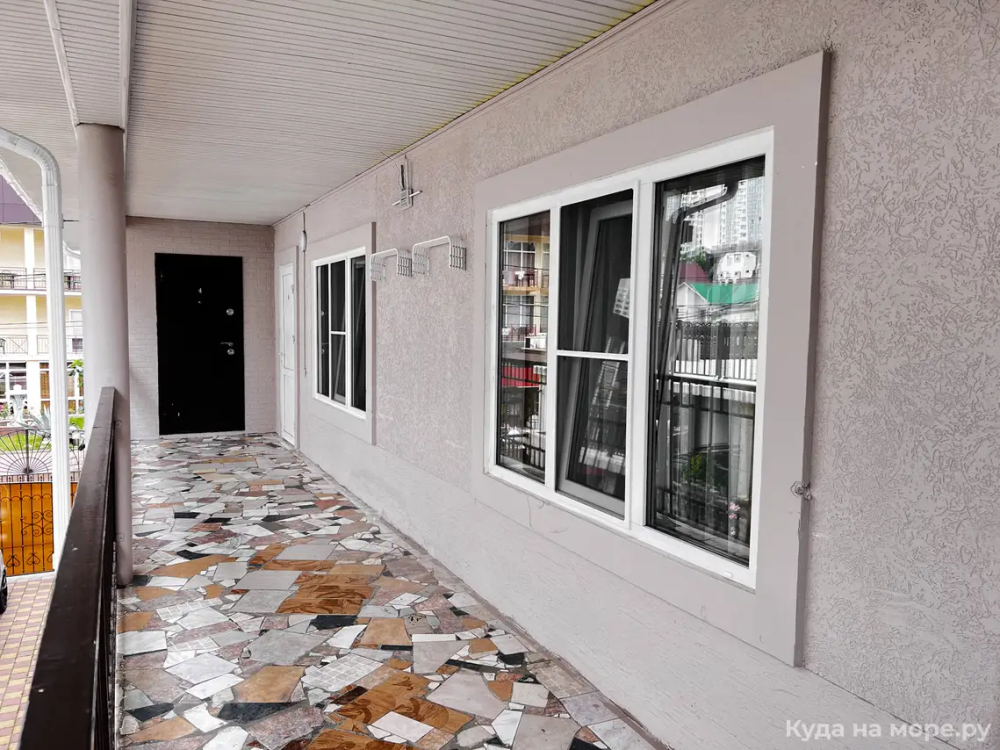 Пятиместный номер с двуспальной кроватью, раскладным диваном и двухярусной кроватью. Санузел, туалетные принадлежности в номере. Кондиционер, холодильник, ЖК телевизор, шкаф, тумбы.