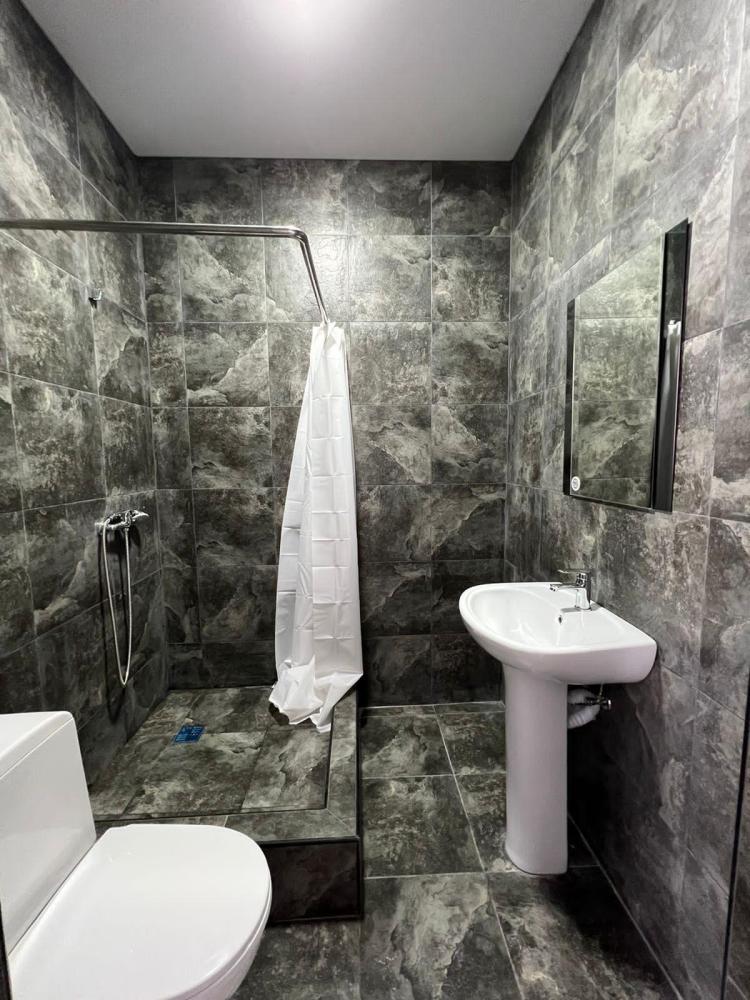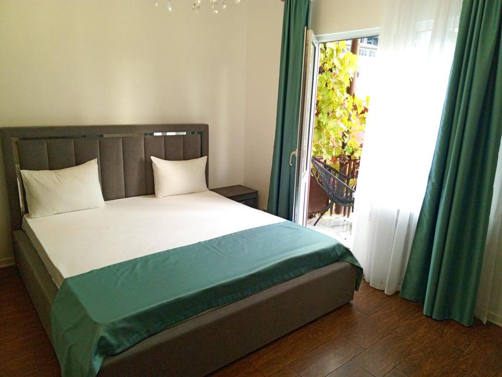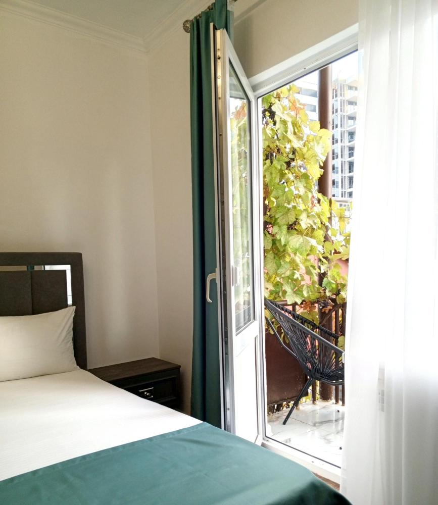 Двухместная комната стандарт с одной двуспальной кроватью с балконом, площадью 15 кв.м. Оснащение: двухспальная кровать, холодильник, телевизор, кондиционер, чайник, собственный санузел, фен. Комнаты данной категории расположены на 3 и 4 этаже. В общем доступе утюг, гладильная доска сушилки для одежды, микроволновая печь. Уборка и смена белья, полотенец производится на 5-ый день проживания.