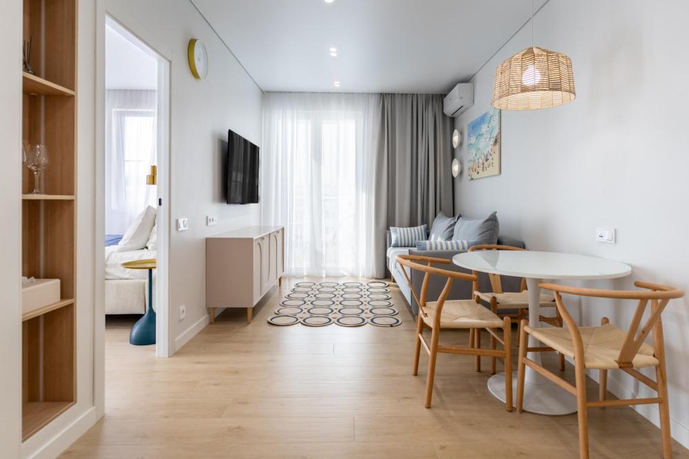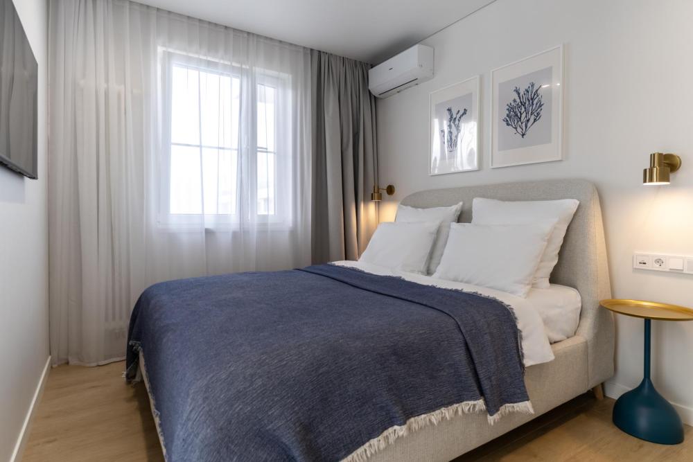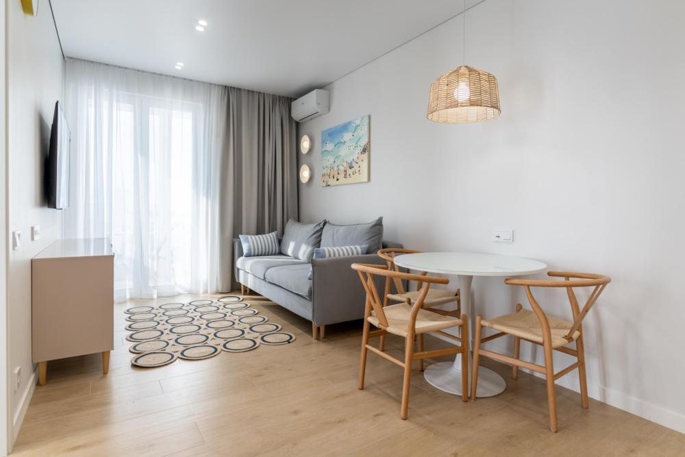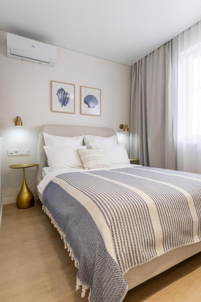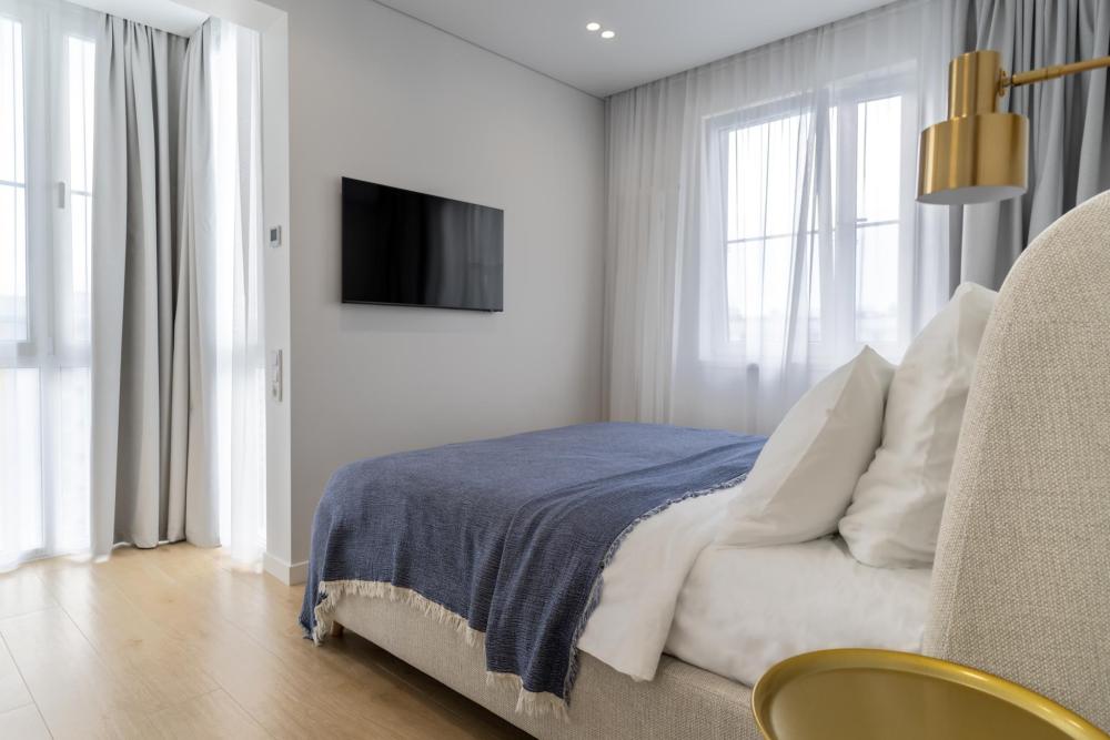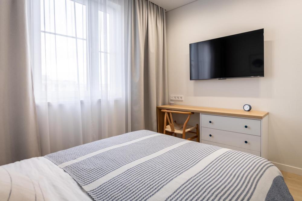 В квартире предусмотрено много розеток, в том числе usb- розетки и Яндекс Алиса. В каждой комнате телевизоры с большой диагональю, кондиционеры, электрические теплые полы, радиаторы отопления,поддерживающие комфортную для гостей температуру, москитные сетки.
