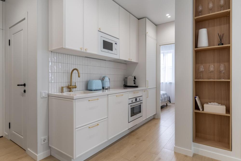 Кухня оборудована всем необходимым: индукционной плитой, кофемашиной nespresso, тостером, электрическим чайником, микроволновой печью, посудомоечной машиной 60 см, холодильником, духовым шкафом, посудой, фильтром для воды BWT. Все есть для приготовления любых блюд, что позволит почувствовать себя как дома.