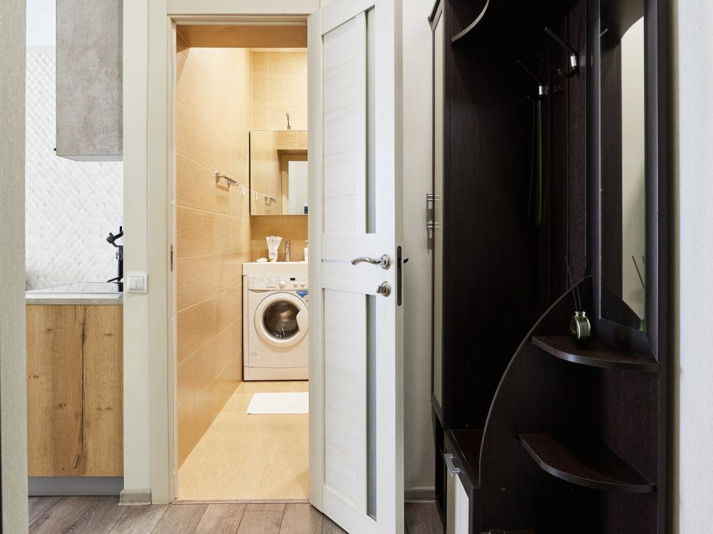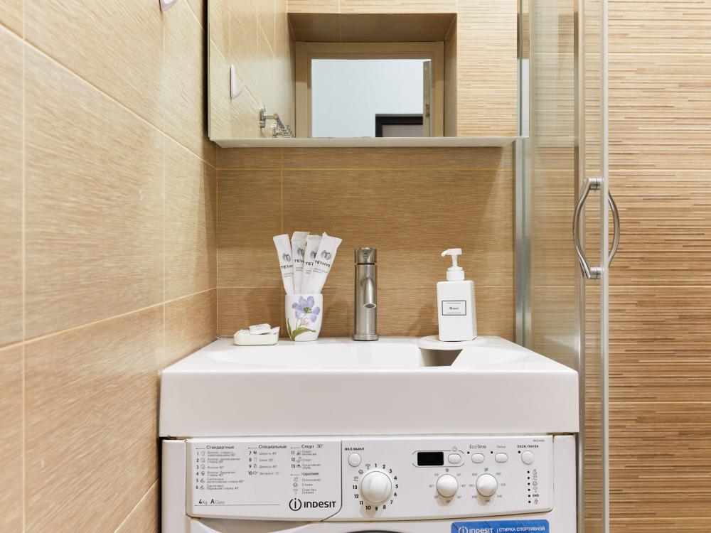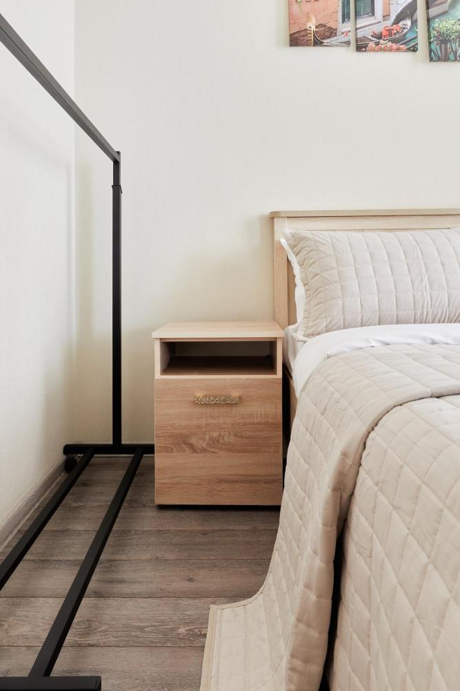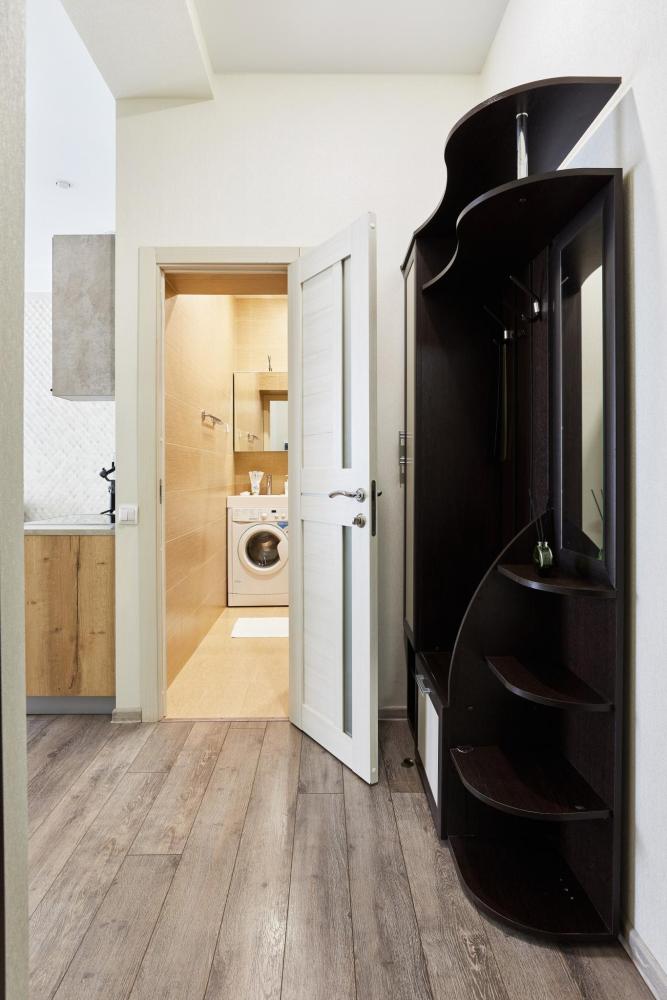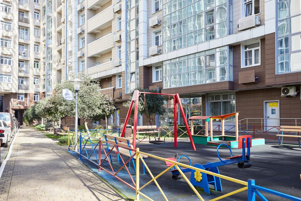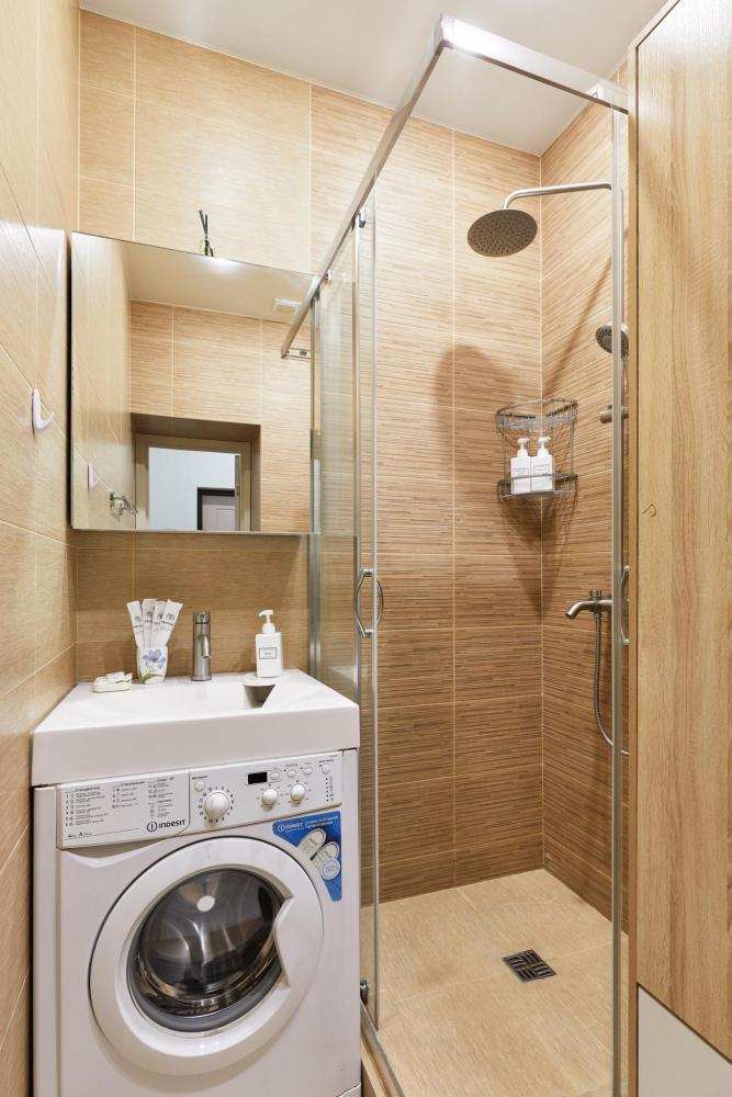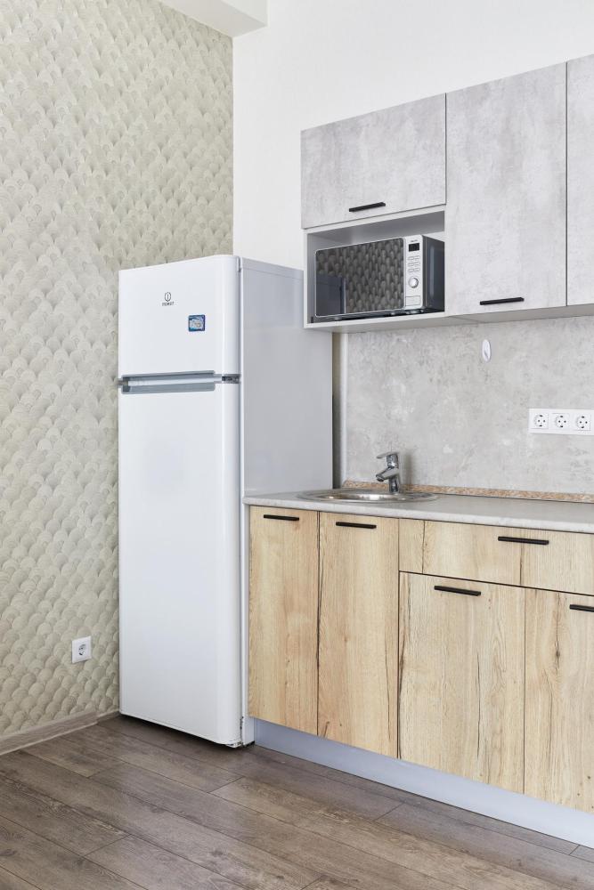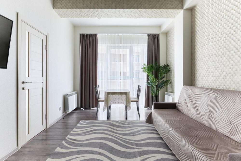 В квартире отдельная изолированная спальня с выходом на балкон и гостиная с зоной кухни. Для сна имеются двуспальная кровать (ширина 1,4м) и раскладной двуспальный диван. Имеется дополнительное спальное место - раскладушка. В зоне кухни электрическая варочная панель, духовой шкаф, микроволновая печь, чайник, холодильник и вся необходимая посуда. А также для вашего удобства кондиционер, стиральная машина, фен, утюг, гладильная доска, в ванной комнате тропический душ , 2 телевизора со SMART TV, WiFi. С балкона открывается боковой вид на море.