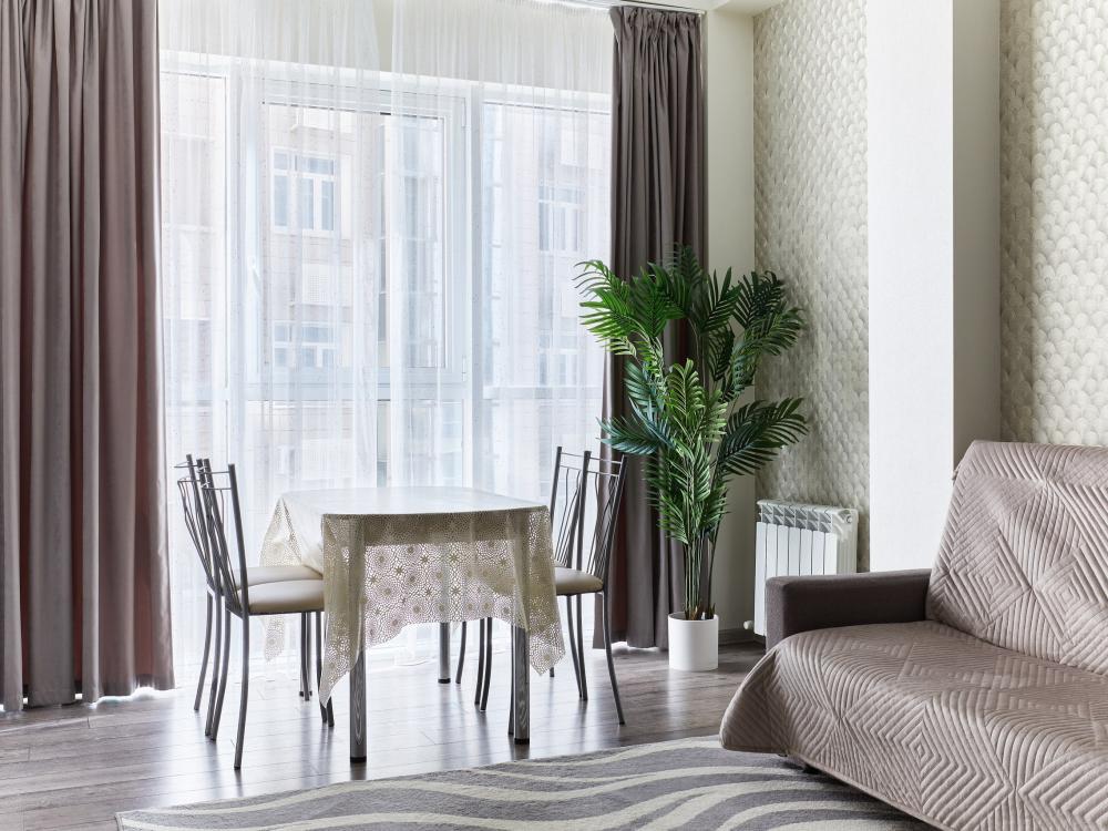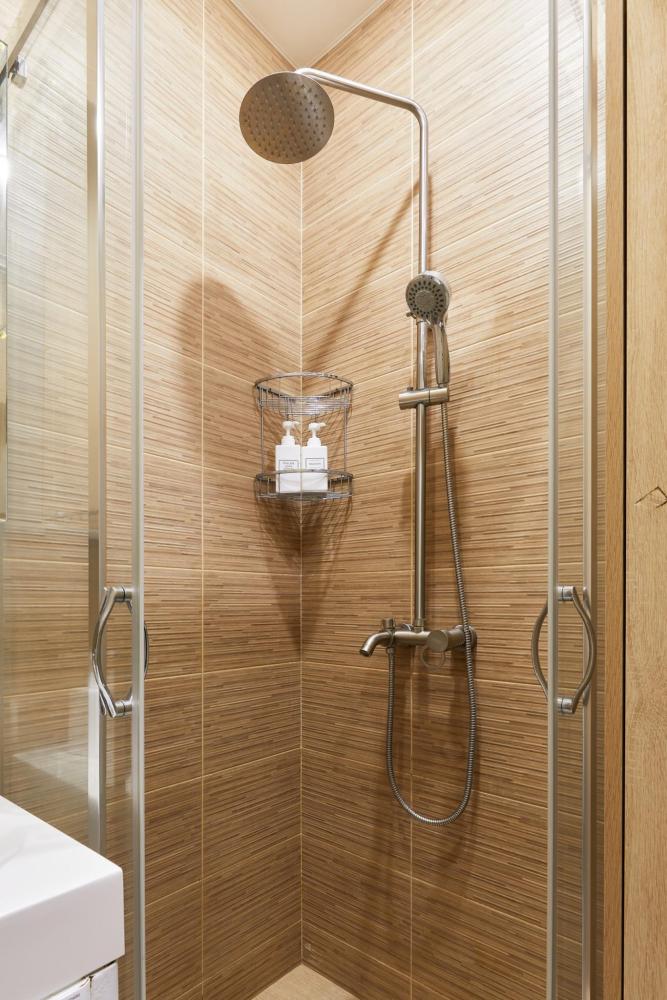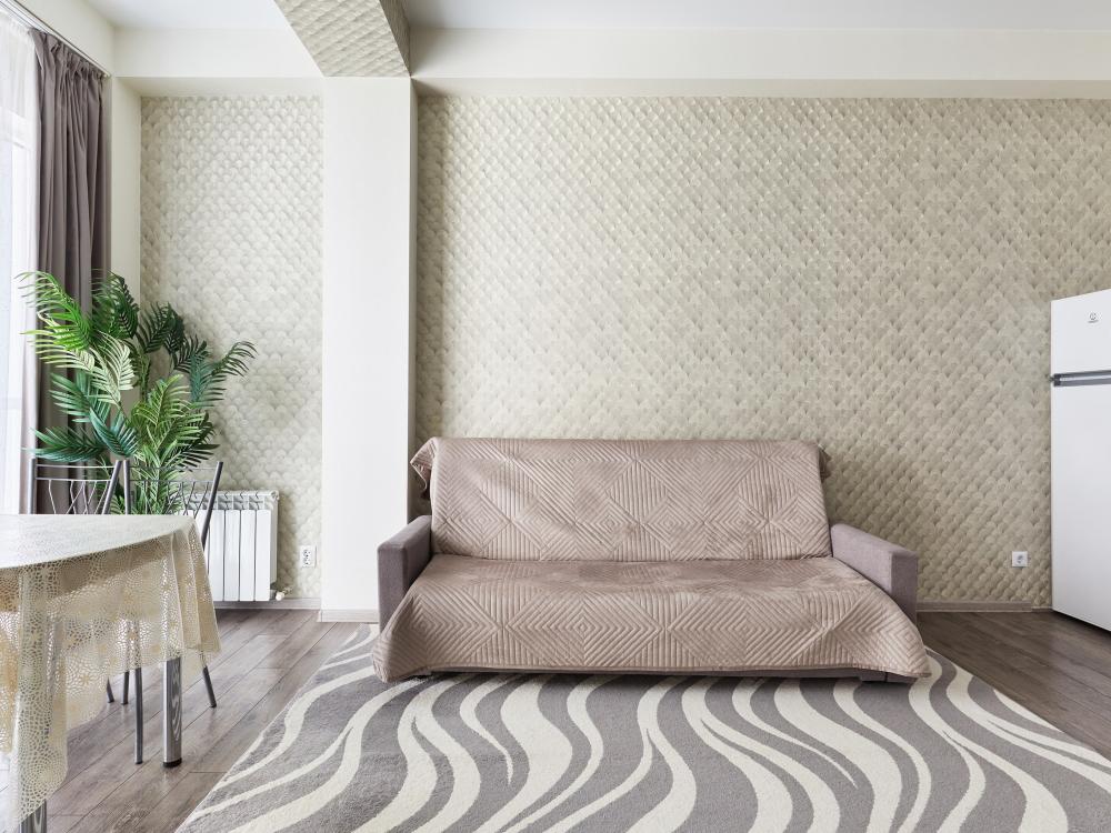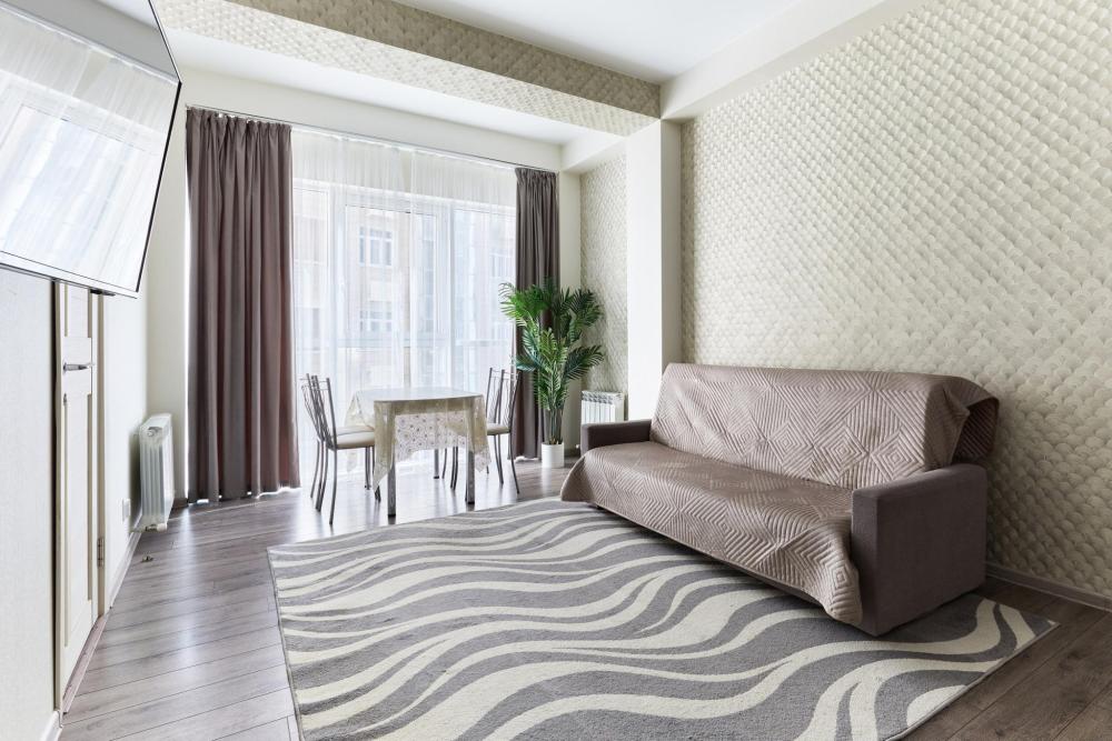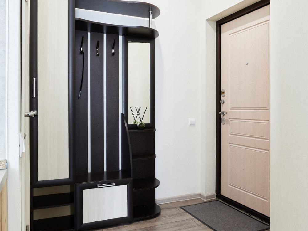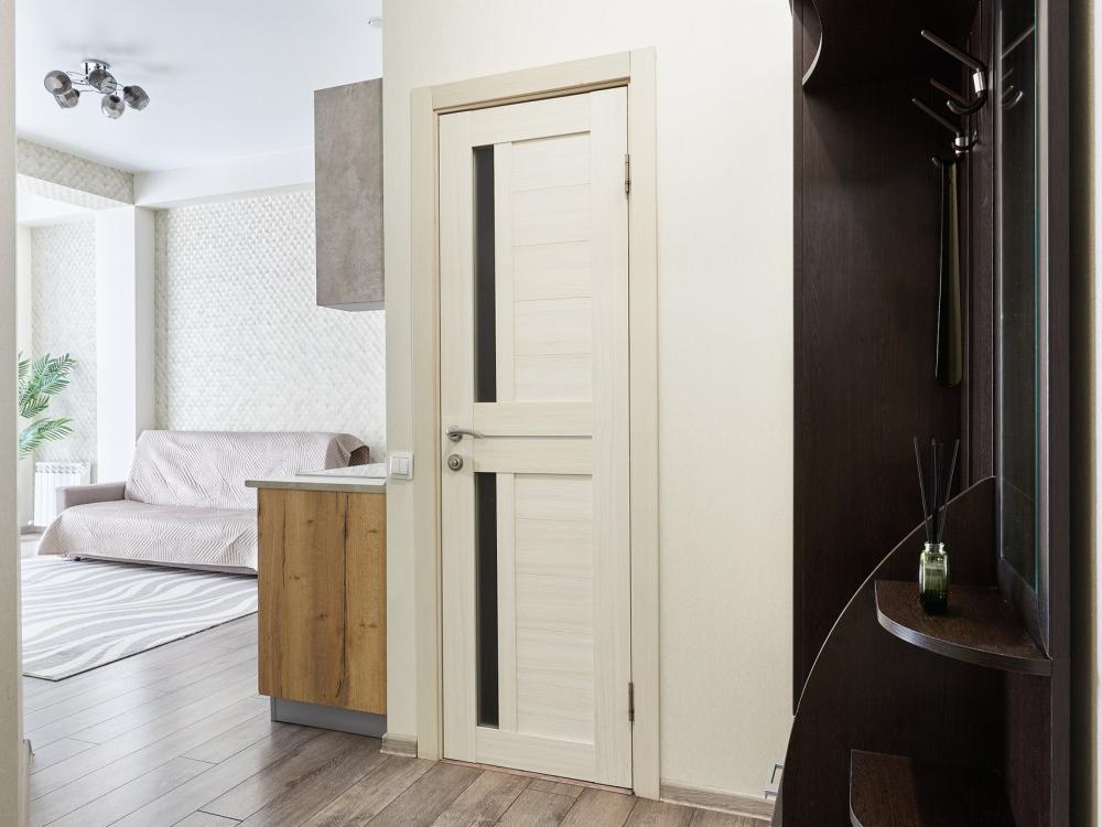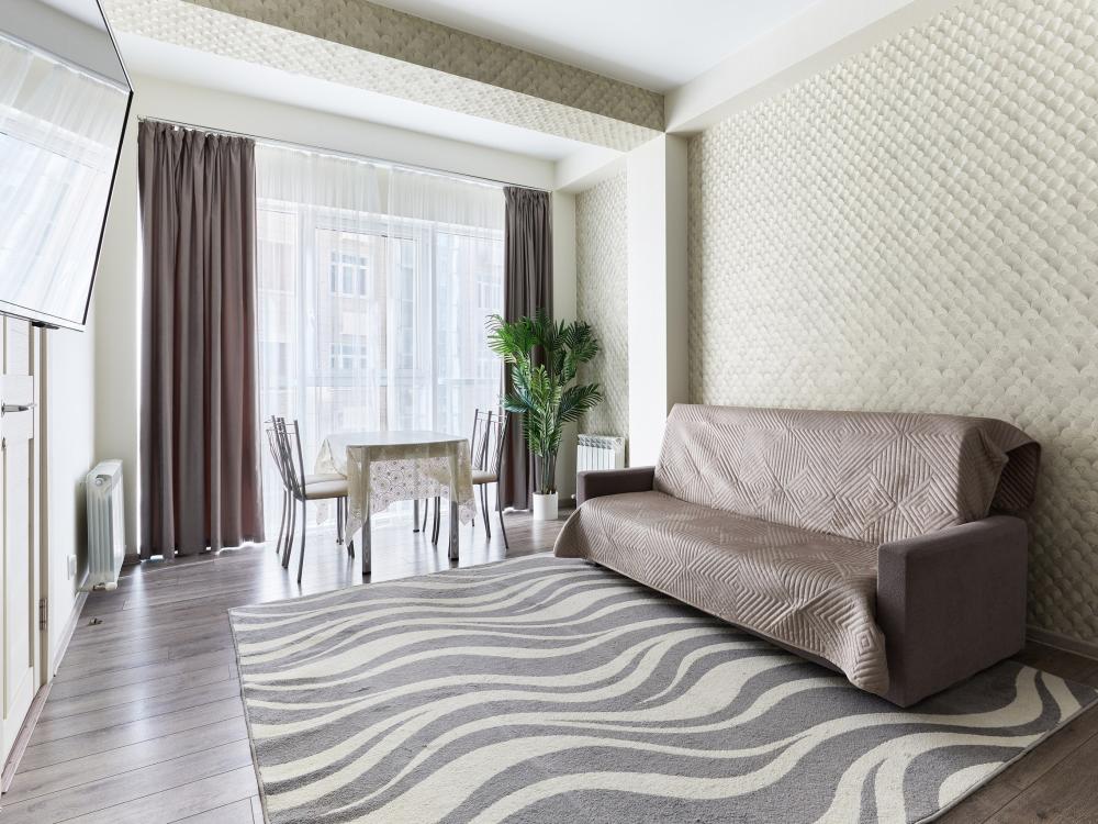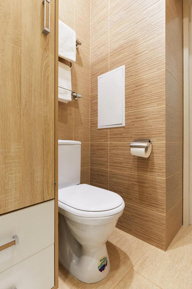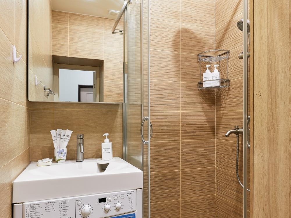 В квартире отдельная изолированная спальня с выходом на балкон и гостиная с зоной кухни. Для сна имеются двуспальная кровать (ширина 1,4м) и раскладной двуспальный диван. Имеется дополнительное спальное место - раскладушка. В зоне кухни электрическая варочная панель, духовой шкаф, микроволновая печь, чайник, холодильник и вся необходимая посуда. А также для вашего удобства кондиционер, стиральная машина, фен, утюг, гладильная доска, в ванной комнате тропический душ , 2 телевизора со SMART TV, WiFi. С балкона открывается боковой вид на море.