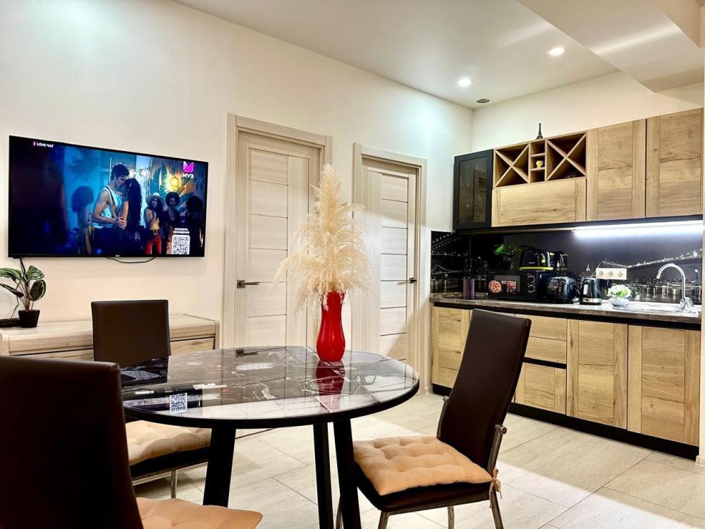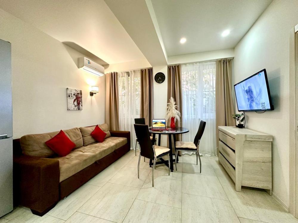 Уютная Дизайнерская Двухкомнатная ( евротрёшка) квартира. -?900 м до лучших пляжей «Sochifornia Beach» и пляж «Мандарин» и песчаного пляжа «Чайка» 1,5 км Квартира подходит как для пары, так и семьи с детьми (изолированная комната для взрослых и изолированная детская с двухъярусной кроватью и местом для няни или бабушки ). - первый этаж с пандусом, что очень удобно с детской коляской, и людям с ограниченными возможностями??- Кухня оснащена всей необходимой техникой В шаговой доступности: -?Много столовых , кафе и ресторанов - Торгово-развлекательный центр «Мандарин с детской площадкой и аква-зоной -?Олимпийский парк, -?набережная, -?️Олимпийский Морской порт 1,5 км -?дендрологический парк «Южные культуры» 300м -? русский «Диснейленд» Сочи Парк 3км - ✈️ Аэропорт 4 км - ?️горнолыжный курорт Красной Поляны 35 км граница с Абхазией 6 км ⏰Время заезда с 14:00⏰Время выезда до 14:00❗️ с животными не заселяем ☝️❗️Депозит 5000 рублей (берётся при заезде за сохранность имущества, возвращается после проверки и уборки апартаментов , переводом на карту ) ?? успеете забронировать , работаем с душой