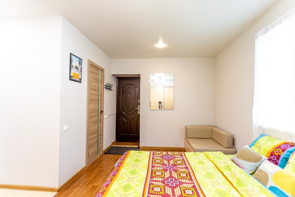 Три спальных места, размещение не более 2-х взрослых с ребёнком. Квартира оснащена всем необходимым для проживания: посуда, плита , микроволновка, чайник, холодильник, WI-FI, телевизор, кондиционер, утюг, фен, стиральная машина, сушилка, большой и вместительный шкаф-купэ, двуспальный диван-кровать с ортопедическим основанием и удобным матрасом, а также раскладное кресло-кровать.