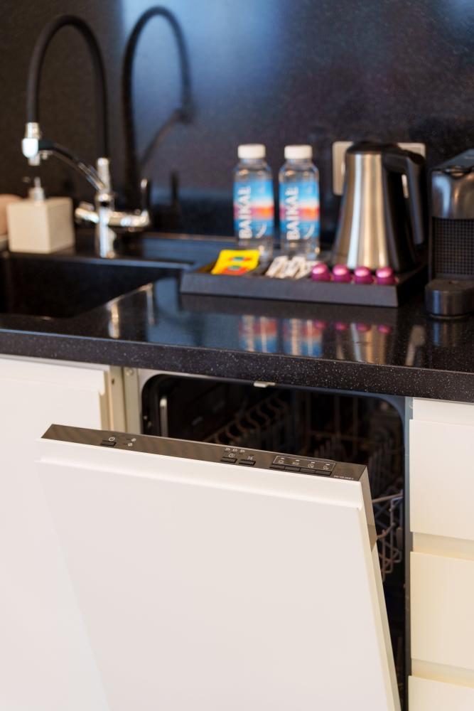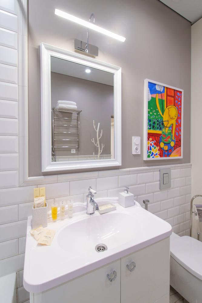 В просторных двухкомнатных апартаментах площадью 50 кв.м., с комфортом разместится до 4 гостей. В номере есть балкон с видом на город. В спальне двуспальная кровать, в гостинной раскладной диван с ортопедическим основанием. Много систем хранения для размещения личных вещей гостей. Полноценная кухня, большой холодильник, посудомоечная машина, микроволновая печь, индукционная плита и посуда для приготовления и сервировки. В апартаментах установлена ванна, имеется стиральная машина.