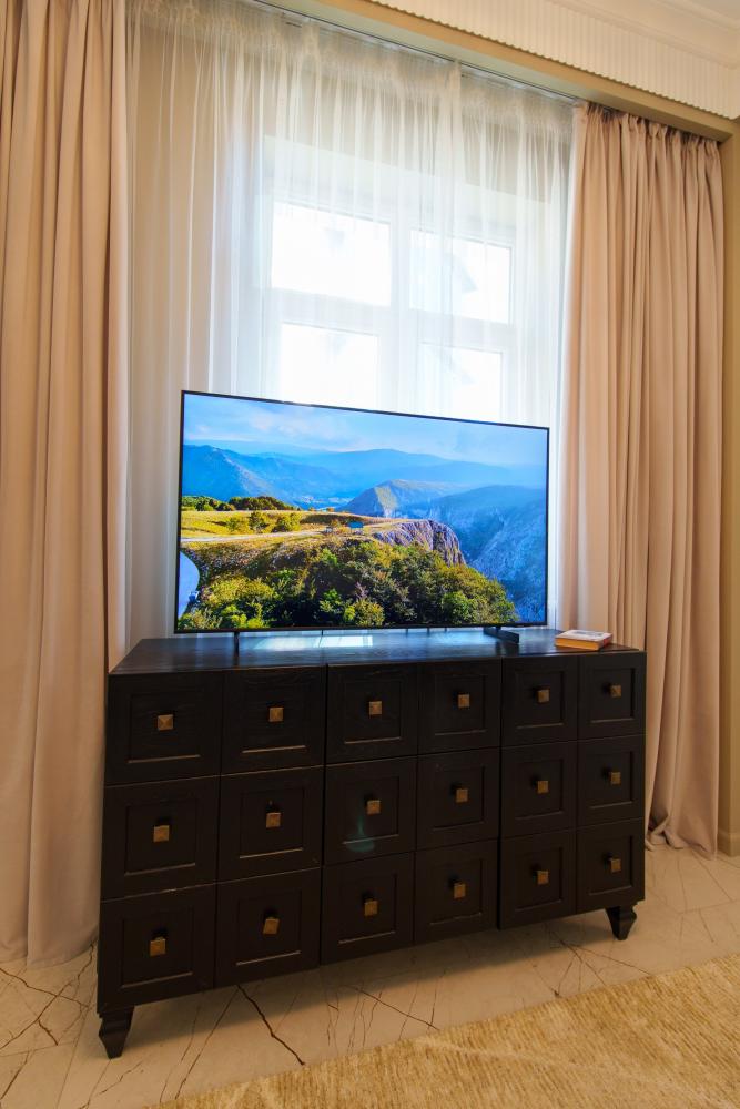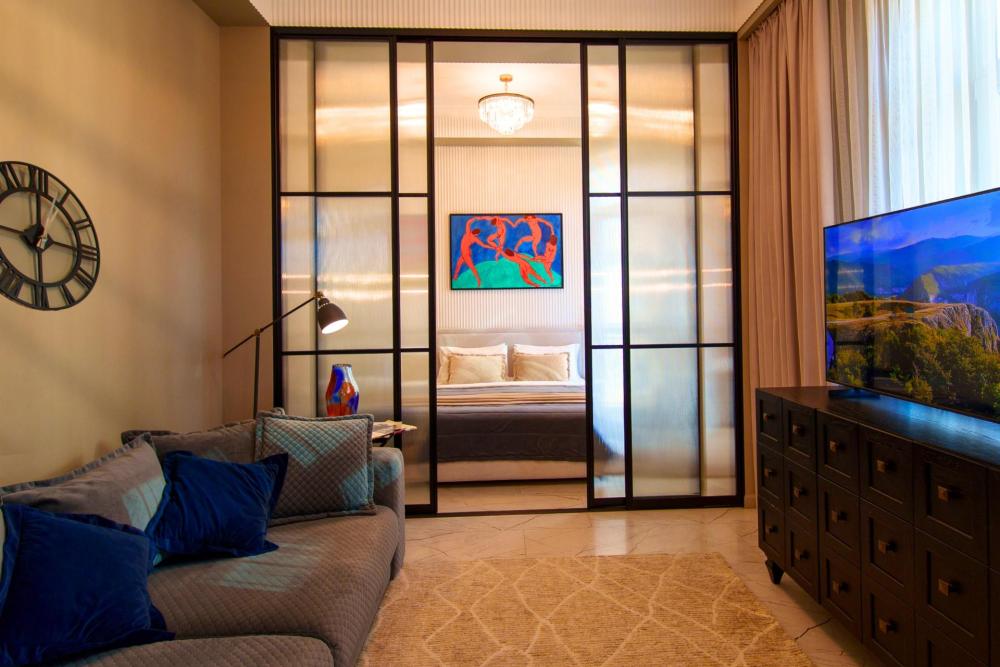 В просторном апартаменте площадью 45 кв.м. с эксклюзивным дизайном с комфортом разместятся до 4 гостей. В номере есть балкон с чудесным видом на город. Главная особенность апартаментов - центральное расположение — шаговая доступность до пляжа, парков, кафе и основных достопримечательностей города. Вас ждут двуспальная кровать King Size и большой раскладной диван с ортопедическим основанием, много систем хранения для размещения личных вещей гостей. Полностью оборудованная кухня - большой холодильник, посудомоечная машина, микроволновая печь, вся необходимая посуда - позволит готовить любимые блюда и наслаждаться домашним уютом! Для удобства проживания апартаменты оснащены стиральной машинкой и гладильными принадлежностями. Бесплатный высокоскоростной Wi-Fi дает возможность и отдохнуть, и поработать при необходимости. Ванная комната оснащена ванной и снабжена всеми необходимыми косметическими средствами. Рады семьям с детьми - по запросу предоставляется детская кроватка для малышей. Возможно бесконтактное заселение.