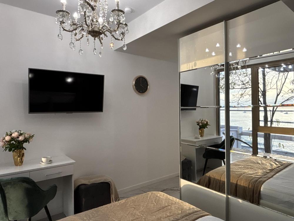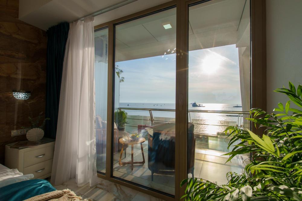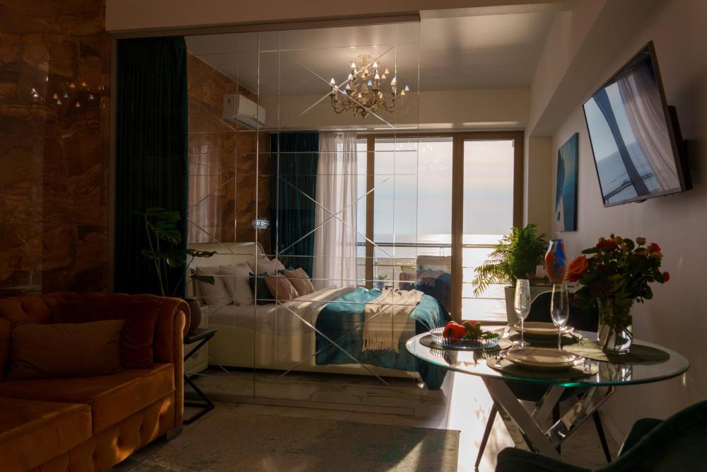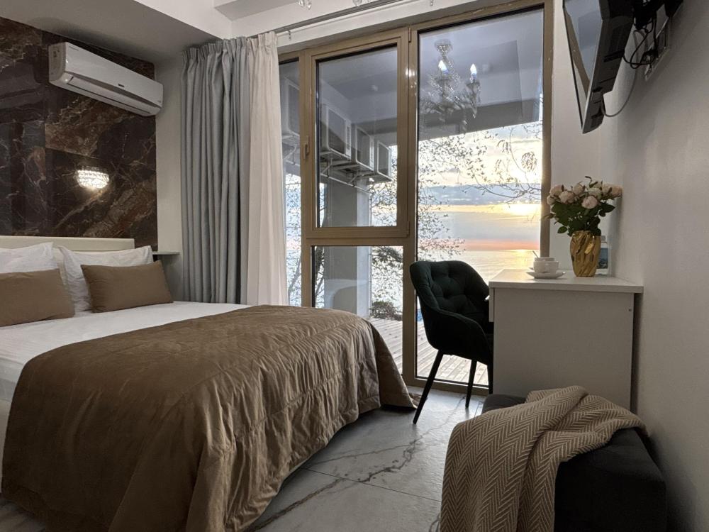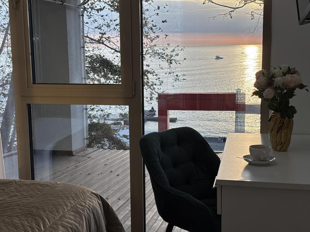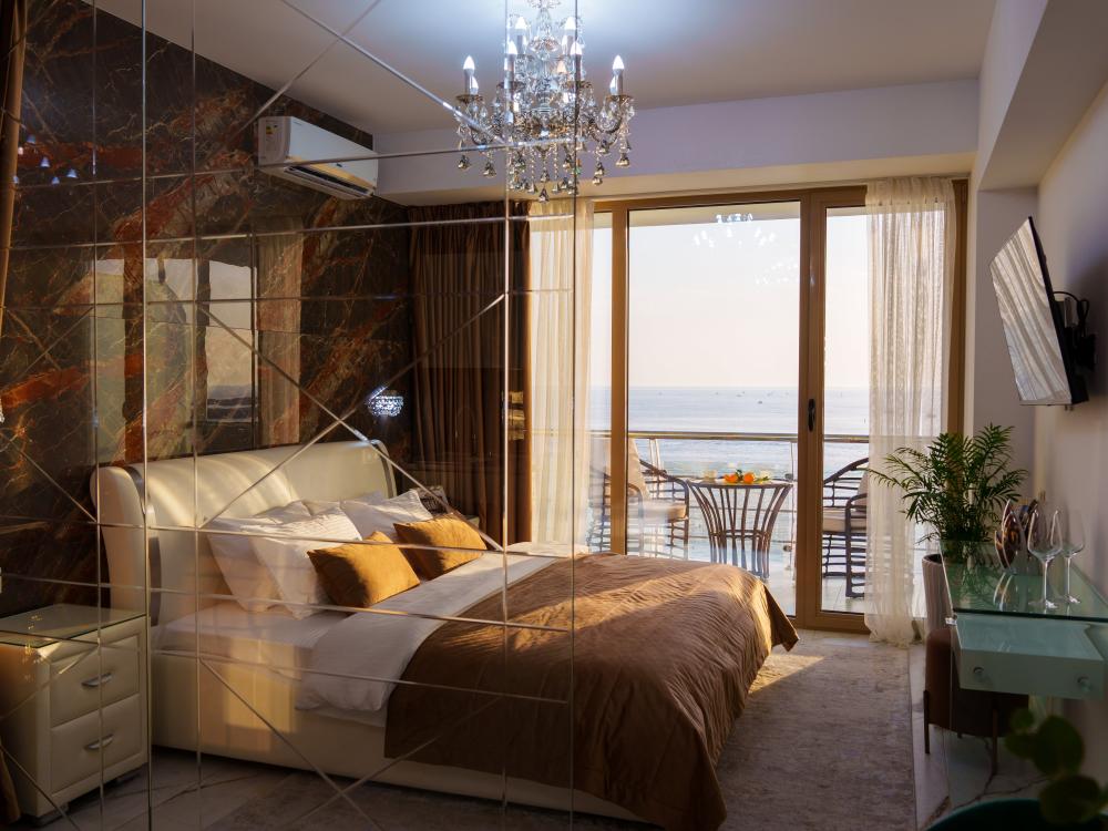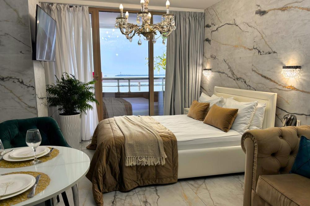 Апартаменты в новом апарт-отеле на ПЕРВОЙ БЕРЕГОВОЙ ЛИНИИ, до пляжа 2 минуты пешком. Красивый вид на море прямо из кровати, а также просторный балкон, с прекрасным видом на море. Высококлассный интерьер, идеальная чистота и высокий уровень комфорта - все для вашего лучшего отдыха в Сочи. В апартаментах есть все для комфортного проживания. Вас ждут двуспальная кровать в спальне и большой удобный раскладной диван в зоне гостиной. Рады семьям с детьми, по запросу предоставляется детская кроватка для малышей. Есть кухня, большой холодильник, микроволновая печь, вся необходимая посуда, для тех, кто любит есть то, что приготовлено своими руками. А также есть возможность заказать обслуживание в номер или посетить прекрасные рестораны и кафе, расположенные в паре минут от комплекса. Стиральная машинка для удобства проживания, гладильные принадлежности. Отличный телевизор, быстрый Wi-Fi позволят Вам и отдохнуть, и поработать при необходимости. Ванная комната оснащена душевой кабиной, снабжена всеми необходимыми косметическими средствами. На просторной террасе Вы можете выпить утренний кофе и насладиться шикарным видом на море. Возможно бесконтактное заселение.