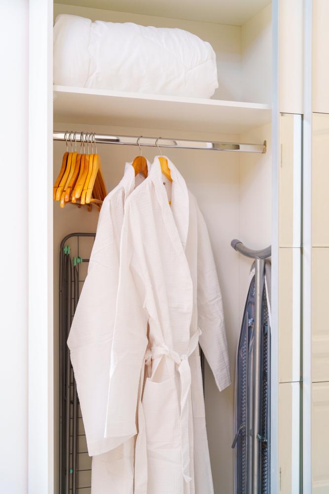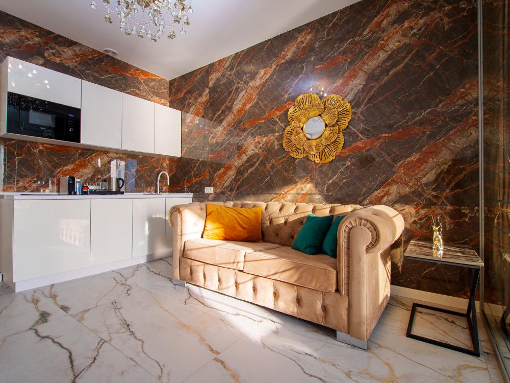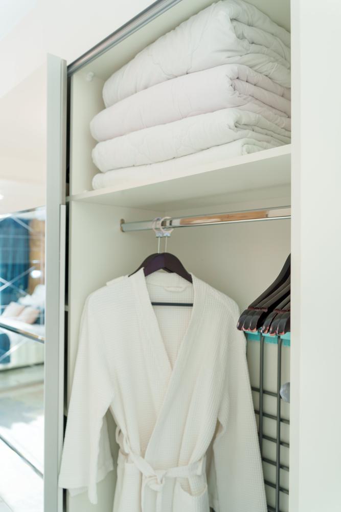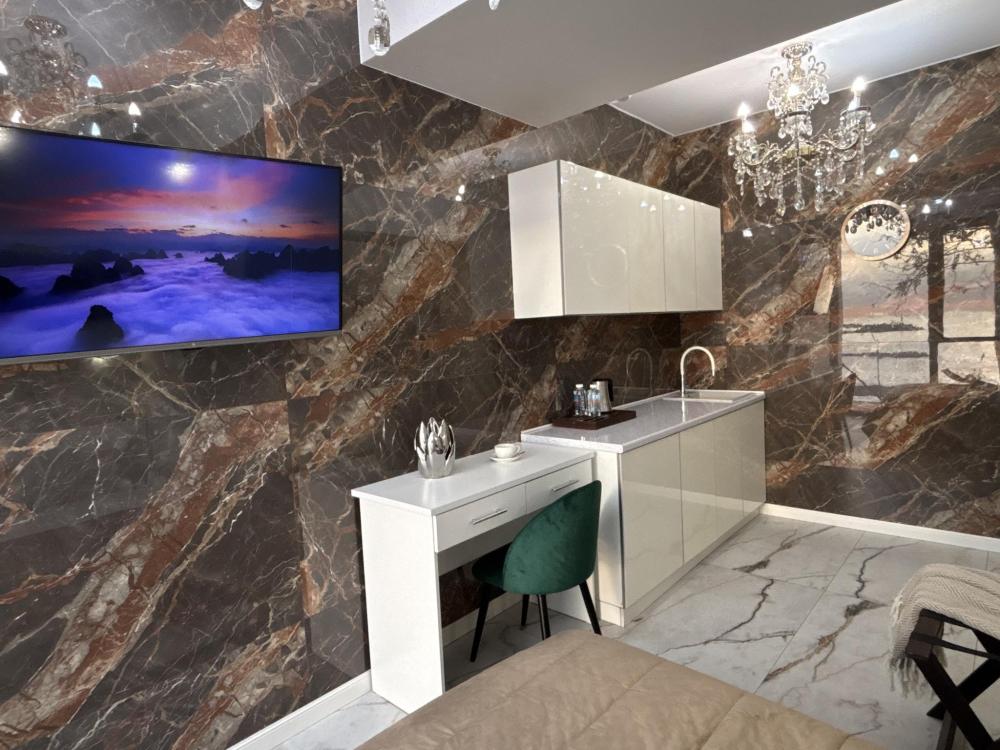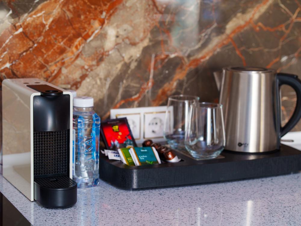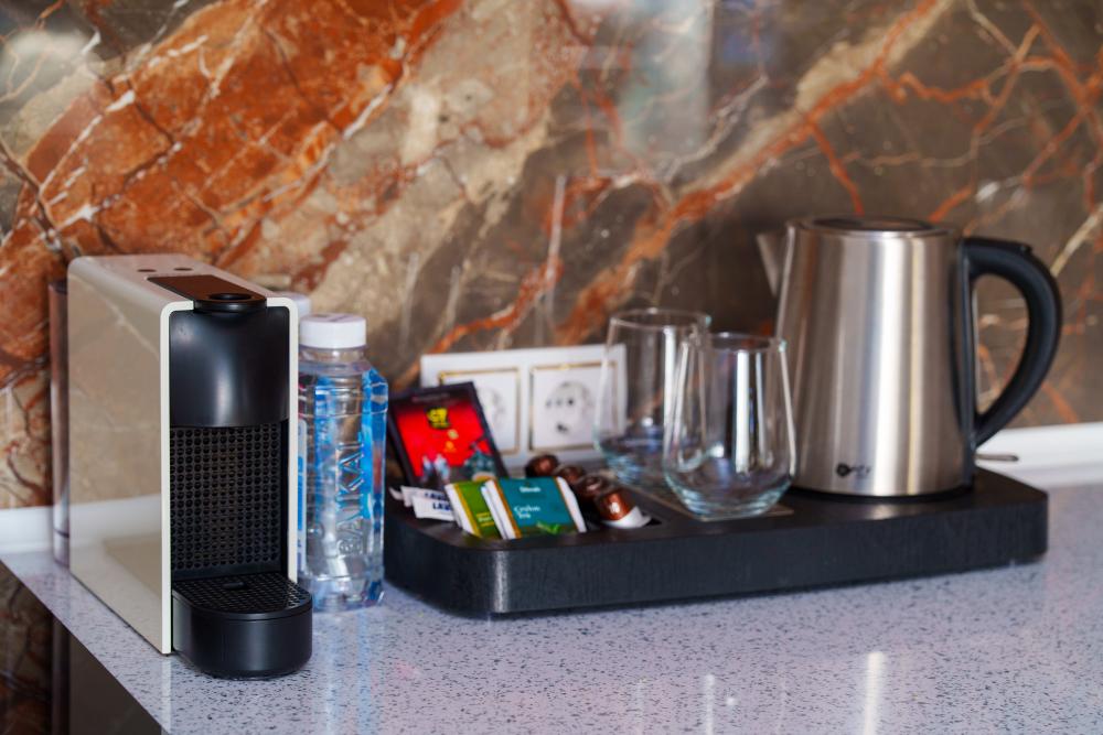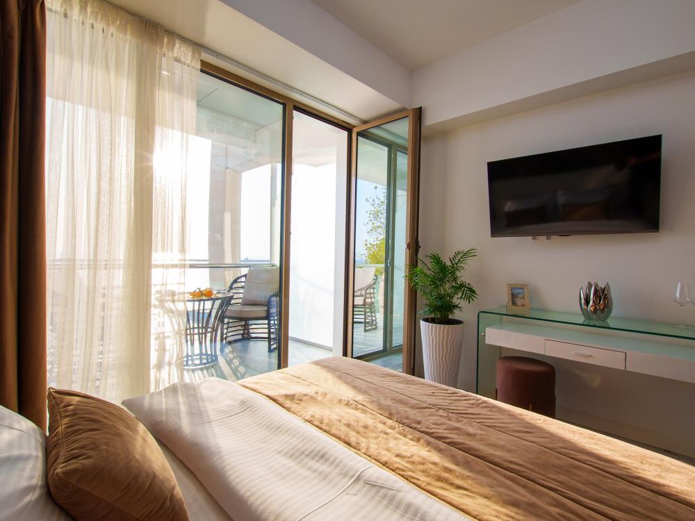 Просторный апартамент 38 кв.м. с изысканным дизайном с элементами арт-деко сочетает в себе лаконичные геометрические формы, благородные материалы и контрастные цветовые решения, создающие атмосферу стильной современности с характерным акцентом на комфортный отдых гостей. Яркие акценты, стекло и хрусталь наполняют интерьер дневном светом, солнечными бликами и усиливают впечатление от морской акварели волн за окном. Интерьер наполнен мягким сиянием и располагает к неспешному отдыху. Эргономичная и продуманная планировка номера позволит любоваться морским горизонтом прямо из кровати или отлично провести вечер в удобной зоне отдыха на балконе с видом на незабываемый закат. На кухне, полностью оснащенной современной бытовой техникой, вы сможете с удовольствием готовить любимые блюда и наслаждаться ими в уютной обеденной зоне. Быстрый Wi-Fi и цифровое телевидение формируют идеальные условия для отдыха или работы, позволяя вам чувствовать себя комфортно и расслабленно в любое время. В апартаментах вас ждёт атмосфера заботы. Мягкие махровые халаты и премиальный текстиль создают ощущение роскоши и комфорта. В ванной комнате вы найдёте всю необходимую косметику, чтобы почувствовать себя как дома. Каждая деталь продумана для вашего идеального отдыха.