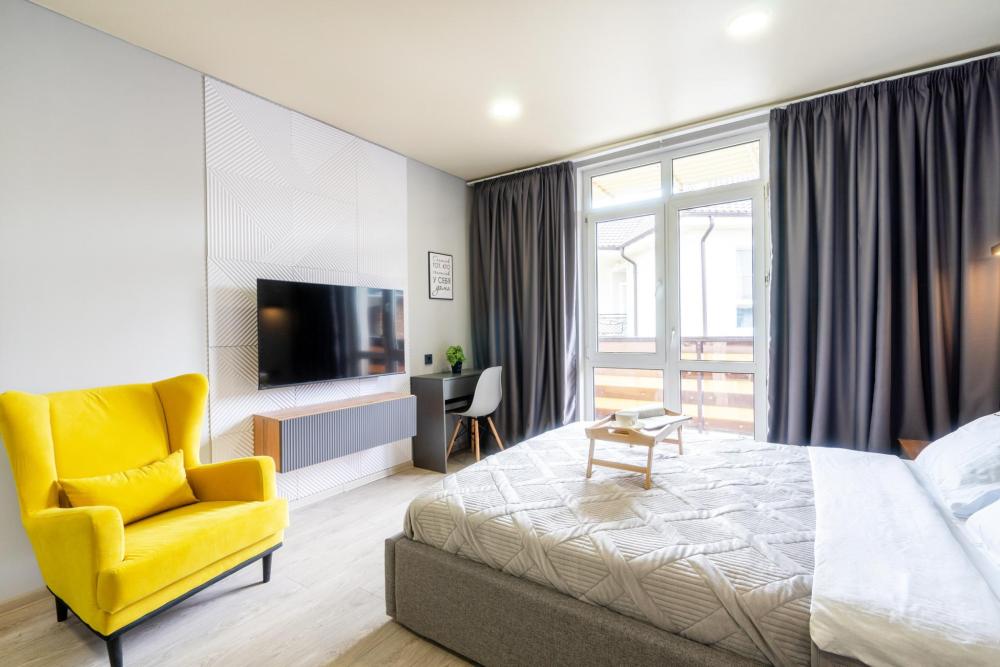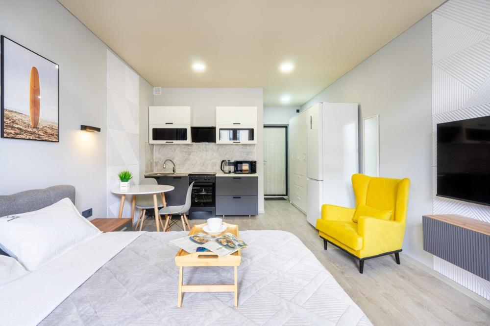 Уютные апартаменты от федеральной сети апартаментов «Orange Apart». В 2-3х километрах находится Абхазия. В пешей доступности магазины: "Магнит", "К&Б", овощные/фруктовые лавки, столовые и пекарни, остановка общественного транспорта. Во дворе имеется зона отдыха и бассейн (работает только в летнее время, 350₽ с человека за весь день) ✅ У нас простые правила заселения и проживания: » Заезд с 14:00, выезд до 11:00. Возможны ранний заезд и поздний выезд. » Бесконтактное заселение. В день заезда направим подробную инструкцию по заселению. » Обязателен депозит — 5000₽. Вносится до заселения, возвращается в день выезда после финальной уборки. » Полный пакет отчетных документов, договор, оплата безналичным способом (по запросу с НДС). ? Мы заботимся о наших гостях и сделали апартаменты максимально комфортными; » Двуспальная кровать с ортопедическим матрасом; » Кухонная зона со всем необходимым: варочная поверхность, духовка, чайник, микроволновка, посуда и кухонная утварь; » Тщательная уборка после каждого гостя, чистое постельное белье, полотенца и косметические средства для душа; » Доступ к высокоскоростному Wi-Fi. ❤️ Подарите себе незабываемый отдых всего одним нажатием на кнопку «Забронировать»! Всегда рады видеть Вас в гостях! Ваш «Orange Apart».