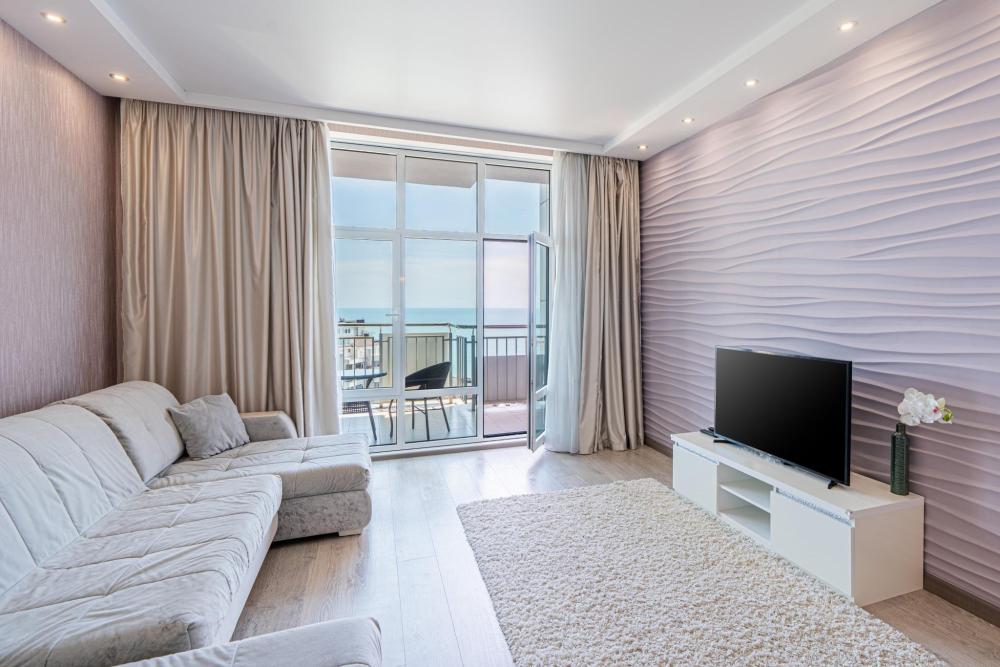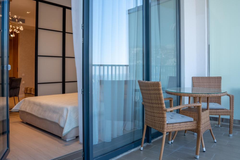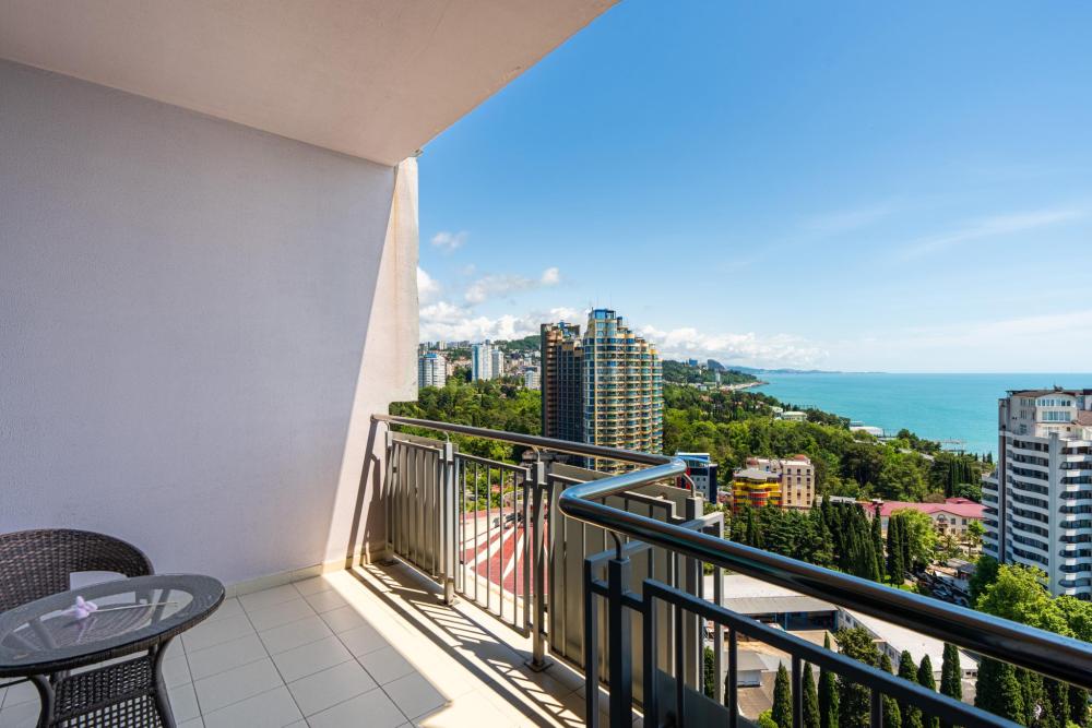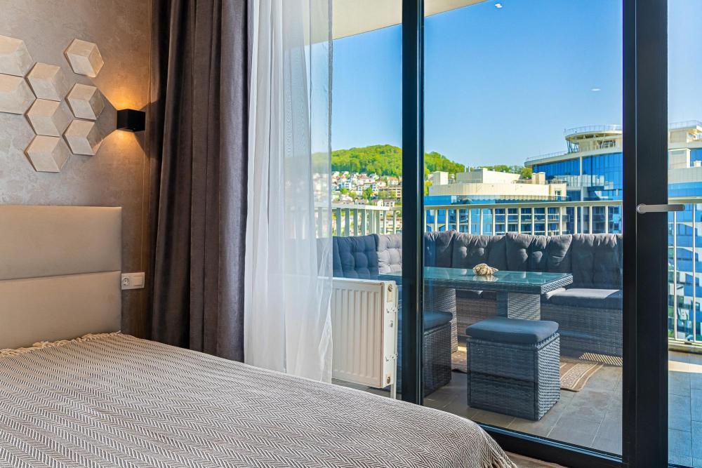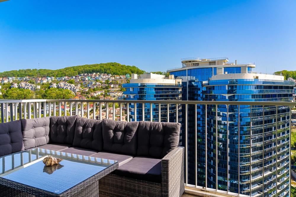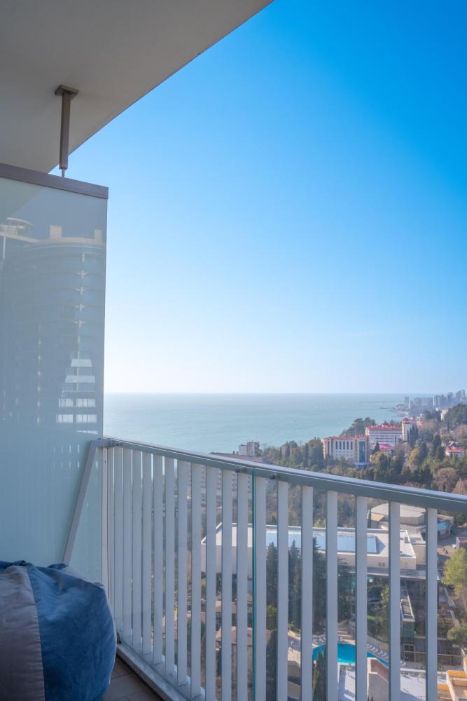 Апартаменты в ЖК «Актер Гэлакси» с видом на горы и город на первой береговой линии. Апартамент расположен на 14 этаже с большой террасой. Апартаменты могут разместить до 4-х гостей. Спальные места: двуспальная кровать, раскладной диван. ЖК «Актер Гэлакси» - это элитный комплекс с закрытой, охраняемой территорией. На территории два ресторана, кафе, минимаркет, салон красоты, барбершоп, спа-салон, бассейн открытый (сезонный, работает с мая по октябрь) с зонтиками, шезлонгами, детская площадка, спортивная площадка, сад с реликтовыми деревьями. Для жильцов комплекса действует благоустроенный пляж санатория Актер, на пляже работает ресторан. ⚠️ Дополнительно оплачивается клининг в размере 3 000 рублей.
