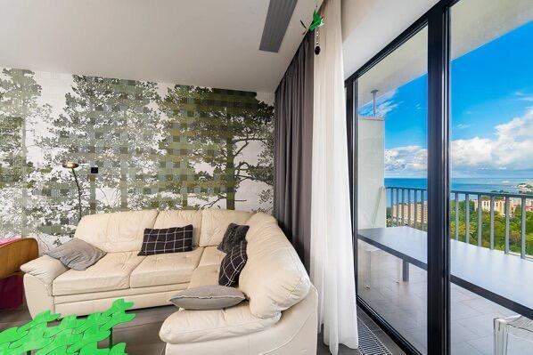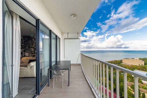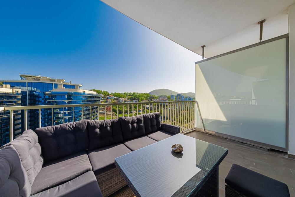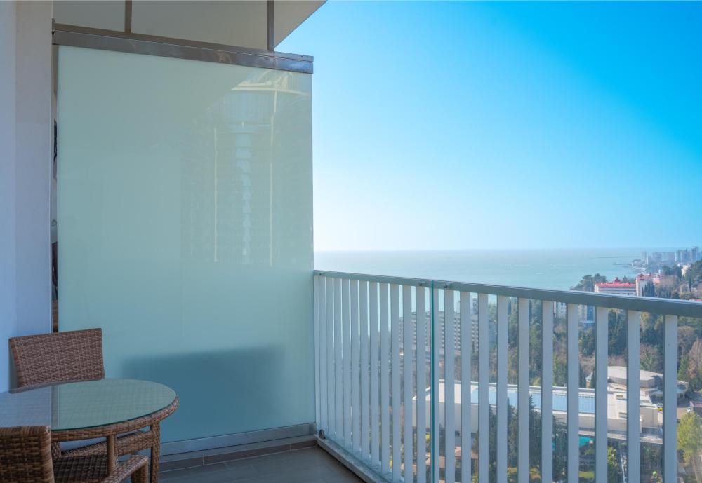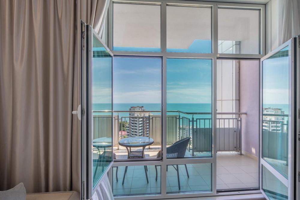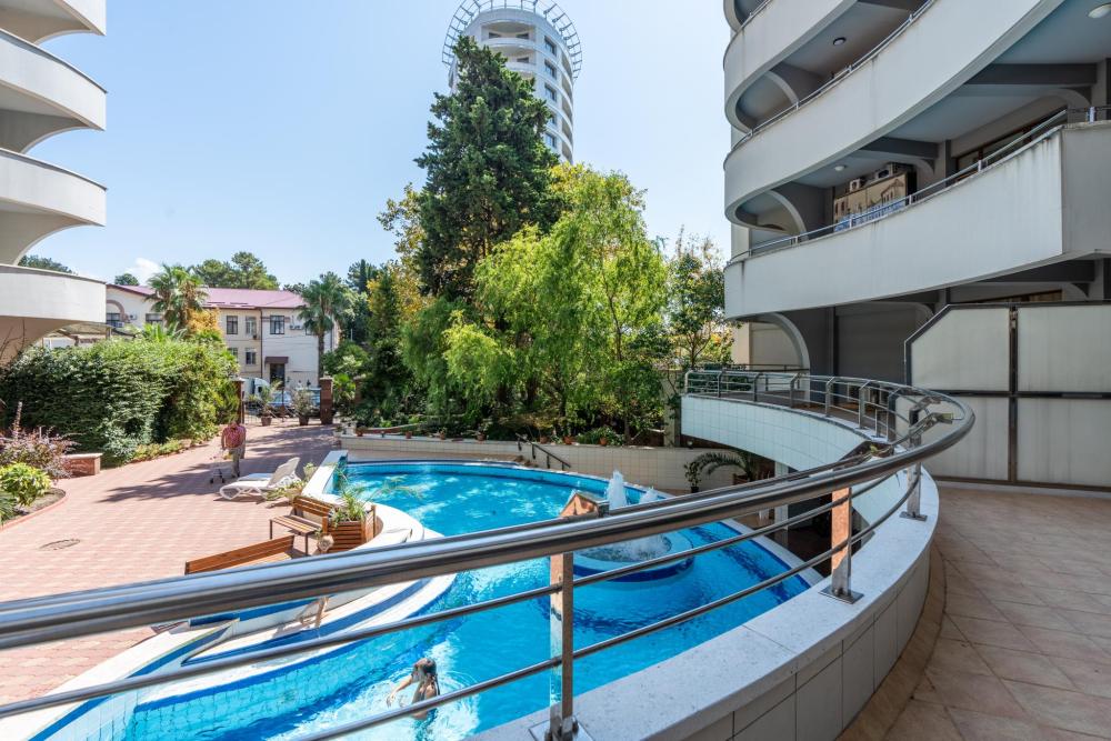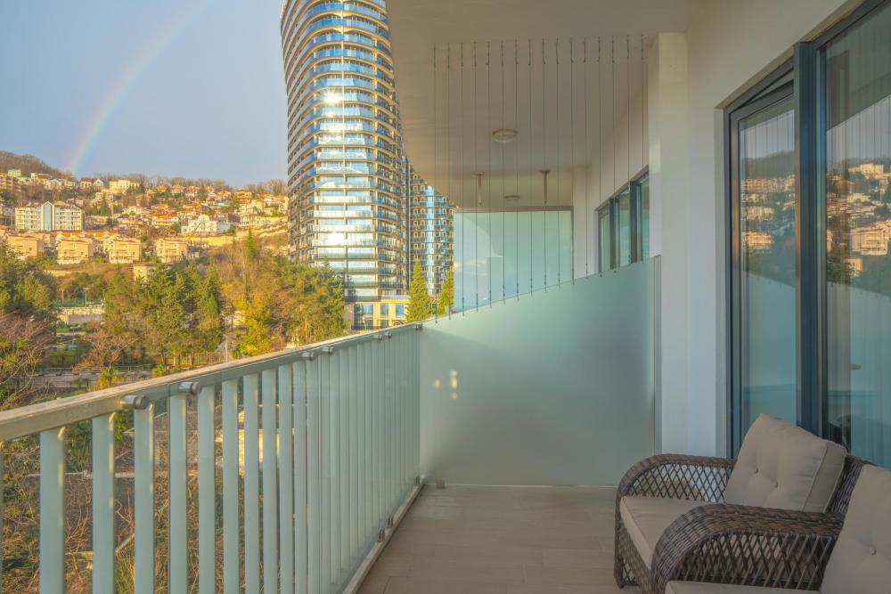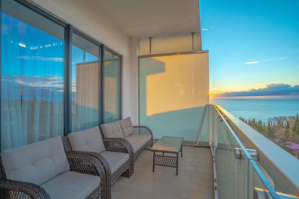 Апартаменты в ЖК «Актер Гэлакси» с видом на горы и город на первой береговой линии. Апартамент расположен на 14 этаже с большой террасой. Апартаменты могут разместить до 4-х гостей. Спальные места: двуспальная кровать, раскладной диван. ЖК «Актер Гэлакси» - это элитный комплекс с закрытой, охраняемой территорией. На территории два ресторана, кафе, минимаркет, салон красоты, барбершоп, спа-салон, бассейн открытый (сезонный, работает с мая по октябрь) с зонтиками, шезлонгами, детская площадка, спортивная площадка, сад с реликтовыми деревьями. Для жильцов комплекса действует благоустроенный пляж санатория Актер, на пляже работает ресторан. ⚠️ Дополнительно оплачивается клининг в размере 3 000 рублей.