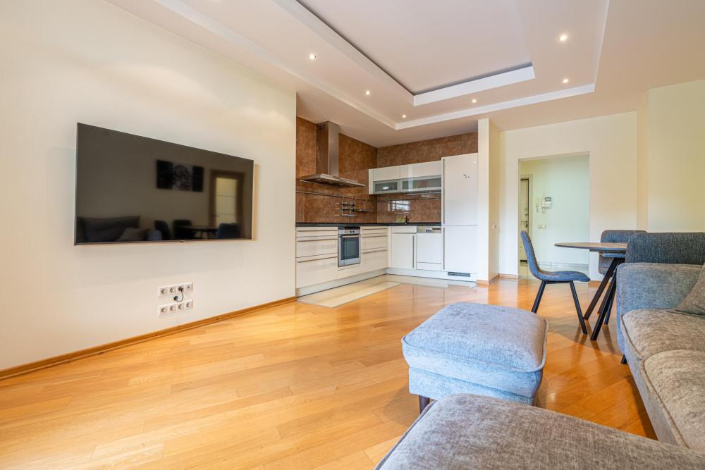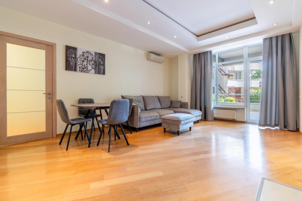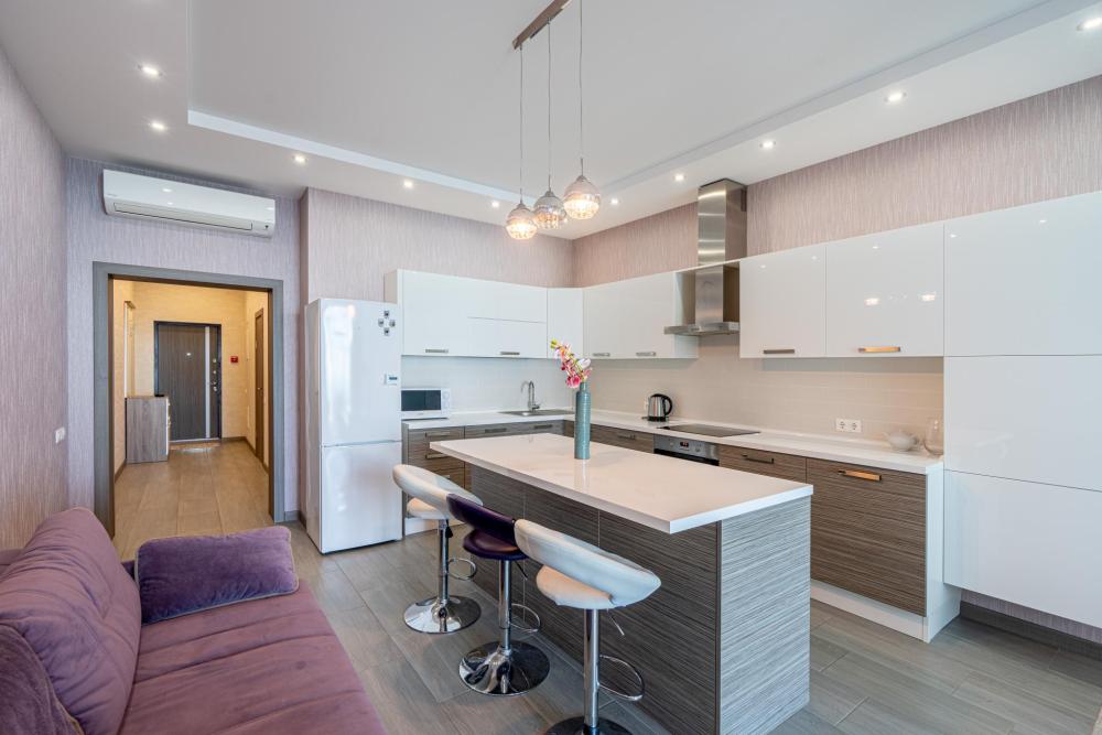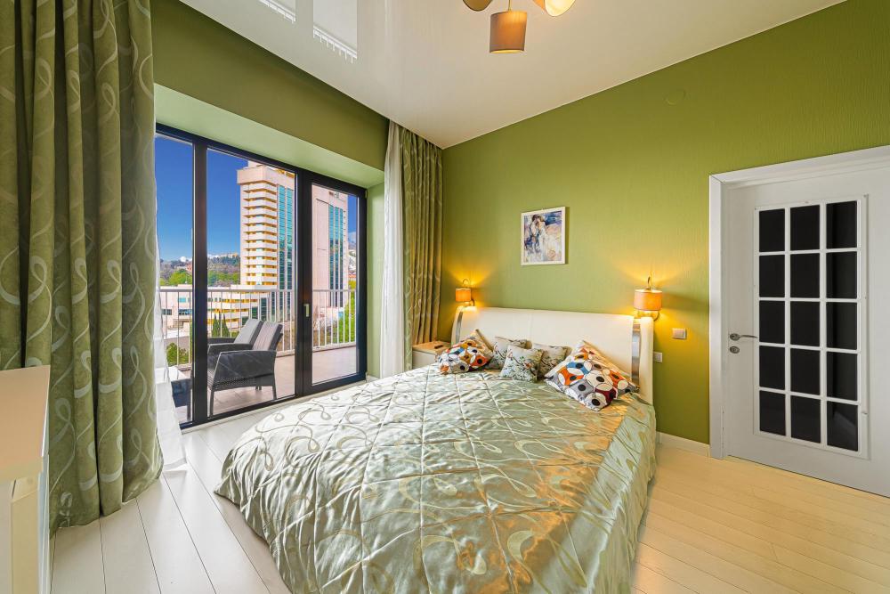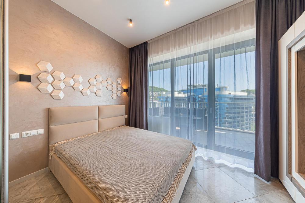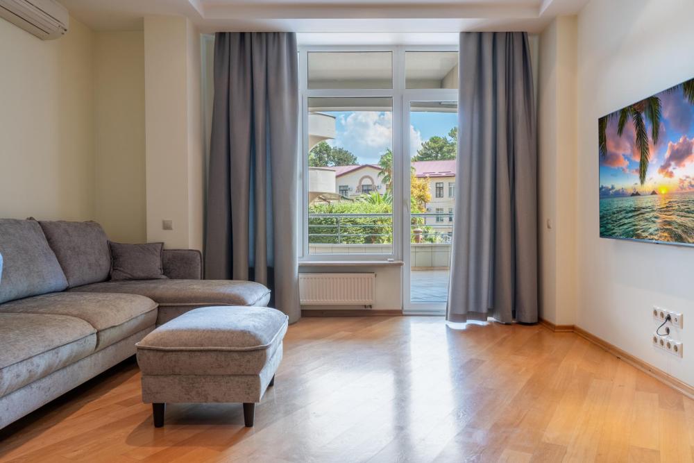 Эти стильные апартаменты с площадью 75 м² расположены на 8-м этаже и идеально подходят для тех, кто ищет комфорт и современный стиль. Просторные и элегантные, они предлагают: • Спальню с большим двуспальным местом и современным интерьером для уютного сна и отдыха. • Гостиную, наполненную естественным светом, с современным дизайном и уютной атмосферой. • Современные удобства: полностью оборудованная кухня с бытовой техникой, стильная мебель и рабочая зона. • Балкон с видом на парк Фрунзе и море, что создаёт уникальную атмосферу для отдыха на свежем воздухе. • Ванная комната с высококачественной сантехникой и продуманным дизайном для максимального комфорта. Эта квартира предлагает не только уют и стиль, но и доступ к полноценной инфраструктуре ЖК «Светлана Парк», включая фитнес-центр, рестораны, магазины и SPA-процедуры, что делает её идеальным местом для отдыха и деловых поездок. Преимущества ЖК Светлана Парк ?️ Пешая доступность к морю: Жилой комплекс «Светлана Парк» находится всего в 300 метрах от моря, что позволяет легко наслаждаться прогулками вдоль побережья. ?♀️ Центральная набережная и прогулки у моря: В пешей доступности — знаменитая центральная набережная Сочи, идеальная для прогулок с видом на море. ?️ Кафе и рестораны: Рядом с комплексом находятся разнообразные кафе и рестораны с различными кухнями, что дает возможность насладиться местной и международной гастрономией. ? Парк Фрунзе: Неподалеку расположен парк Фрунзе, который идеально подходит для прогулок на свежем воздухе и активного отдыха. ? Инфраструктура и магазины: В шаговой доступности — супермаркет и разнообразные магазины, а также медицинские учреждения и услуги, что обеспечивает максимальное удобство для жителей. ? Морской порт и яхтенные прогулки: От комплекса можно пешком дойти до морского порта, где начинаются прогулки на яхтах и другие водные развлечения. ? Идеальное место для отдыха и деловых поездок: «Светлана Парк» — это отличное место для отдыха или деловых поездок. Удобная локация с развитой инфраструктурой делает его привлекательным для туристов и бизнесменов.