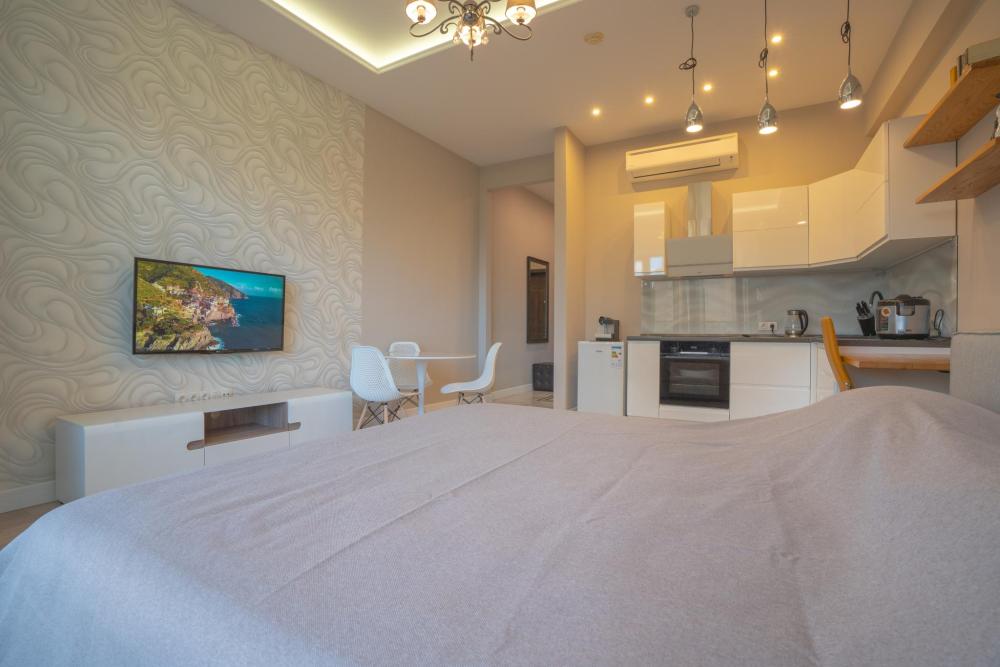 Эта студия с террасой и панорамным видом на море и город — идеальное место для комфортного отдыха. В студии продуманы все элементы для вашего удобства: • Спальная зона с диваном и кресло-кроватью для вашего комфорта. • Современная кухня-гостиная, полностью оборудованная для самостоятельного приготовления пищи. • Совмещенная ванная комната с душевой кабиной для удобства. • Просторная терраса площадью 15 м², идеально подходящая для отдыха, солнечных ванн или вечерних посиделок. В студии есть все необходимое для комфортного проживания: кондиционер, стиральная машина, телевизор и высокоскоростной интернет. Эта студия идеально подходит для краткосрочного и долгосрочного отдыха. Она расположена в престижном районе Сочи и обеспечит вам не только комфорт, но и незабываемые впечатления. Преимущества ЖК «Актер Гэлакси» ?️ Доступ к двум пляжам: Рядом с ЖК находятся пляжи «Заря» и «Санаторий Актер», что гарантирует удобство для отдыха у моря. ?️♂️ Открытая площадка Воркаут: Отличная площадка для активного отдыха и занятий спортом. ? Детская площадка: Место для безопасных и веселых игр детей. ? Детская комната: Внутри комплекса, где ваши дети могут весело провести время в дождливую погоду. ? Арт-студия для детей и взрослых: Место для творчества и занятий по душе для всей семьи. ? Стоматология: Находится прямо в жилом комплексе, на -4м этаже, для вашего удобства. ? Придомовая парковка: Удобные парковочные места для владельцев автомобилей. ?♀️ Терренкур для прогулок: Идеальные условия для пеших прогулок и утренних пробежек вдоль побережья. ? Два минимаркета: Минимаркеты со свежими продуктами, горячим хлебом и выпечкой из собственной пекарни. ?♀️ СПА-центр: Расслабляющие процедуры и зоны для восстановления. ?♀️ Салон красоты и барбершоп: Позаботятся о вашем внешнем виде и помогут быстро подготовиться к любому мероприятию. ? Цветочный магазин: Свежие цветы для любителей растений и подарков. ☕ Кафе «Гэлакси»: Отличный кофе, завтраки, десерты и доставка в апартаменты. ?️ Ресторан «Винчетто»: Средиземноморская кухня с видом на море и живой музыкой по вечерам (возможность доставки в апартаменты). ?♀️ Открытый бассейн с детской зоной: Работает в летнее время, с комфортными шезлонгами, зонтиками, душем и раздевалками. За безопасностью гостей следит спасатель. ?♀️ СПА-центр «Лазурная»: В зимнее время предлагает 50-метровый бассейн, бани и процедуры (расположен рядом с ЖК). ?️ Инфраструктура и охрана: Закрытая территория с круглосуточной охраной для вашей безопасности. ? Транспортная доступность: В 10 минутах на такси — центральный променад, кафе, рестораны и санатории. ? ЖД станция Мацеста: В 10 минутах ходьбы — удобное сообщение с горнолыжными курортами и Олимпийским парком.