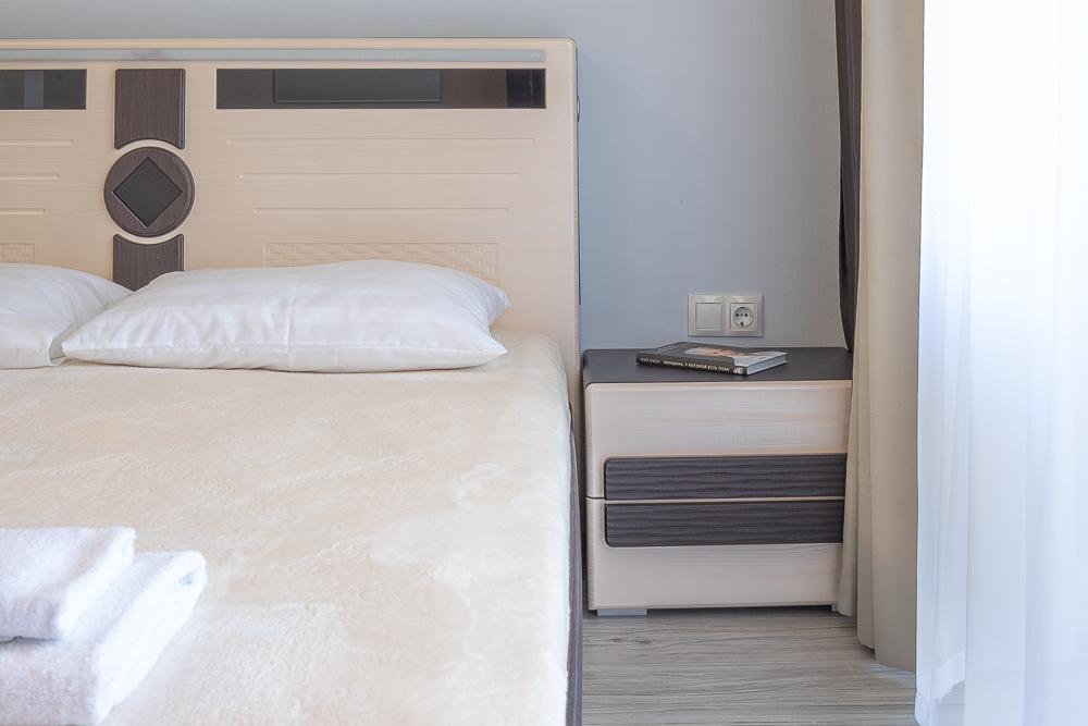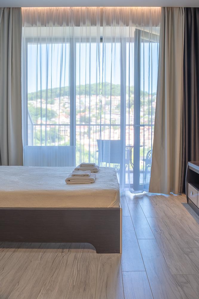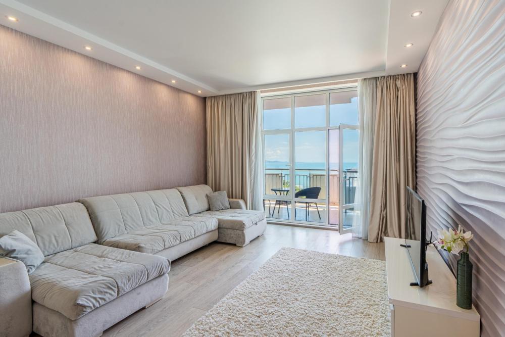 Апартаменты в ЖК «Актер Гэлакси» с видом на горы и город на первой береговой линии. Апартамент расположен на 14 этаже с большой террасой. Апартаменты могут разместить до 4-х гостей. Спальные места: двуспальная кровать, раскладной диван. ЖК «Актер Гэлакси» - это элитный комплекс с закрытой, охраняемой территорией. На территории два ресторана, кафе, минимаркет, салон красоты, барбершоп, спа-салон, бассейн открытый (сезонный, работает с мая по октябрь) с зонтиками, шезлонгами, детская площадка, спортивная площадка, сад с реликтовыми деревьями. Для жильцов комплекса действует благоустроенный пляж санатория Актер, на пляже работает ресторан.⚠️ Дополнительно: Оплачивается клининг в размере 3 000 рублей.