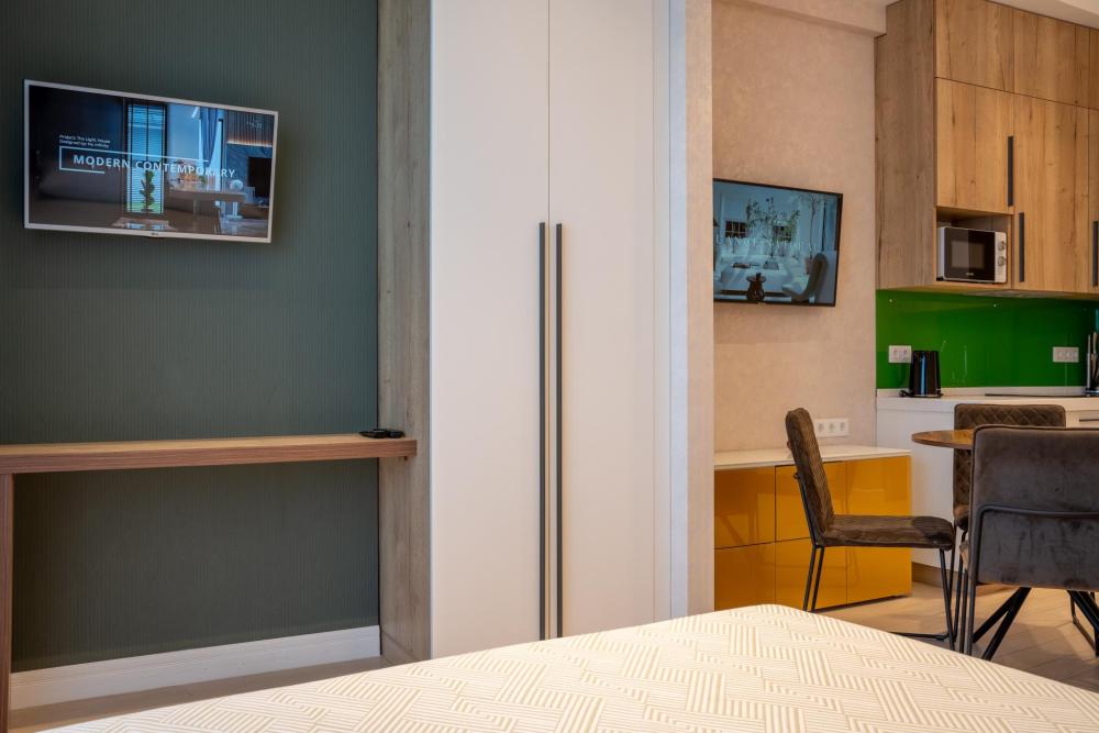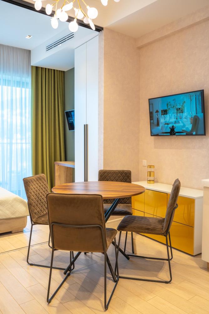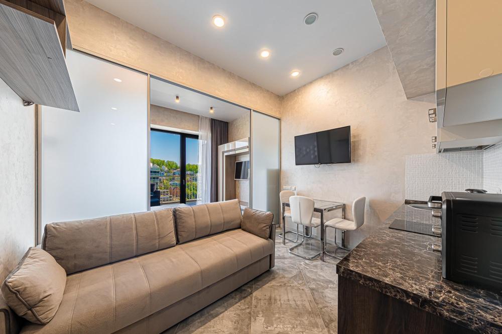 Эта стильная студия с захватывающим видом на море идеально подойдет для комфортного отдыха. Каждый элемент в интерьере продуман для вашего удобства: • Теплые древесные и зеленые цветовые решения создают атмосферу гармонии с природой. • Выделенное спальное место обеспечит вам приватность и комфорт для полноценного отдыха. • Удобная кухонная зона с необходимым оборудованием для приготовления пищи.. • Совмещенная ванная комната с душевой кабиной — современное и функциональное решение для вашего удобства. • Продуманные места для хранения помогут поддерживать порядок в комнате. • Просторный балкон с видом на море — идеальное место для утреннего кофе или вечернего релакса. Эта студия — идеальное место для тех, кто мечтает о жизни у моря, где каждый новый день приносит радость и вдохновение. Преимущества ЖК «Актер Гэлакси» ?️ Доступ к двум пляжам: Рядом с ЖК находятся пляжи «Заря» и «Санаторий Актер», что гарантирует удобство для отдыха у моря. ?️♂️ Открытая площадка Воркаут: Отличная площадка для активного отдыха и занятий спортом. ? Детская площадка: Место для безопасных и веселых игр детей. ? Детская комната: Внутри комплекса, где ваши дети могут весело провести время в дождливую погоду. ? Арт-студия для детей и взрослых: Место для творчества и занятий по душе для всей семьи. ? Стоматология: Находится прямо в жилом комплексе, на -4м этаже, для вашего удобства. ? Придомовая парковка: Удобные парковочные места для владельцев автомобилей. ?♀️ Терренкур для прогулок: Идеальные условия для пеших прогулок и утренних пробежек вдоль побережья. ? Два минимаркета: Минимаркеты со свежими продуктами, горячим хлебом и выпечкой из собственной пекарни. ?♀️ СПА-центр: Расслабляющие процедуры и зоны для восстановления. ?♀️ Салон красоты и барбершоп: Позаботятся о вашем внешнем виде и помогут быстро подготовиться к любому мероприятию. ? Цветочный магазин: Свежие цветы для любителей растений и подарков. ☕ Кафе «Гэлакси»: Отличный кофе, завтраки, десерты и доставка в апартаменты. ?️ Ресторан «Винчетто»: Средиземноморская кухня с видом на море и живой музыкой по вечерам (возможность доставки в апартаменты). ?♀️ Открытый бассейн с детской зоной: Работает в летнее время, с комфортными шезлонгами, зонтиками, душем и раздевалками. За безопасностью гостей следит спасатель. ?♀️ СПА-центр «Лазурная»: В зимнее время предлагает 50-метровый бассейн, бани и процедуры (расположен рядом с ЖК). ?️ Инфраструктура и охрана: Закрытая территория с круглосуточной охраной для вашей безопасности. ? Транспортная доступность: В 10 минутах на такси — центральный променад, кафе, рестораны и санатории. ? ЖД станция Мацеста: В 10 минутах ходьбы — удобное сообщение с горнолыжными курортами и Олимпийским парком.