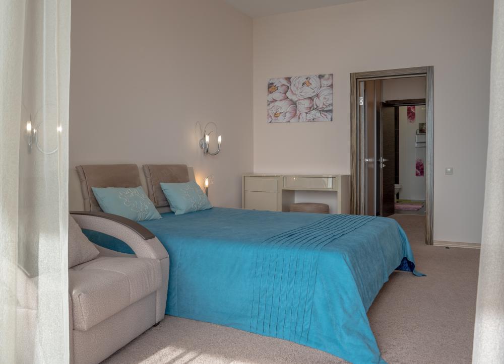 Квартира в ЖК «Актер Гэлакси» с двумя спальнями, двумя санузлами, просторной кухней-гостиной, террасой и гардеробной. Из квартиры открывается прекрасный вид на море, закатная сторона. В квартире есть все необходимое для проживания. На кухне есть посуда, приборы, чайник, плита, духовой шкаф, посудомоечная машина, холодильник. В спальнях: постельное белье 6 комплектов, полотенца на 6 человек, в гардеробной: пылесос, гладильная доска, утюг, приборы для уборки. ЖК «Актер Гэлакси» - это элитный комплекс с закрытой, охраняемой территорией. На территории два ресторана, кафе, минимаркет, салон красоты, барбершоп, спа-салон, бассейн открытый (сезонный, работает с мая по октябрь) с зонтиками, шезлонгами, детская площадка, спортивная площадка, сад с реликтовыми деревьями. Для жильцов комплекса действует благоустроенный пляж санатория Актер, на пляже работает ресторан.