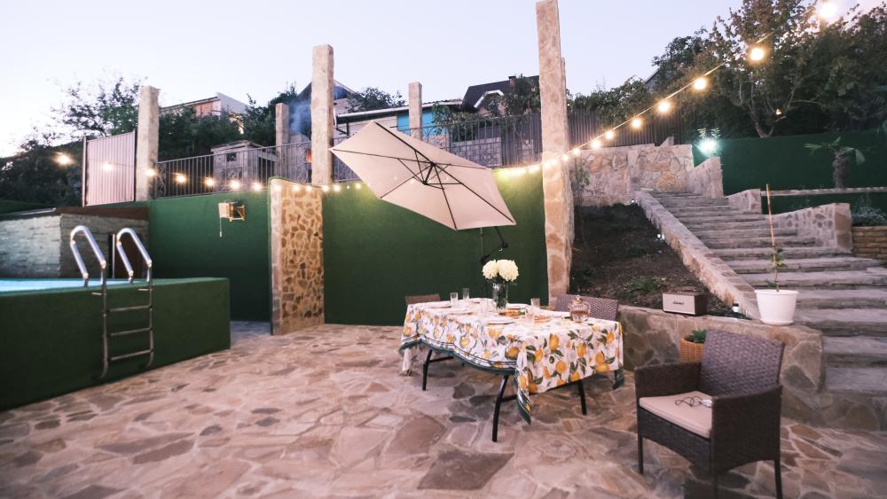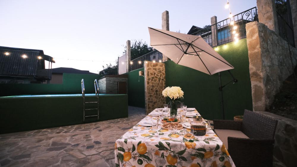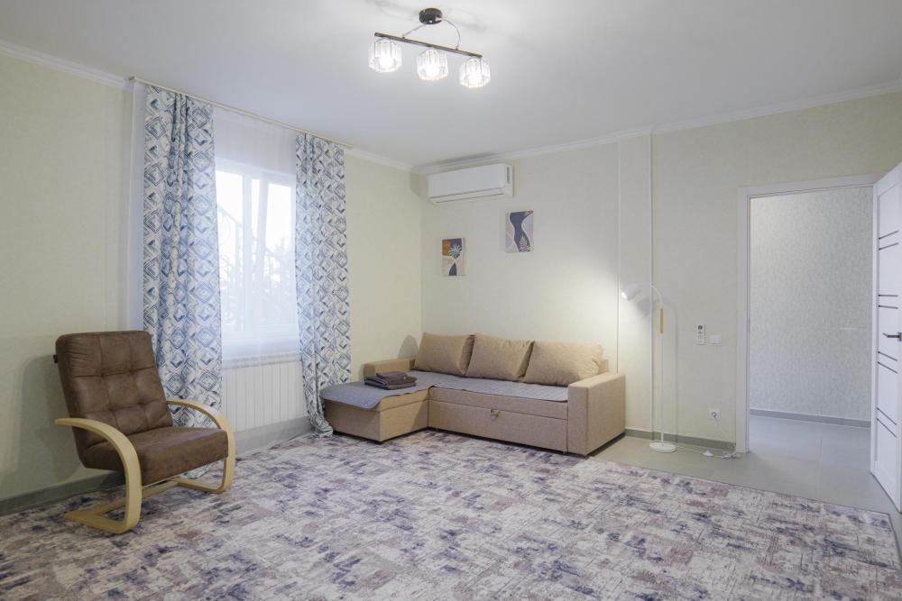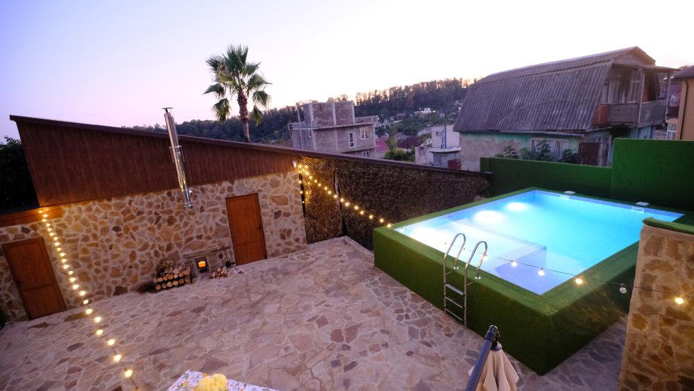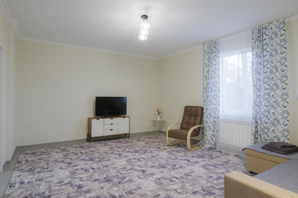 - 1 диван-кровать - 1 двуспальная кровать - 2 односпальных кровати - Если путешествуете с ребенком, мы предоставляем детскую кроватку бесплатно. - Современная кухня: оснащена холодильником, плитой, электрочайником, посудой и всеми необходимыми принадлежностями для приготовления пищи. - Телевизор - Кондиционер - Стиральная машина - Фен, утюг - Ванна с душем - Постельное белье, полотенца - Средства личной гигиены Для настоящих ценителей активного отдыха на свежем воздухе мы предлагаем воспользоваться преимуществами придомовой территории: - Зона барбекю, где можно насладиться ароматным шашлыком. - Для любителей водных процедур предусмотрен собственный открытый бассейн (входит в стоимость проживания). - Ароматная баня на дровах, которую мы можем дополнительно подготовить для вашего пребывания. - Бесплатные парковочные места, включая закрытую и открытую стоянки.